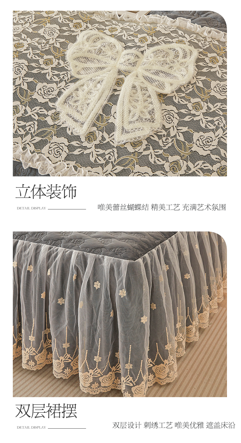 情恒家纺 2025新款A类婴儿绒全夹棉奶油风(蝴蝶结)床裙三件套 蝴蝶结寂静灰