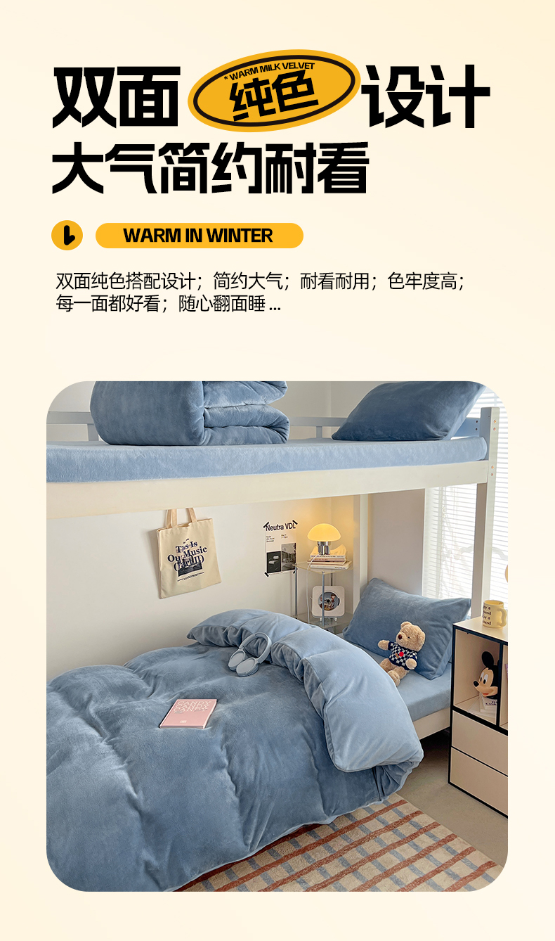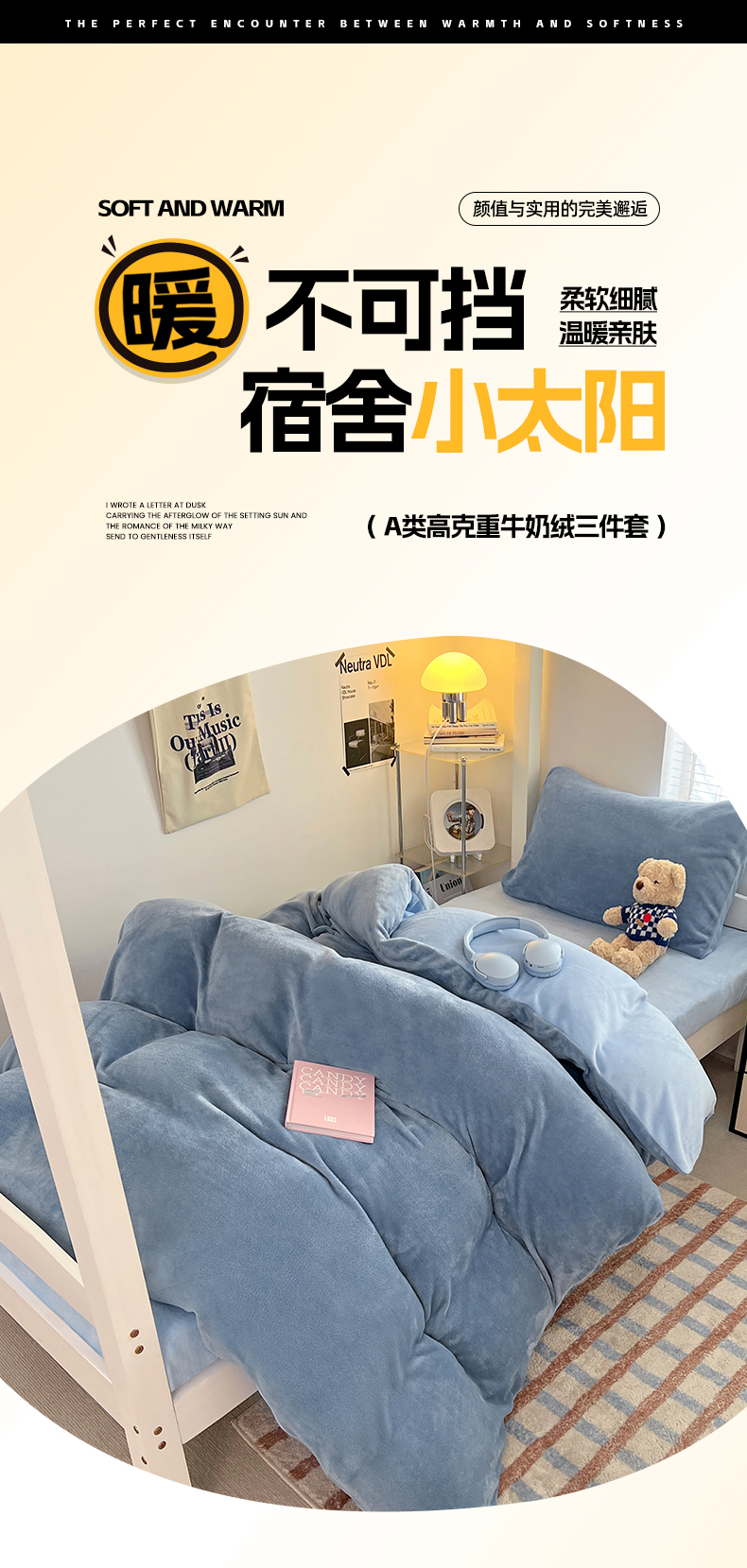 当前位置: 91家纺网 > 商品网购 > 床品套件 > 三件套 > 优卡迪家纺馆 2024新款牛奶绒纯色双拼宿舍床三件套(包含买家秀) 海蓝天蓝