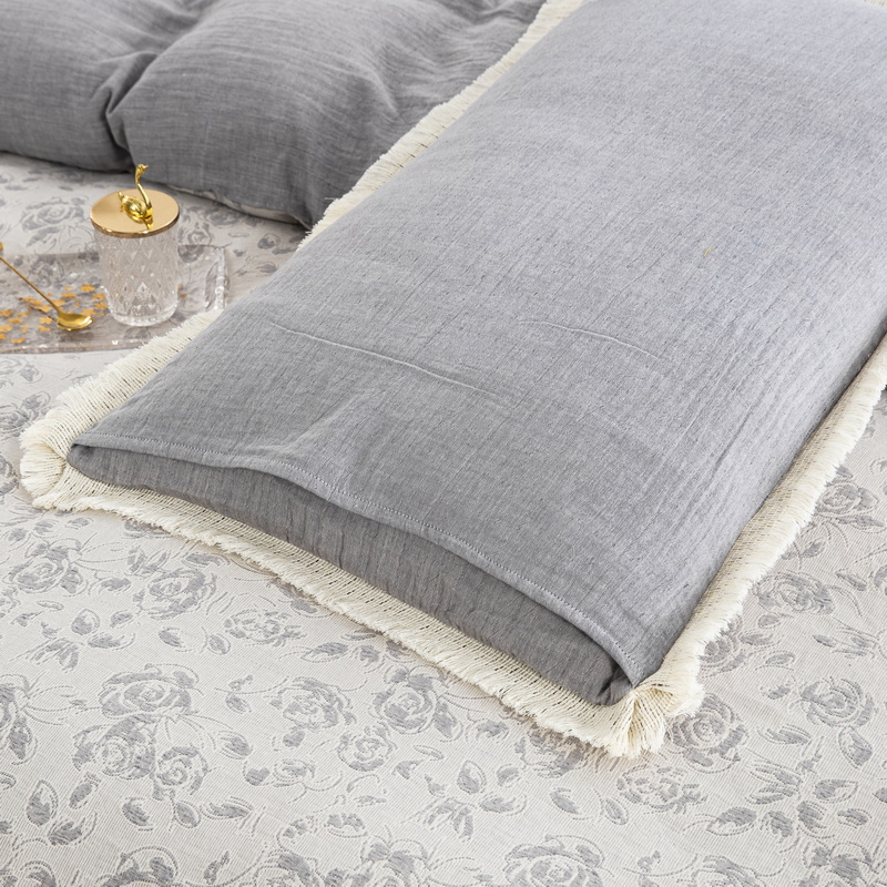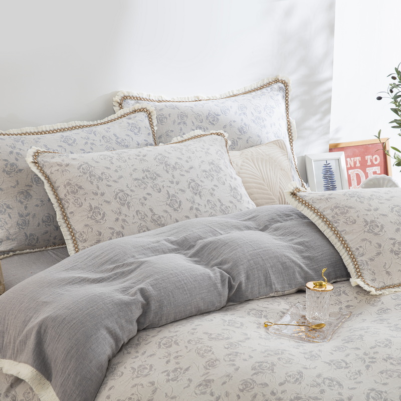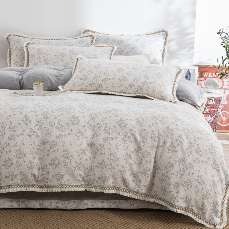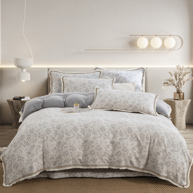 商品名称:鲁爱 2025新款全棉三层纱流苏款四件套 唯爱-灰