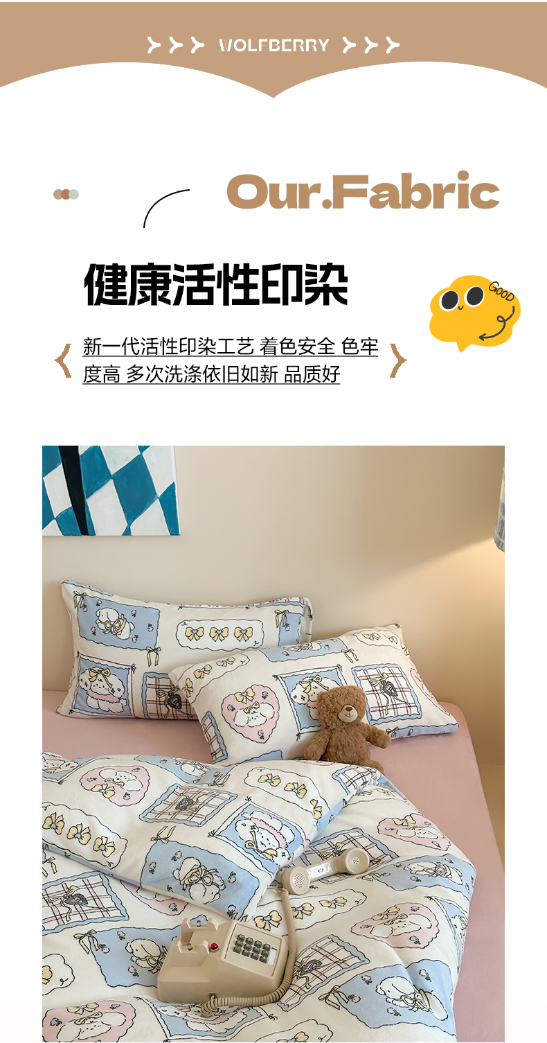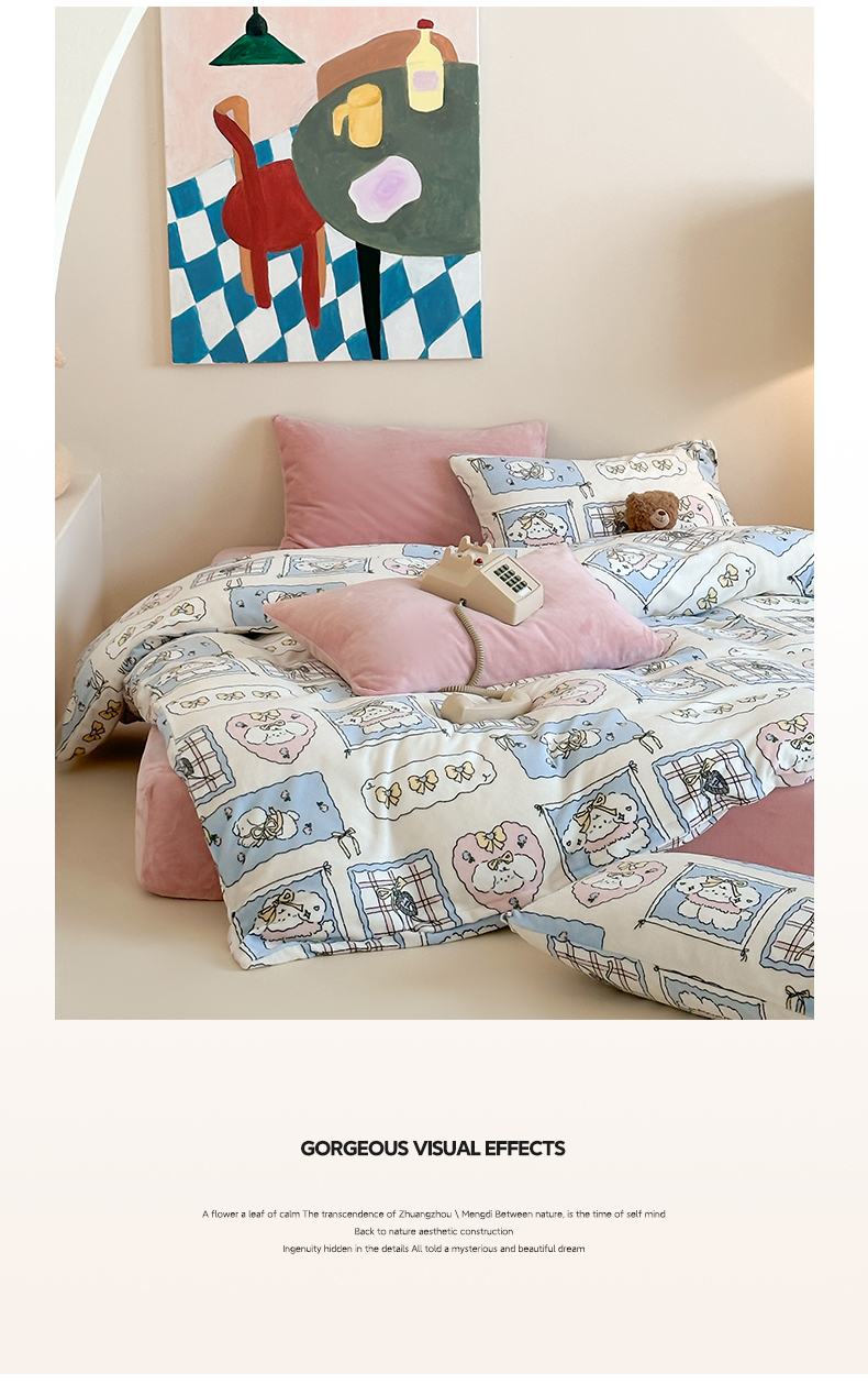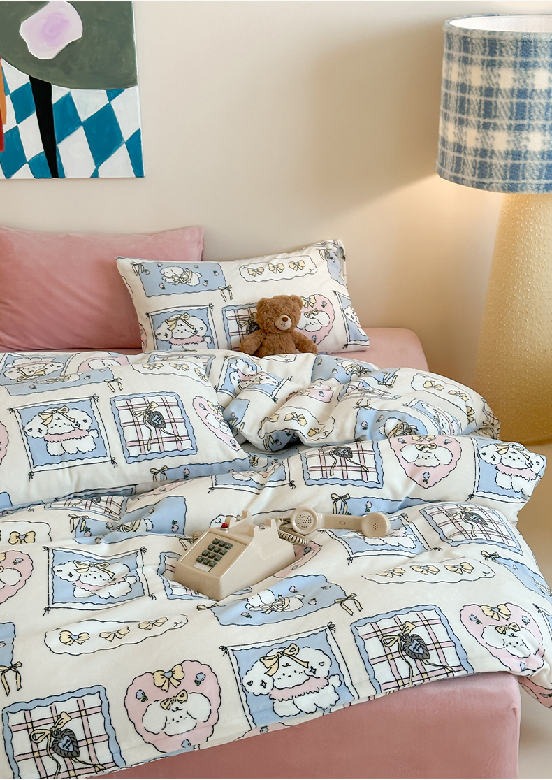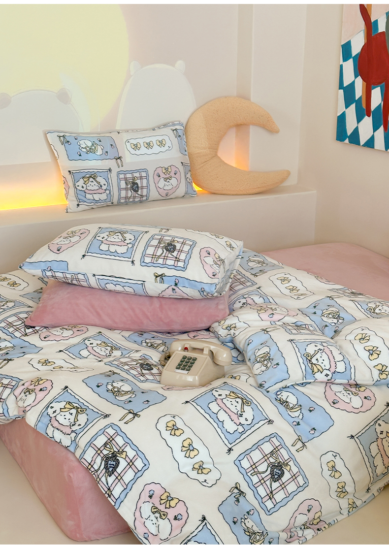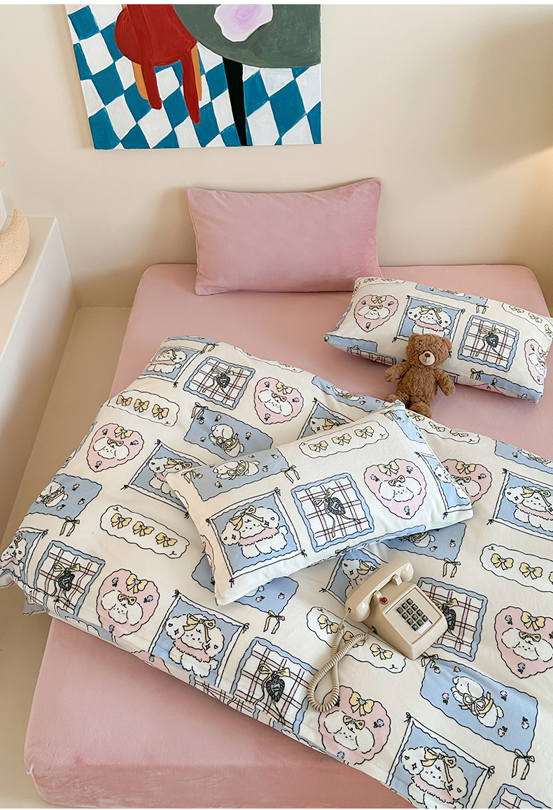 商品名称:三味舒屋 2025新款卡通印花牛奶绒单被套枕套床笠 甜心屋