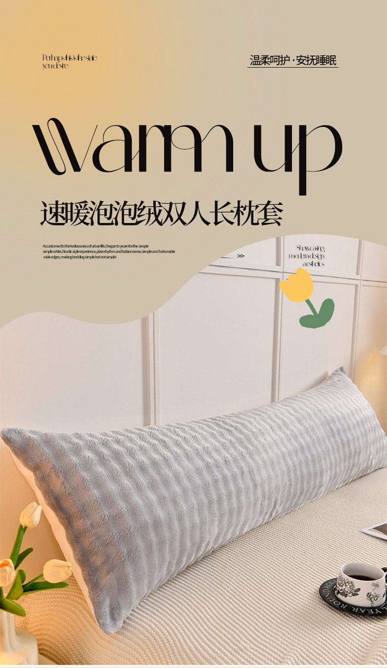 (总)艾兜坊 2024新款速暖兔毛泡泡绒双人长枕套,米白色,香芋紫,云朵灰,香槟色,抹茶绿,豆沙粉