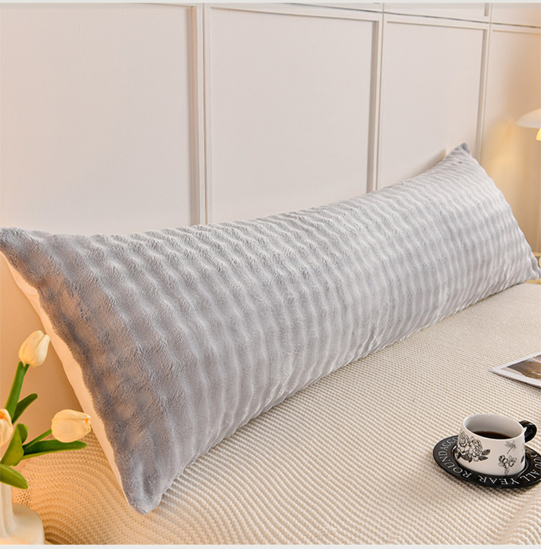艾兜坊 2024新款速暖兔毛泡泡绒双人长枕套 云朵灰