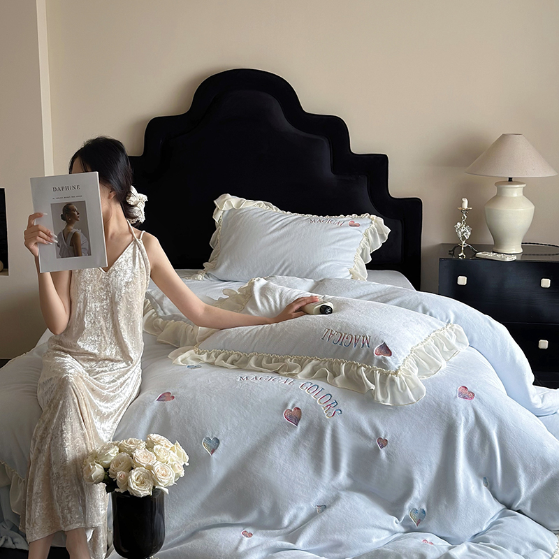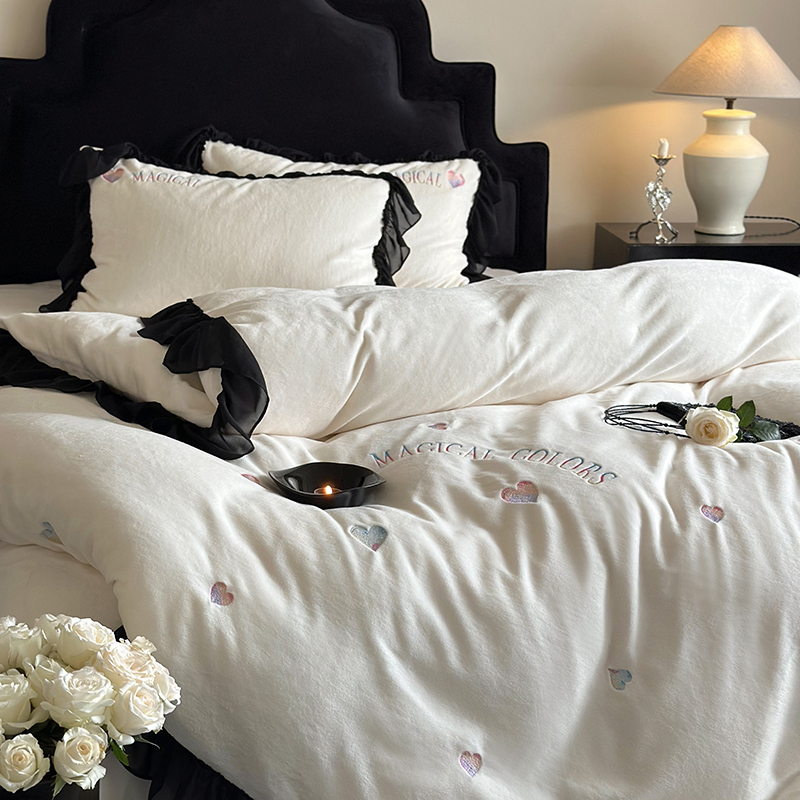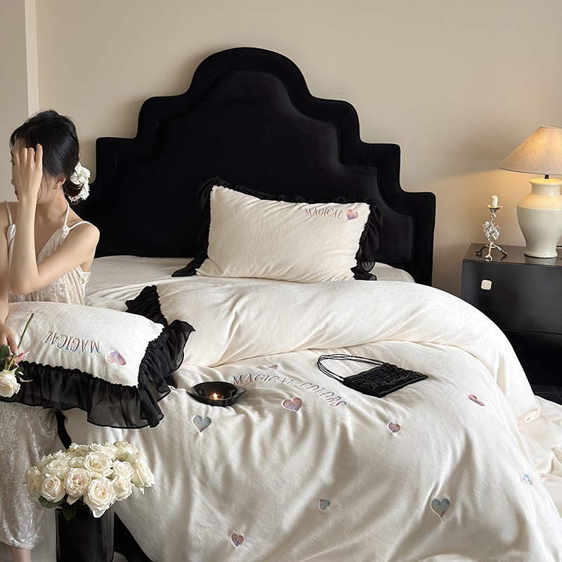 (总)MIU缪家居 2025新新款云锦绒牛奶绒四件套-赫妍,鎏金白,丝绒粉