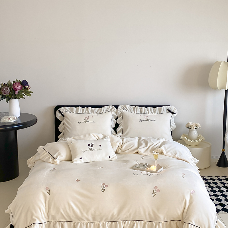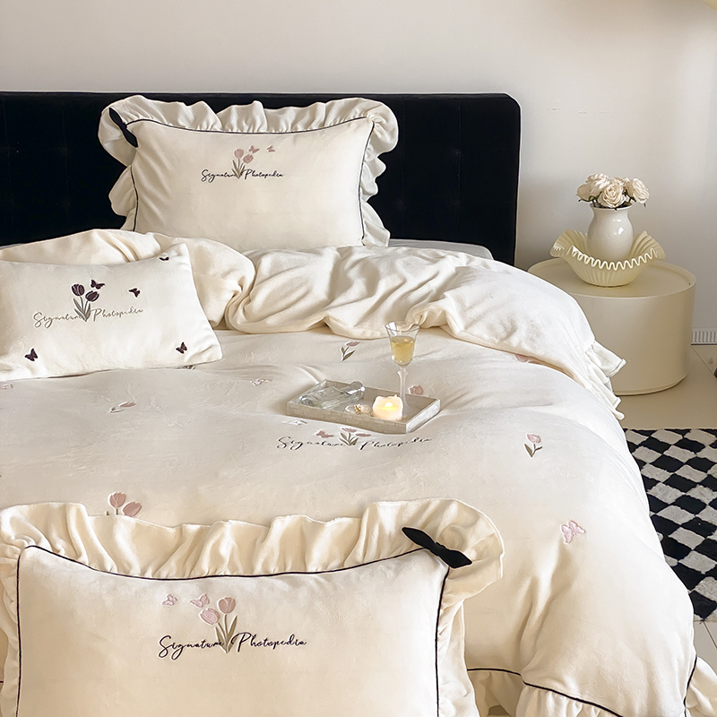 MIU缪家居 2024新款厚实保暖牛奶绒四件套-挚爱 挚爱-奶奶白