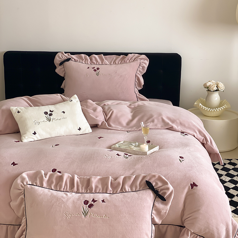 (总)MIU缪家居 2025新新款云锦绒牛奶绒四件套-赫妍,鎏金白,丝绒粉