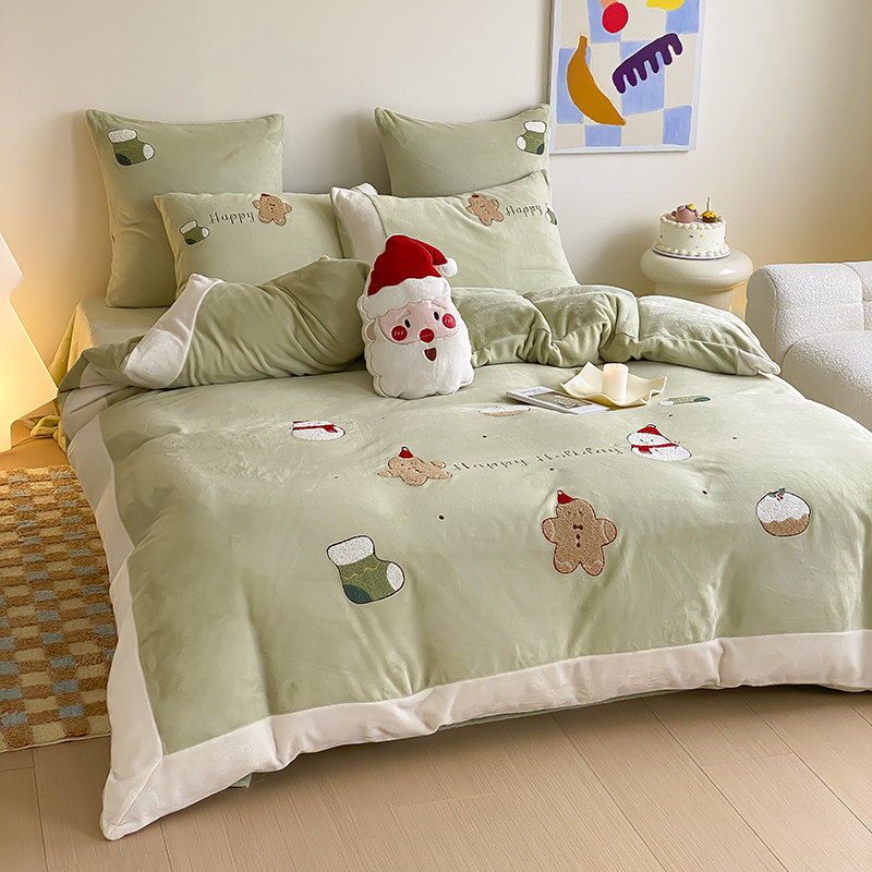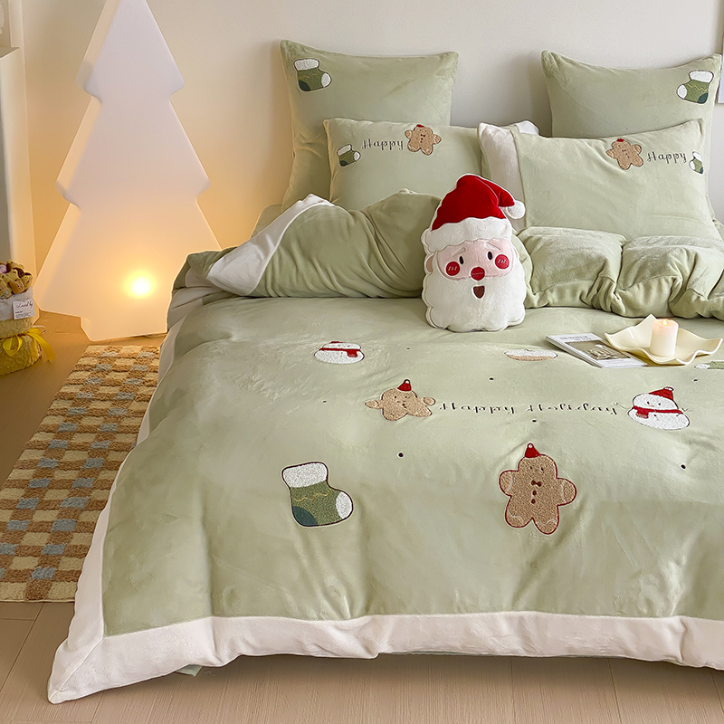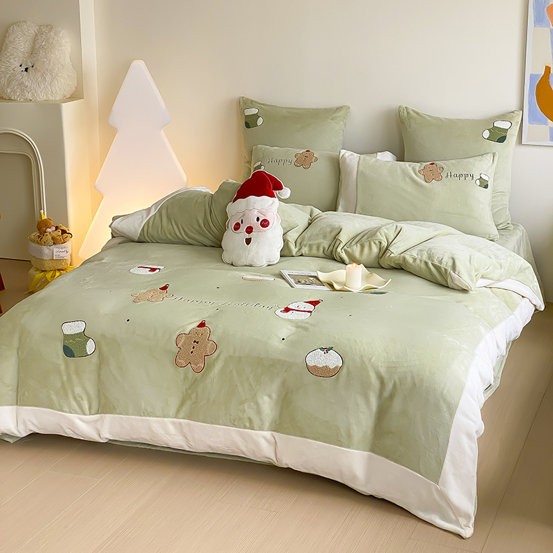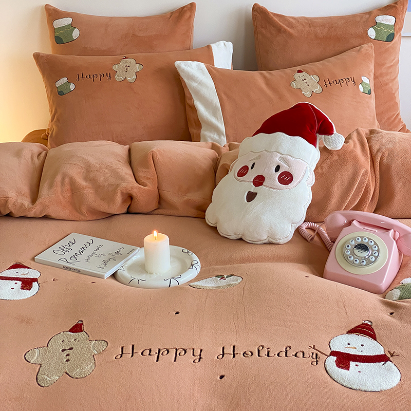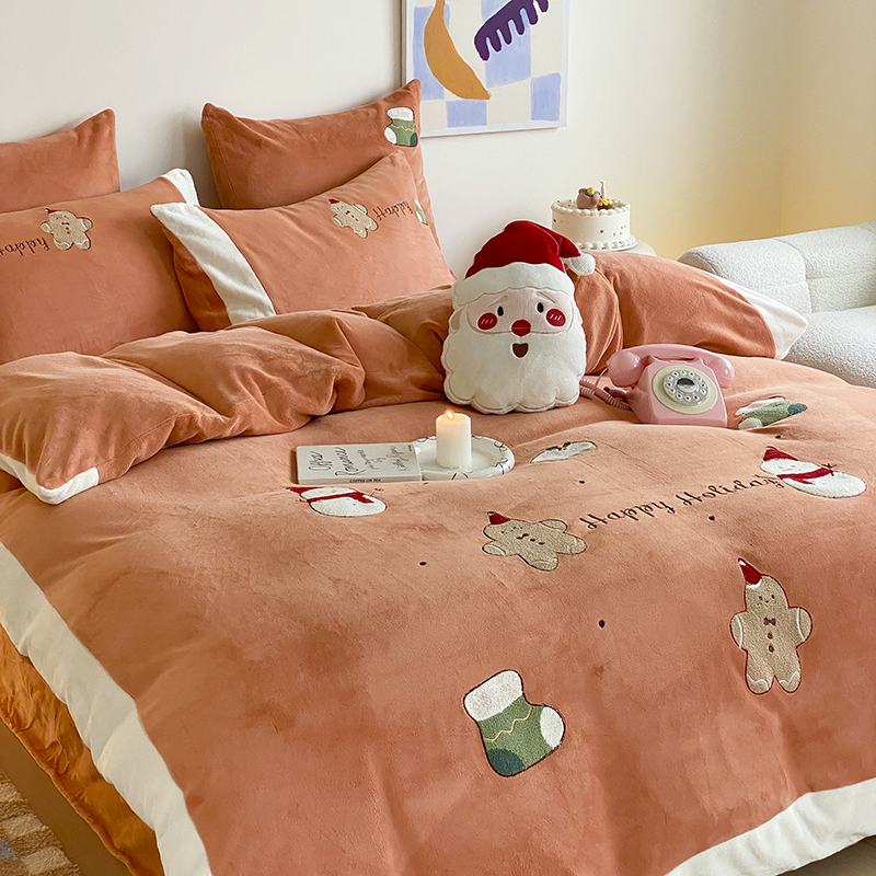 MIU缪家居 2024新款加厚保暖牛奶绒四件套-圣诞礼物 圣诞礼物 橘色