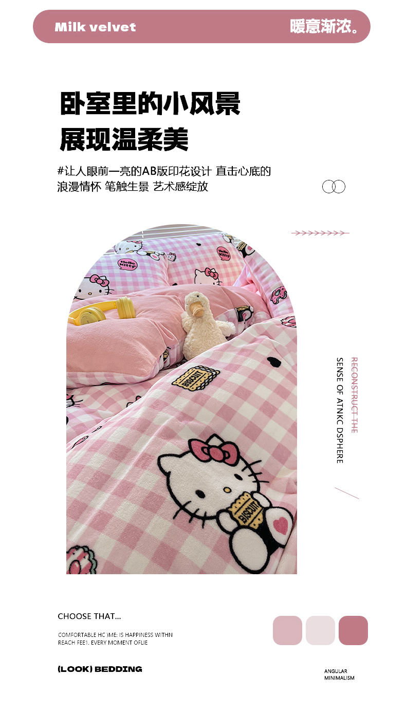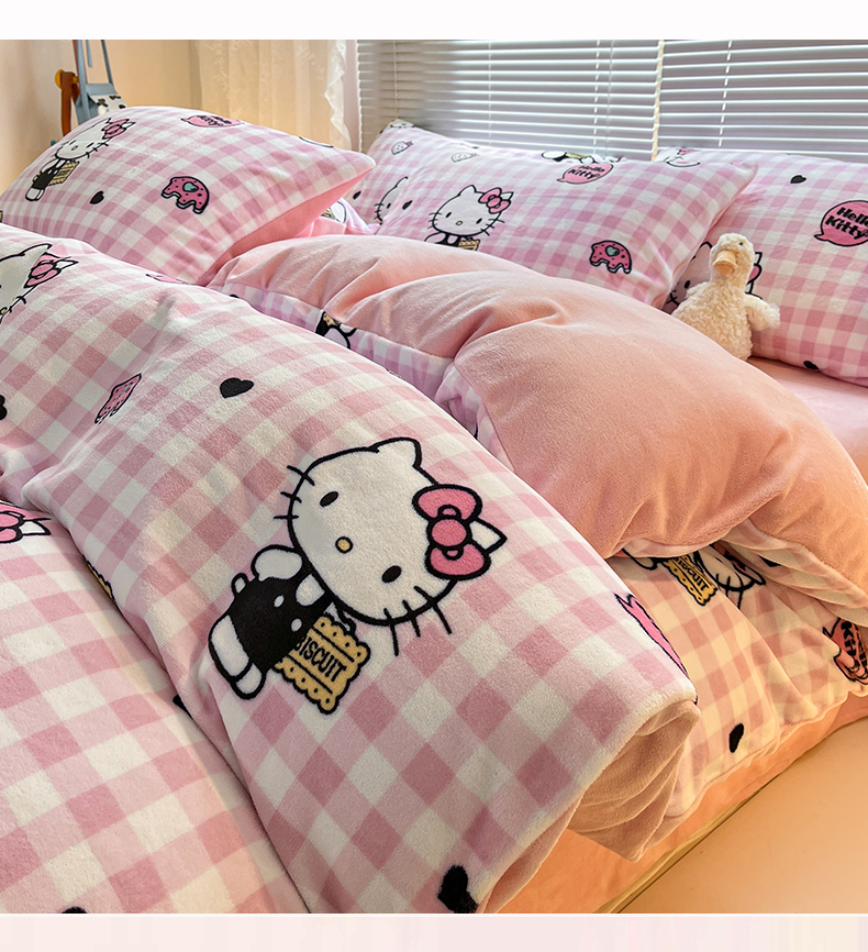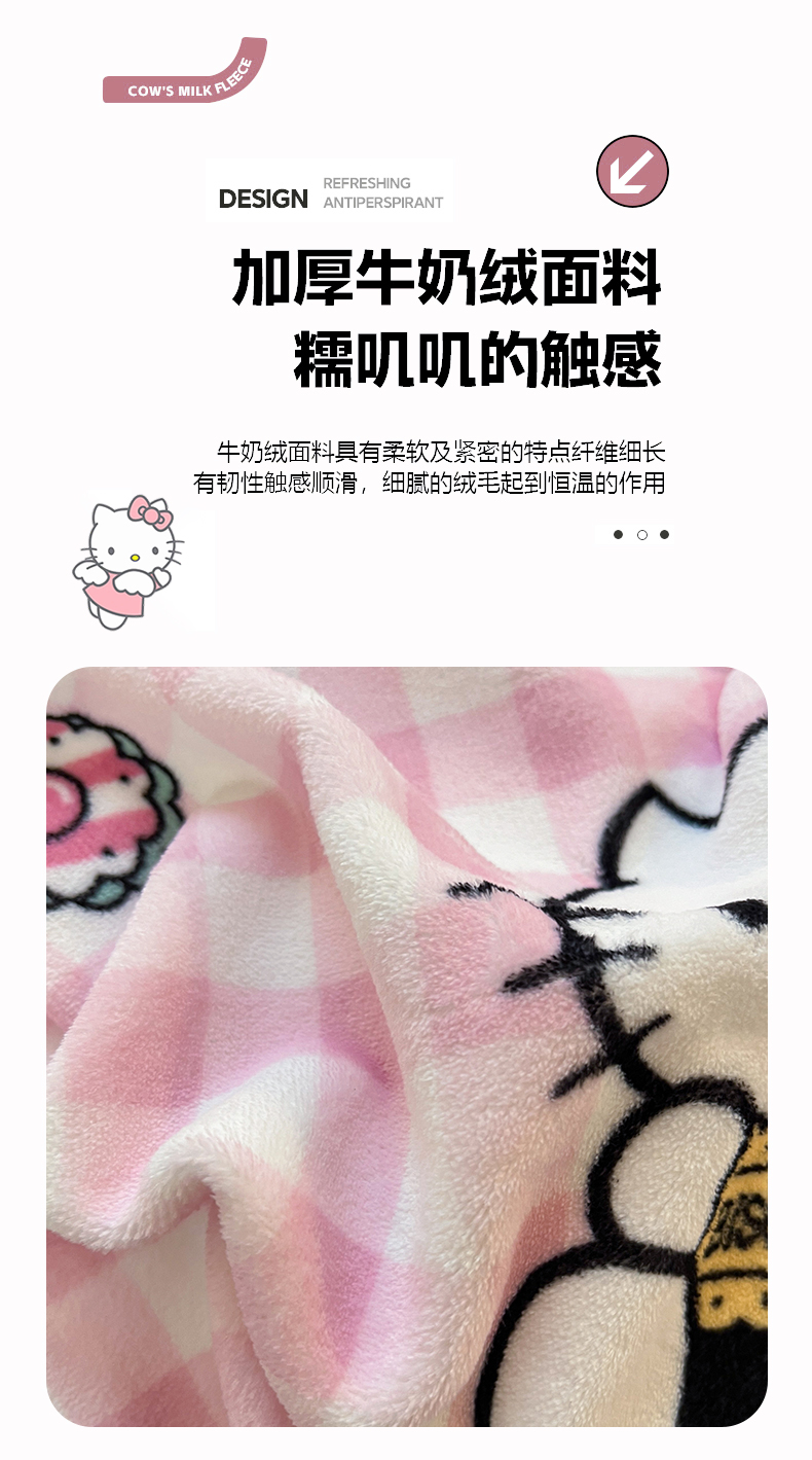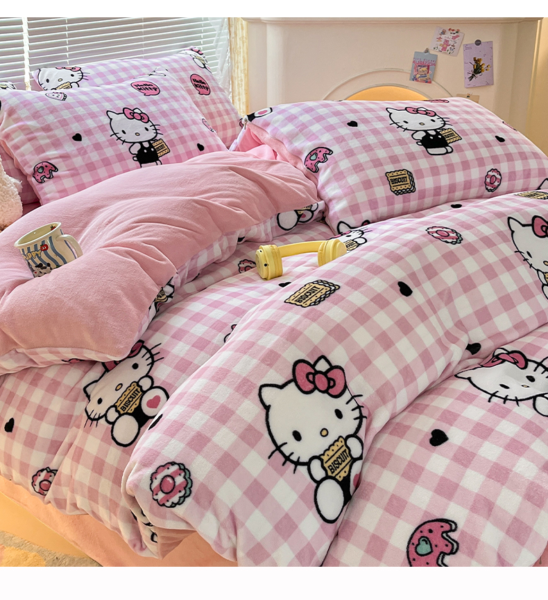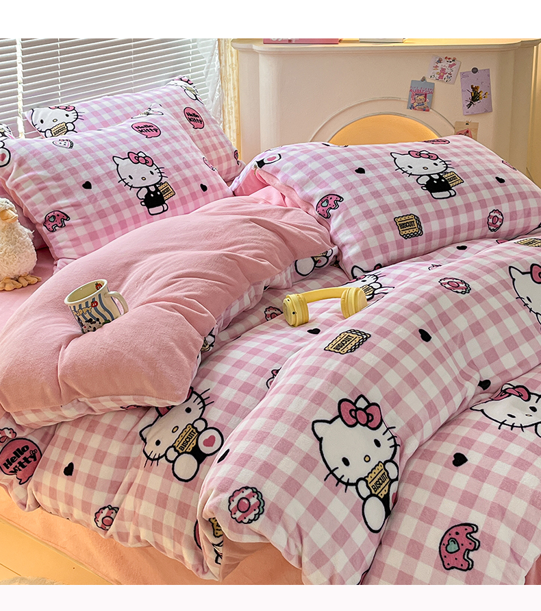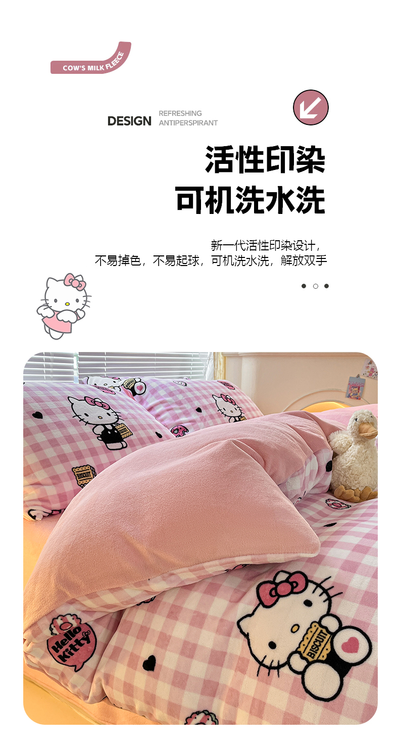 当前位置: 91家纺网 > 商品网购 > 床品套件 > 四件套 > 牛奶绒四件套 > 美澳家纺 2024新款200克三丽鸥系列卡通印花牛奶绒单被套三四件套 粉格KT