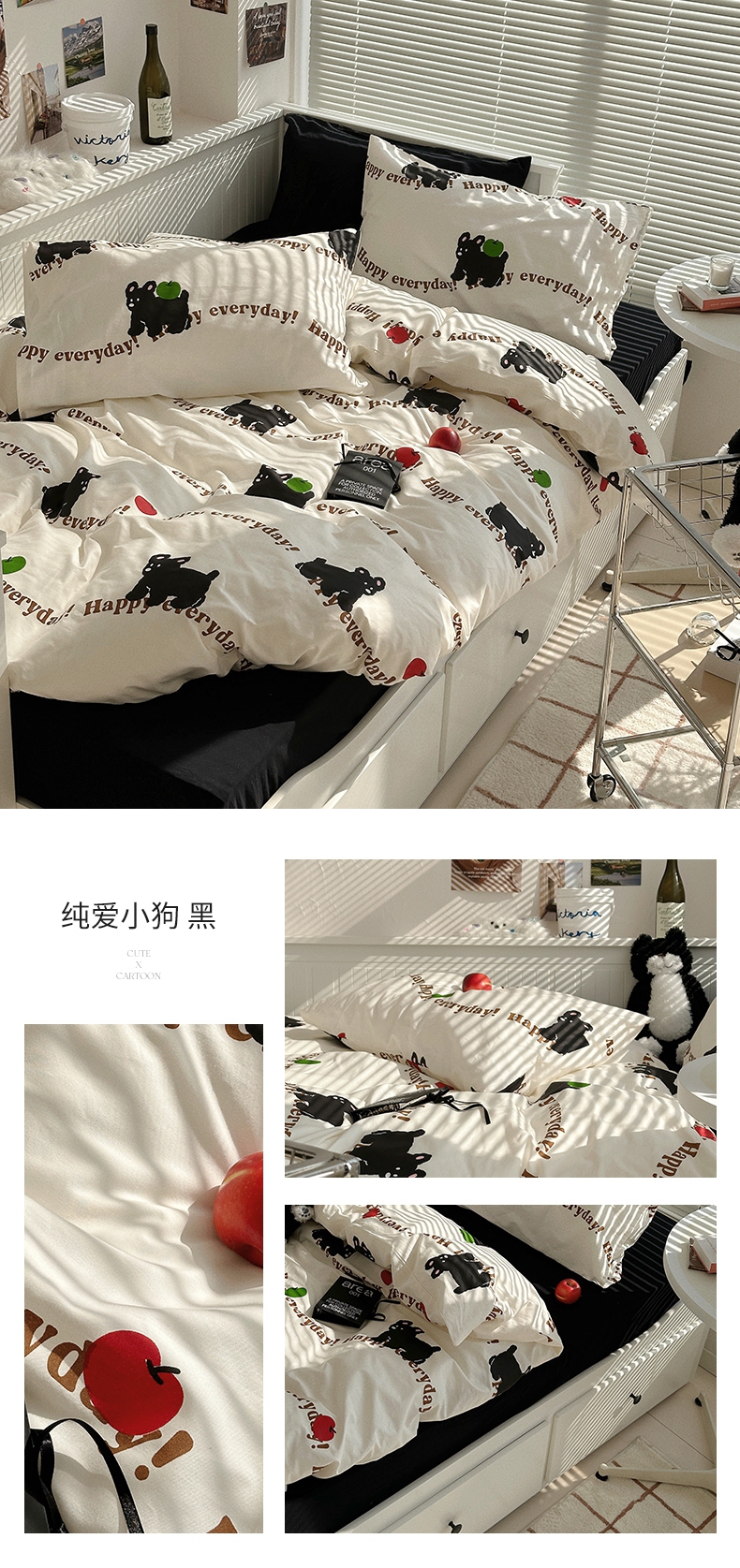 (总)尺素 2025新款纯棉卡通ins风四件套可爱少女风全棉被套纯色1.8床笠加大床单学生1.2三件套,告白熊--浅蓝,格调粉--奶黄,格调粉--桃粉,蓝白情书--浅蓝,清梦--冰沙绿,清梦--浅黄,小熊软糖--焦糖