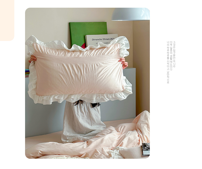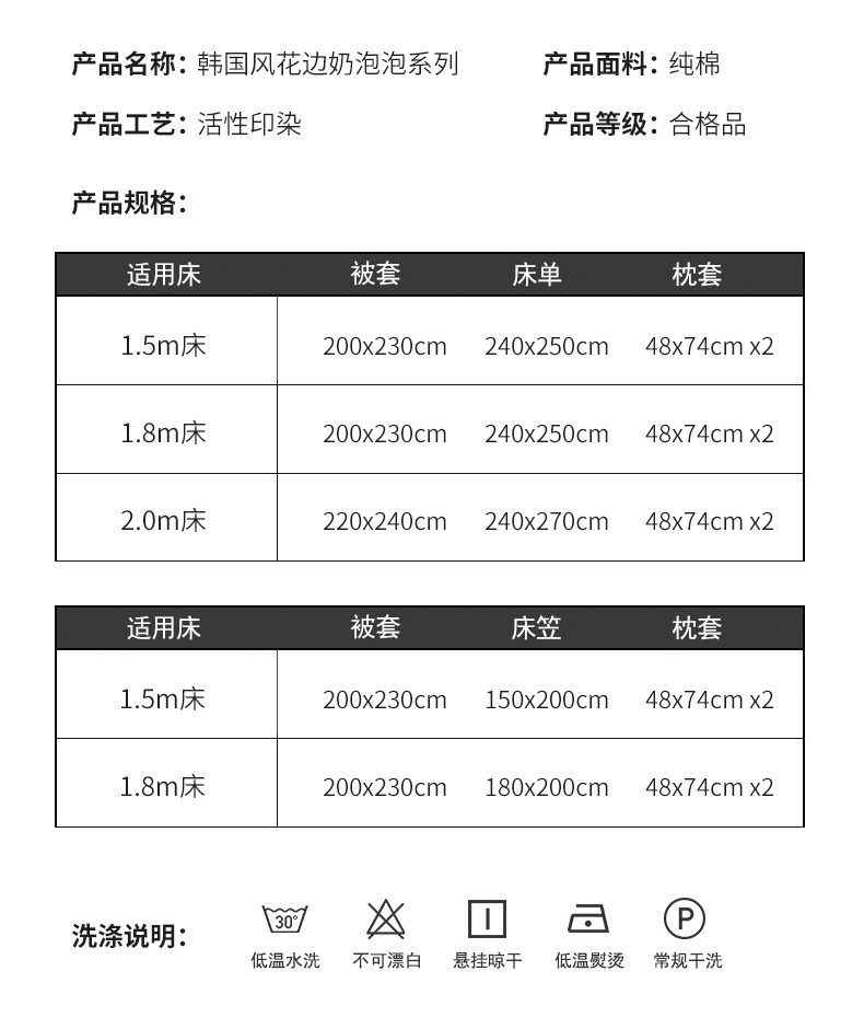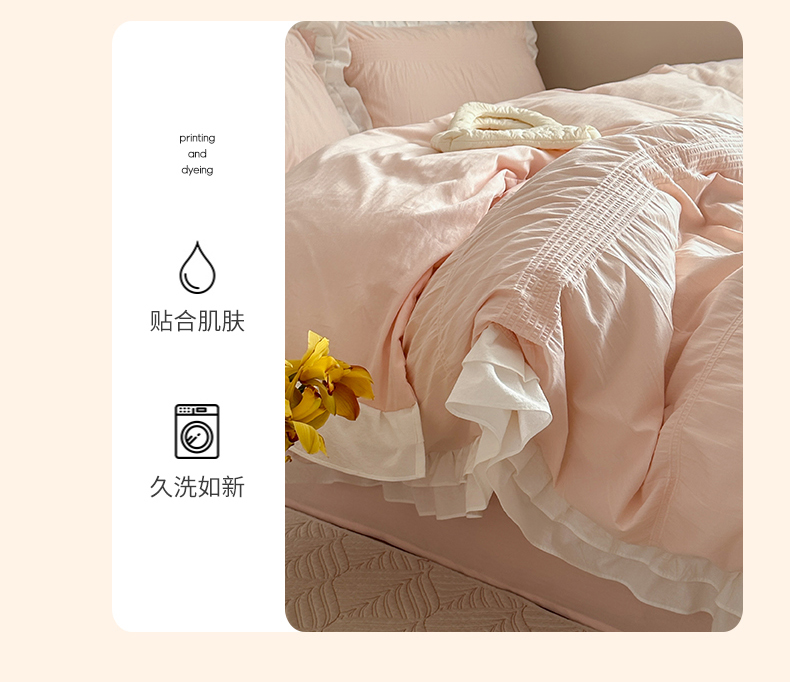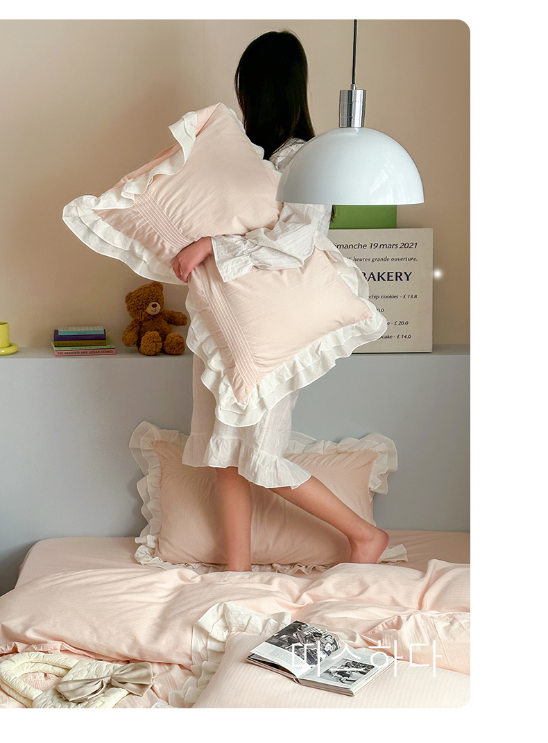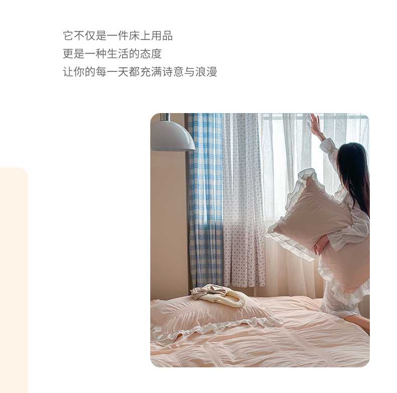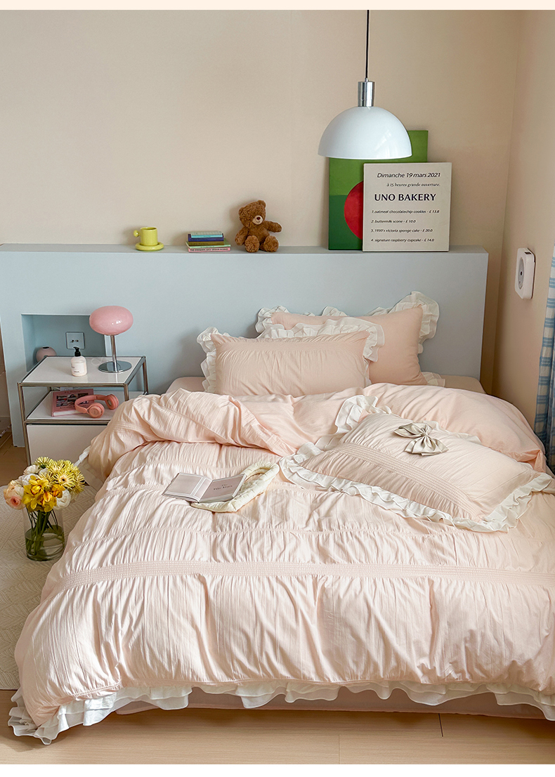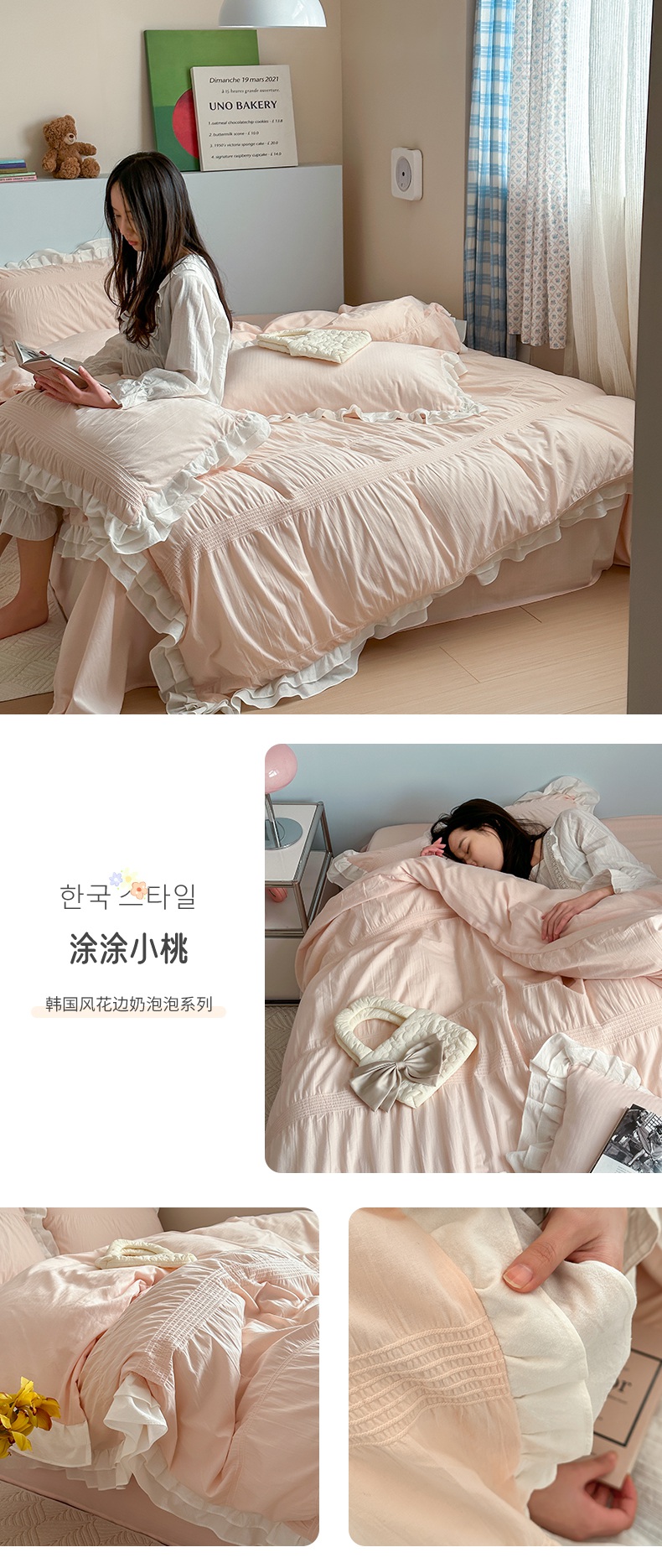 商品名称:尺素 2024新款韩版ins花边款双人1.8四件套水洗棉泡泡纱被套人字纹床单 奶泡泡-涂涂小桃
