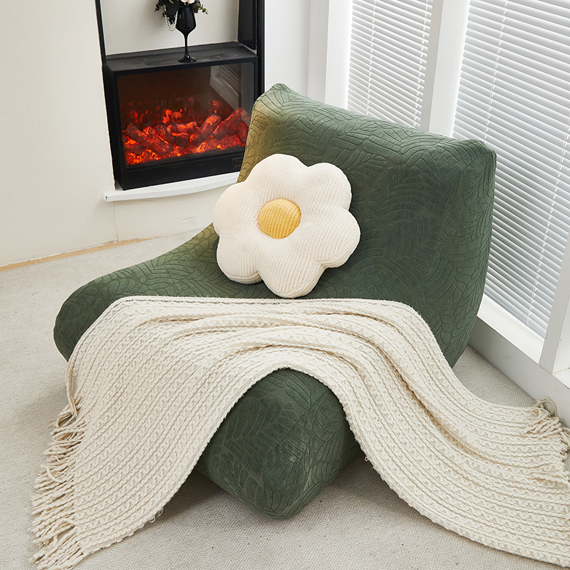 商品名称:共鸣沙发套 2024新款臻品提花系列懒人沙发套(织叶花系) 织叶松绿