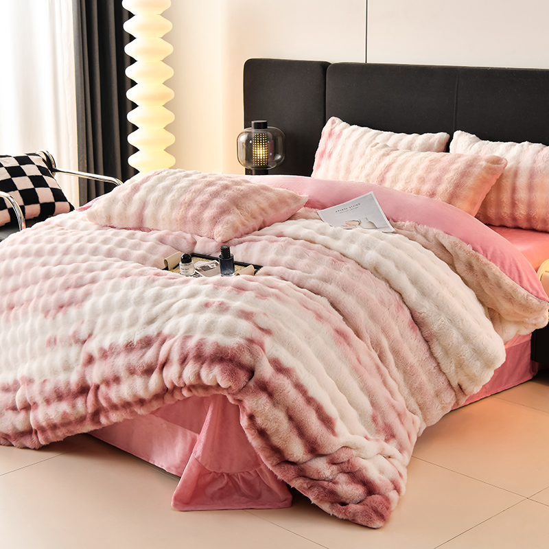 商品名称:羽梦家纺 2024新款七彩兔兔绒兔毛绒四件套 七彩-粉玉