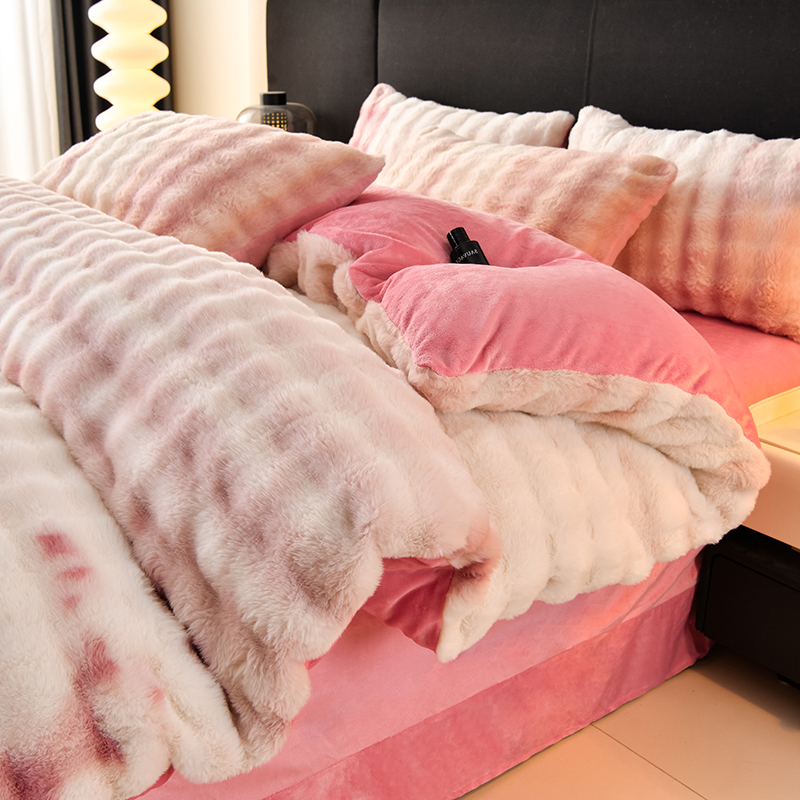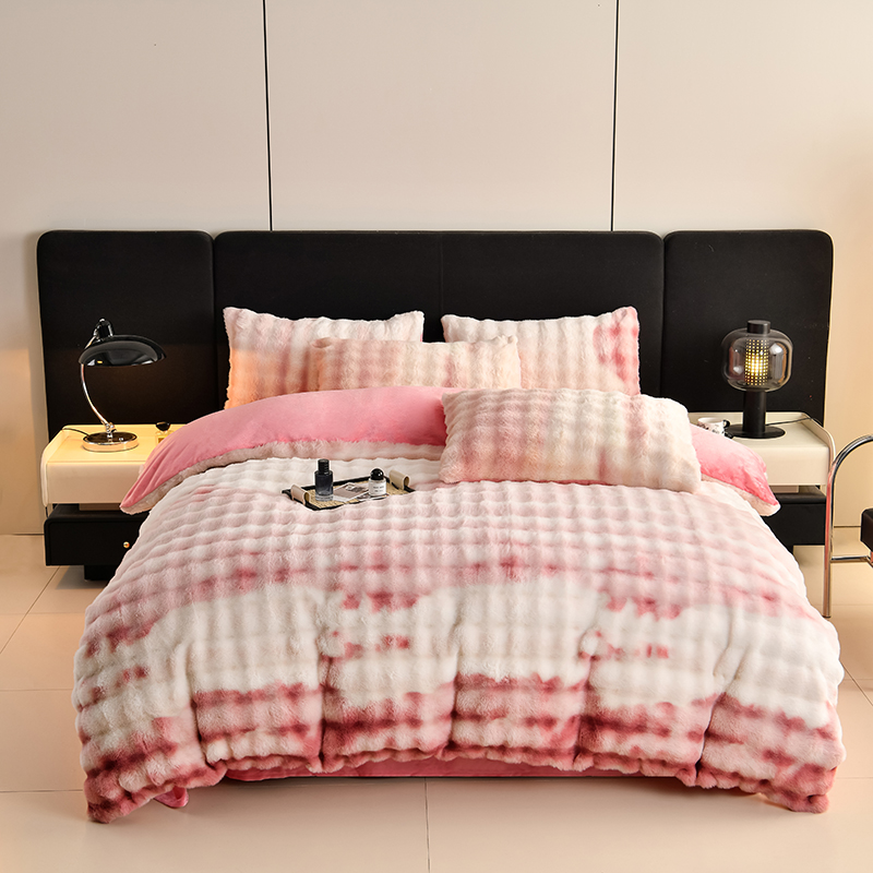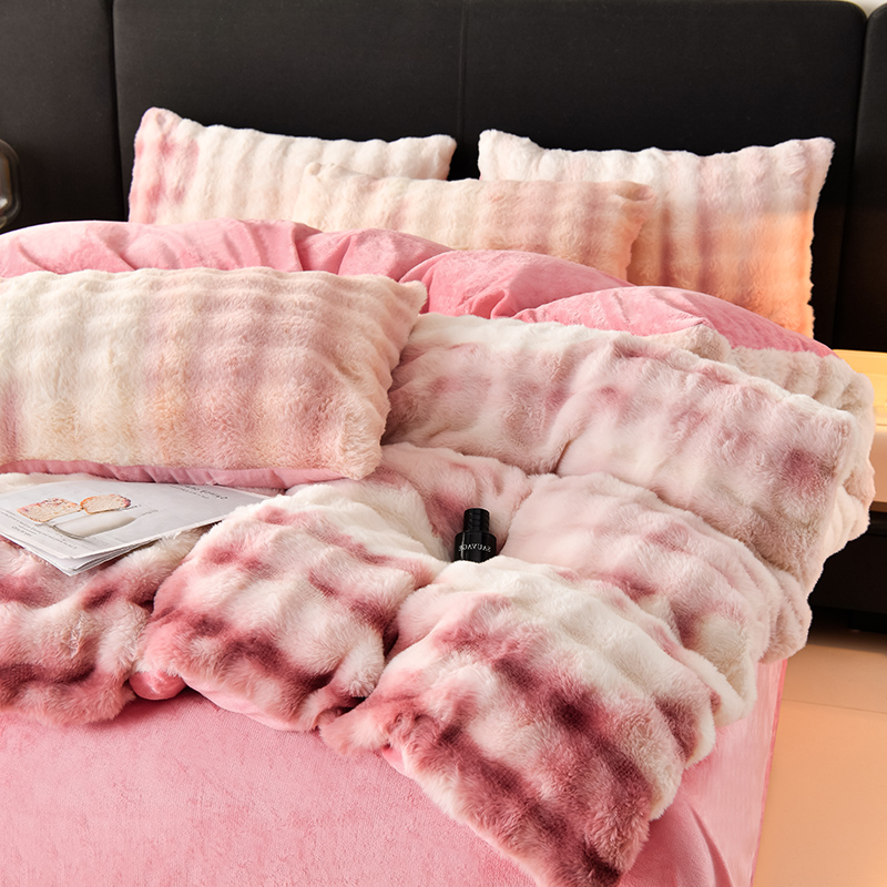 羽梦家纺 2024新款七彩兔兔绒兔毛绒四件套 七彩-粉玉