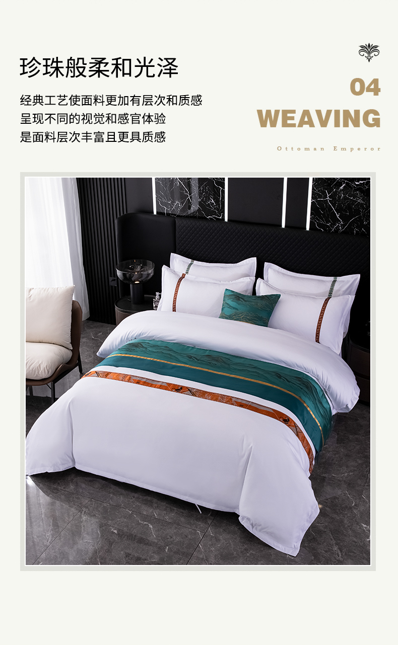 (总)中乾酒店布草工厂店 2025新款120克加密织带款酒店四件套,爱马仕橙,彩羽呈祥,林深见鹿,水墨江南,丝蕴流年