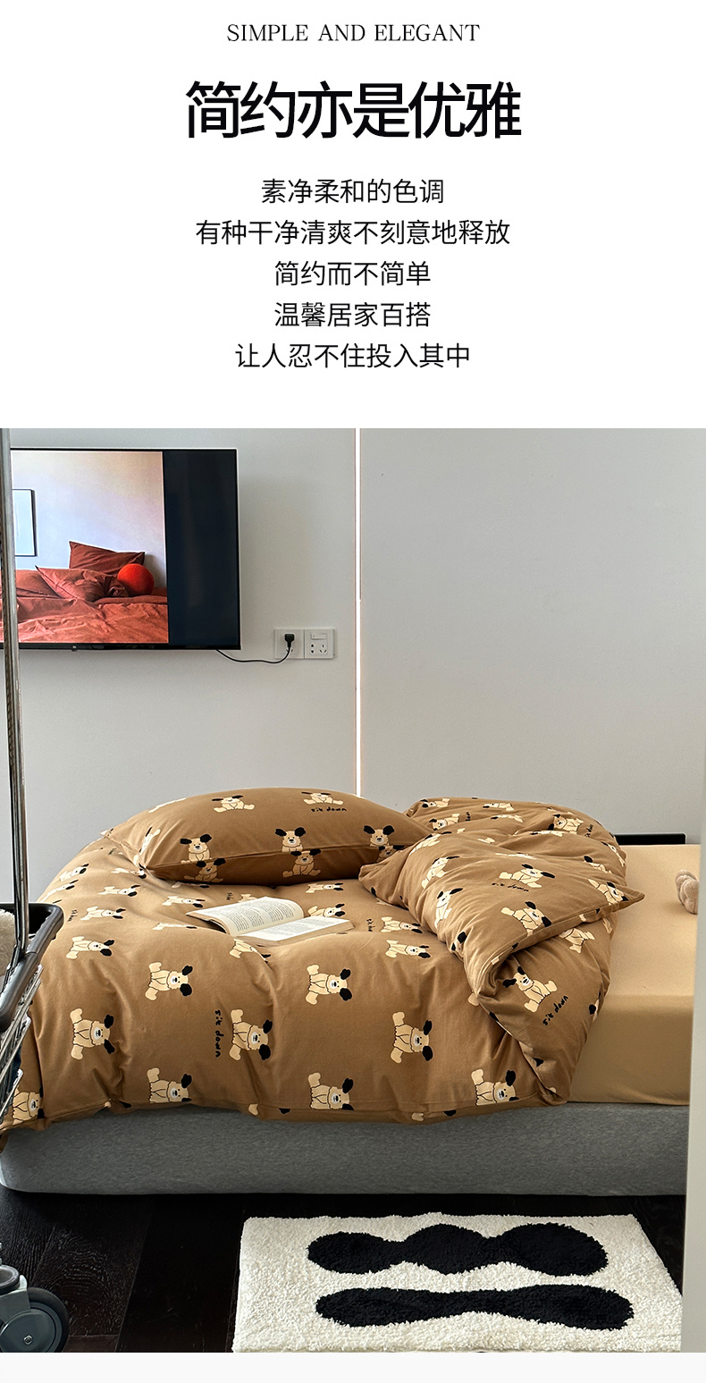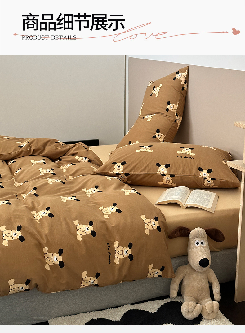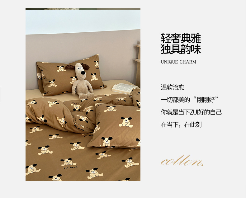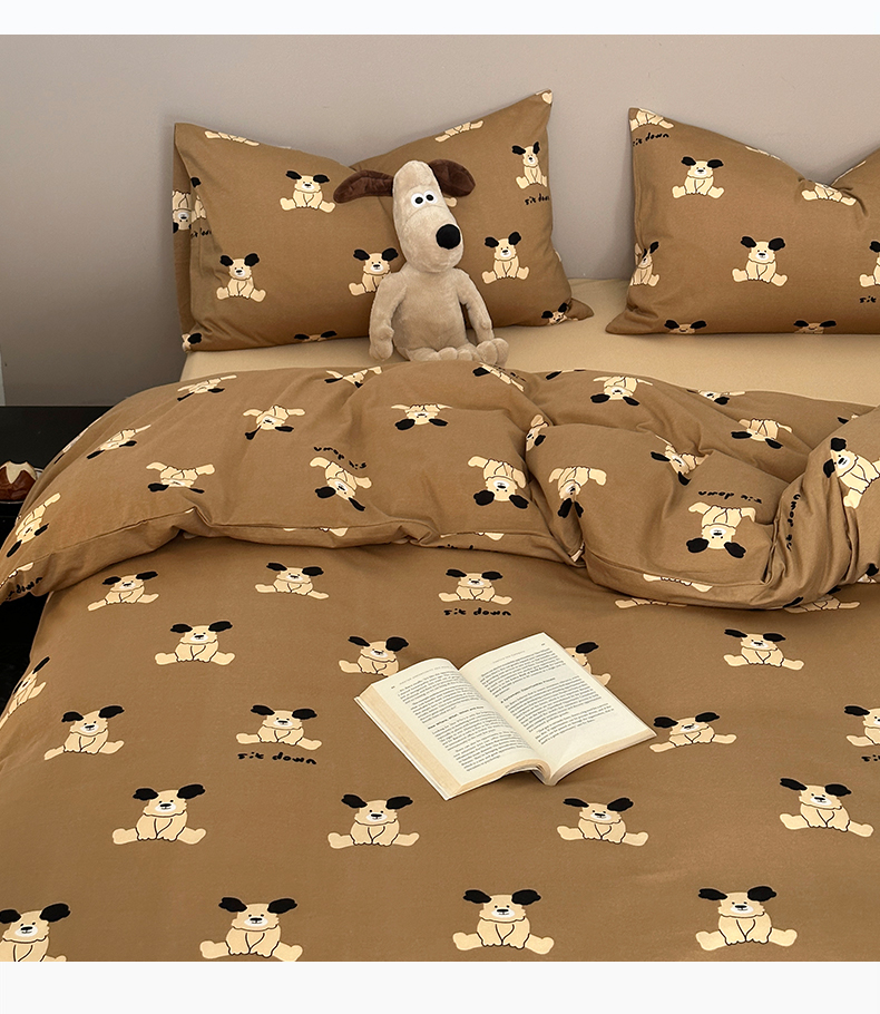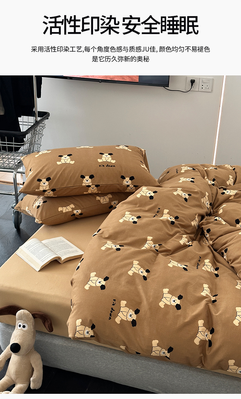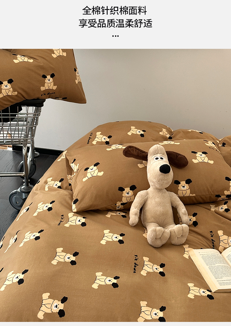 商品名称:绫韵家纺 2025春夏新品母婴A类全棉纯棉针织棉软糯糯小可爱卡通床单款四件套 呆萌狗
