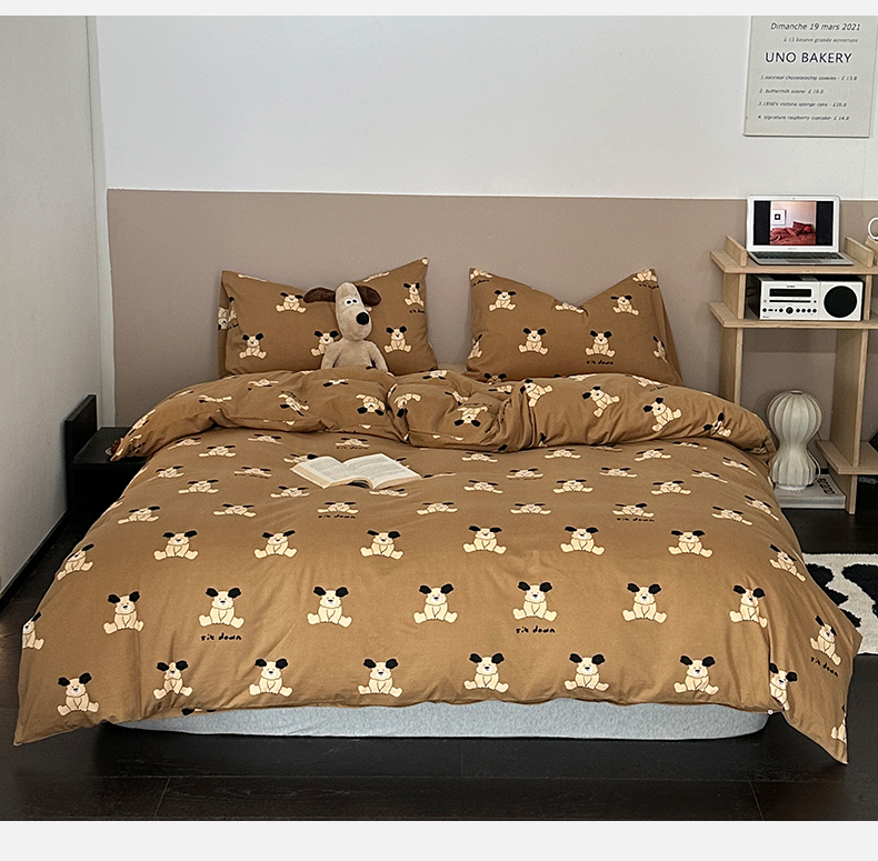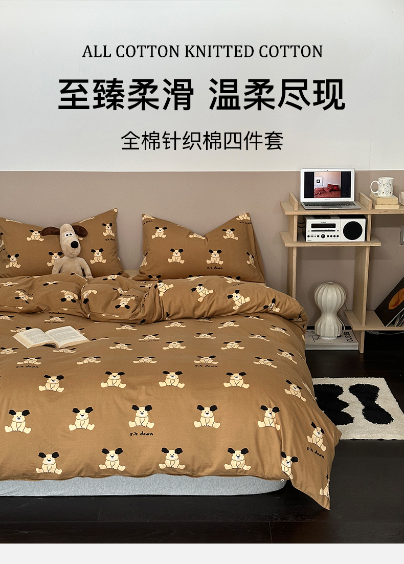 绫韵家纺 2025春夏新品母婴A类全棉纯棉针织棉软糯糯小可爱卡通床单款四件套 呆萌狗