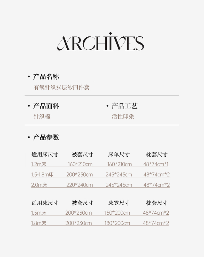 商品名称:金米诺 2024款A类有氧针织棉双层纱加厚四件套 摩卡