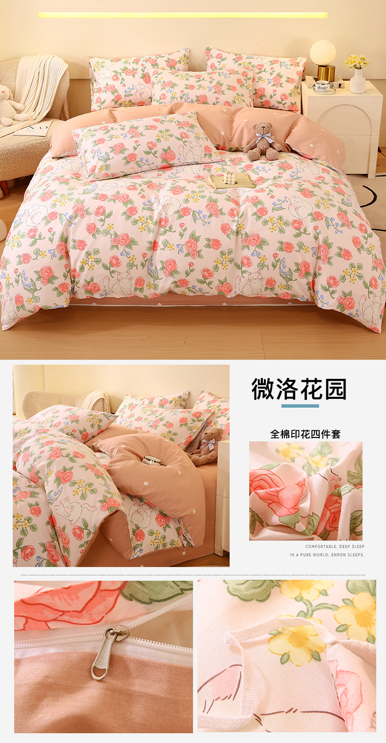 当前位置: 91家纺网 > 商品网购 > 床品套件 > 四件套 > 全棉普通四件套 > 2023-2024新款13070全棉好卖花型套件系列-四件套 微洛花园