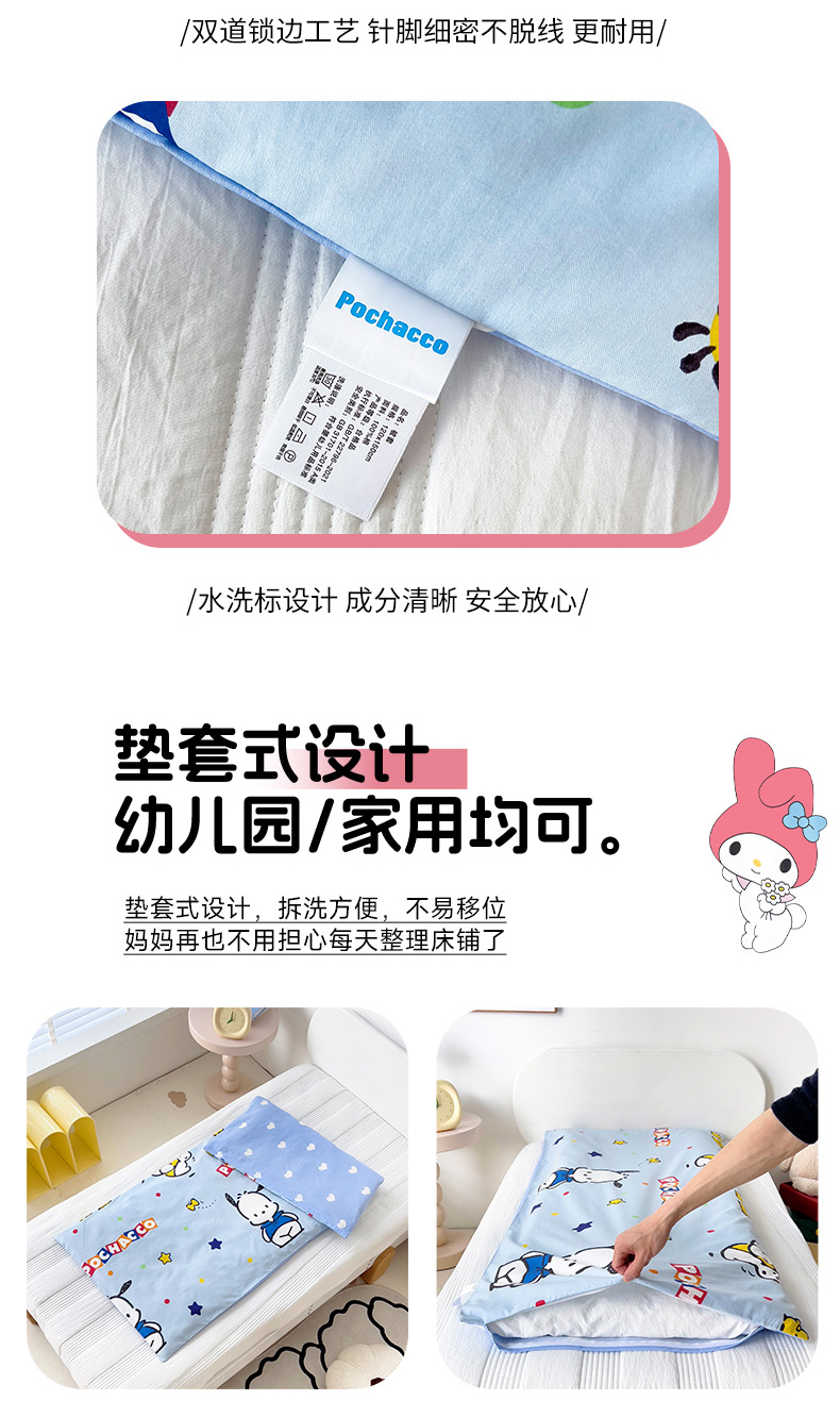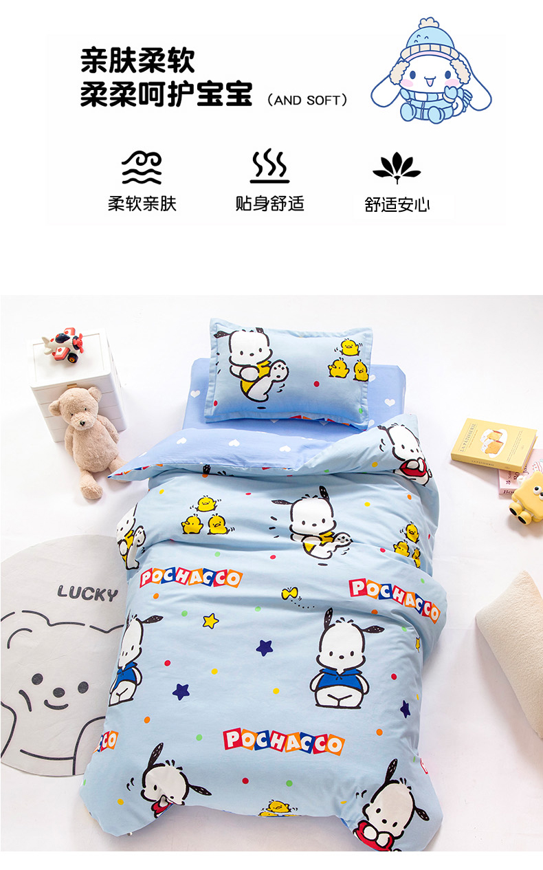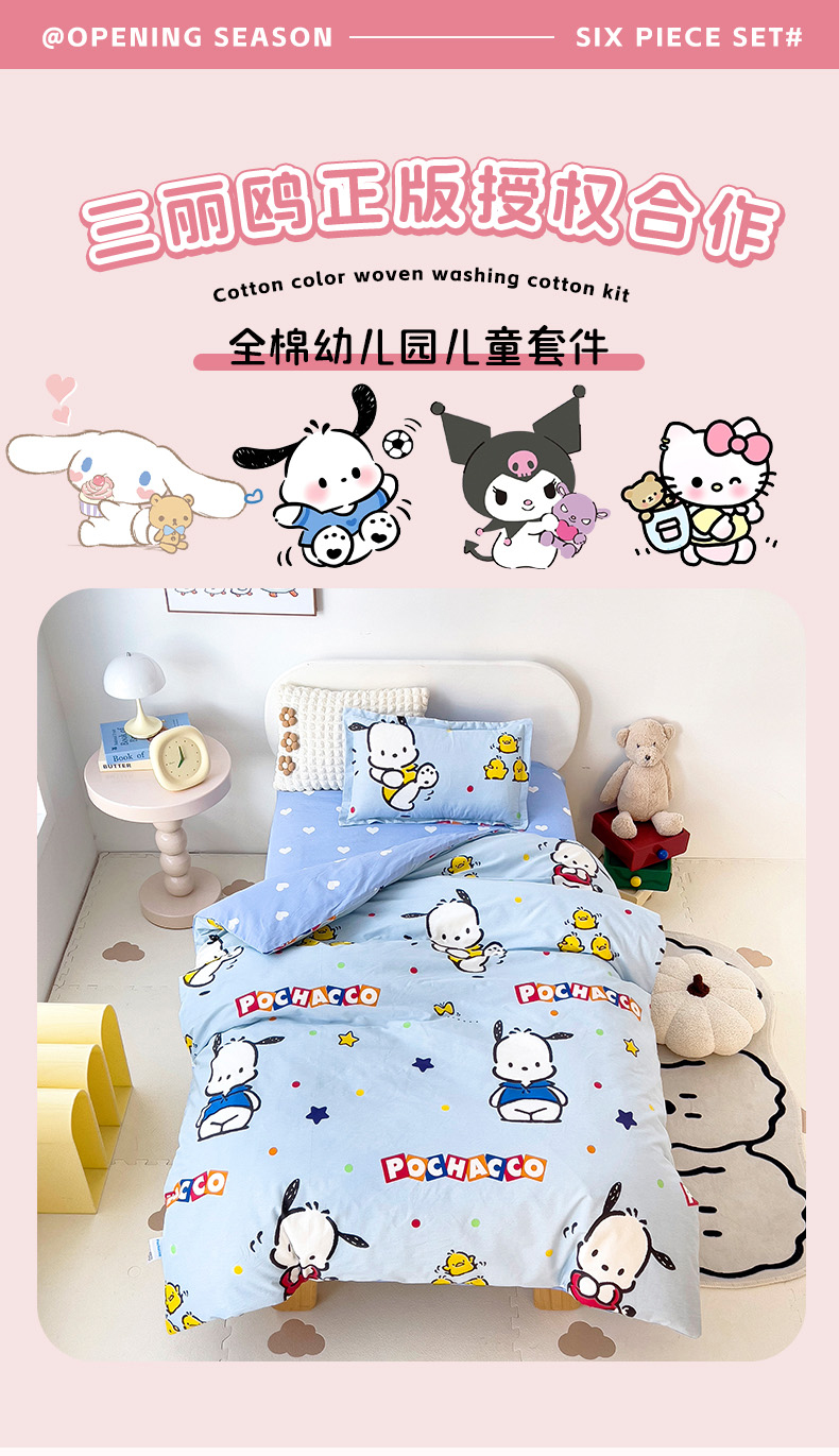 当前位置: 91家纺网 > 商品网购 > 床品套件 > 多件套 > 多件套 > 芭伯妮 2025新款全棉三丽鸥幼儿园三件套 儿童宝宝午睡套件 含芯六件套 活力帕恰