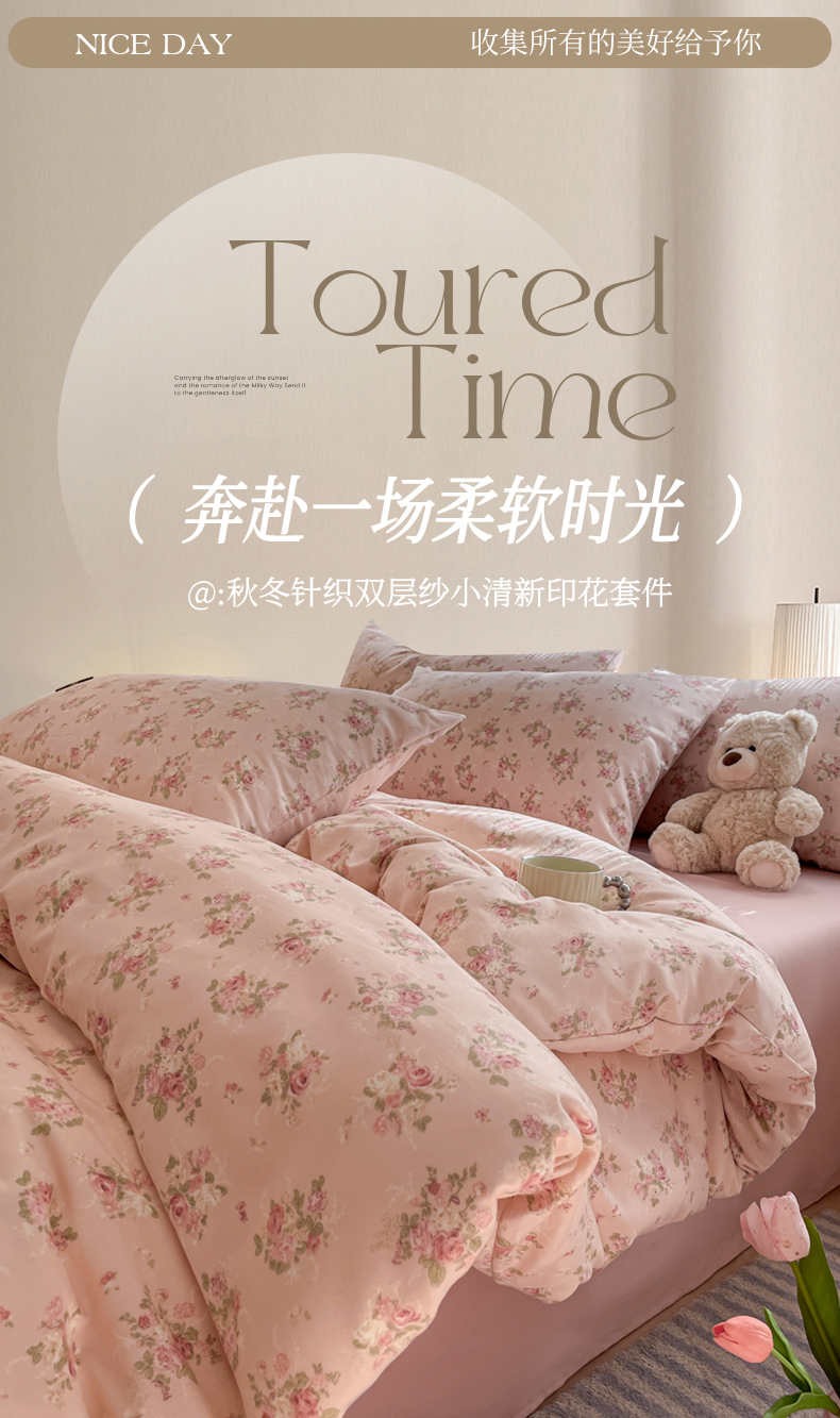 当前位置: 91家纺网 > 商品网购 > 床品套件 > 四件套 > 双层纱四件套 > 玉海棠家纺 2025新款针织双层纱四件套 春和豆沙