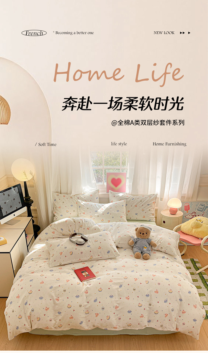 当前位置: 91家纺网 > 商品网购 > 床品套件 > 四件套 > 博雅 2025新款全棉A类双层纱四件套 奶油蛋糕
