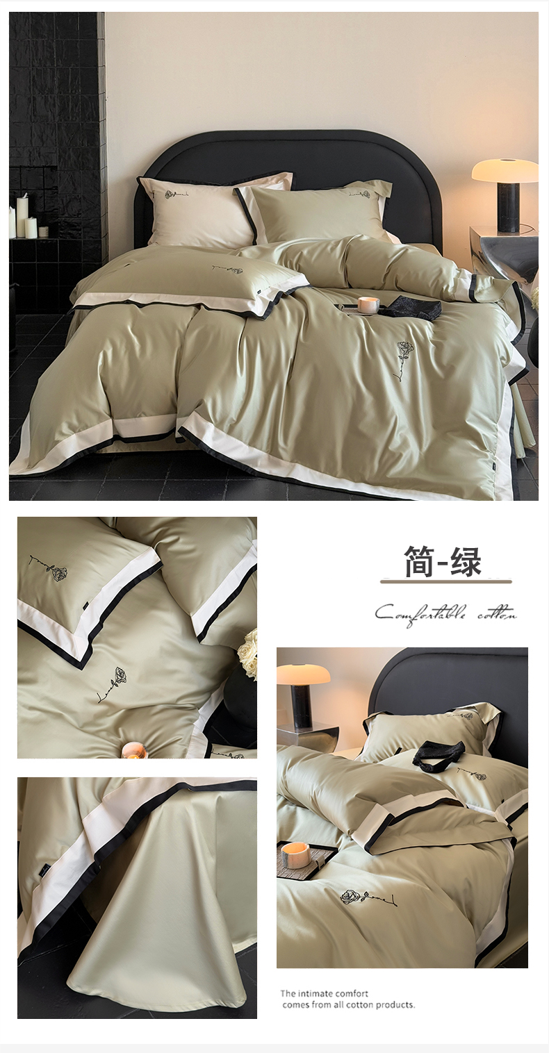 佳汐蓝家纺 2025新款100支澳棉刺绣拼接四件套-简 简-绿色