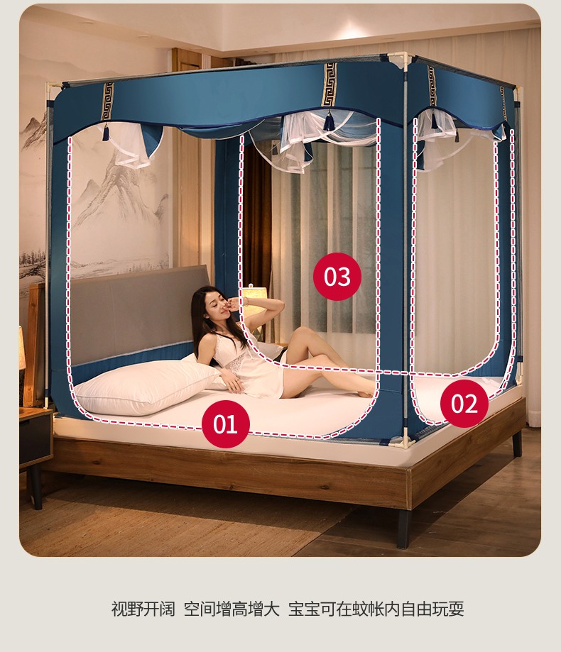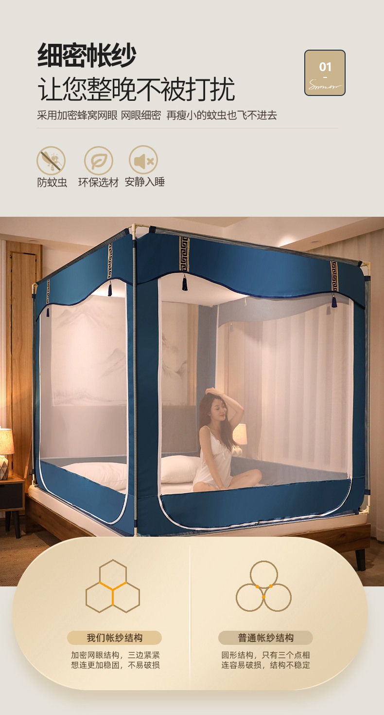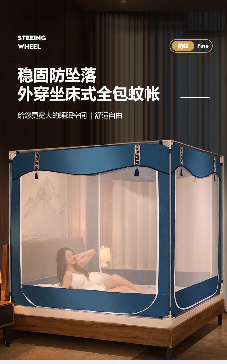 商品名称:青竹苑 2025新款外穿中式坐床全底防摔蚊帐 卡其色