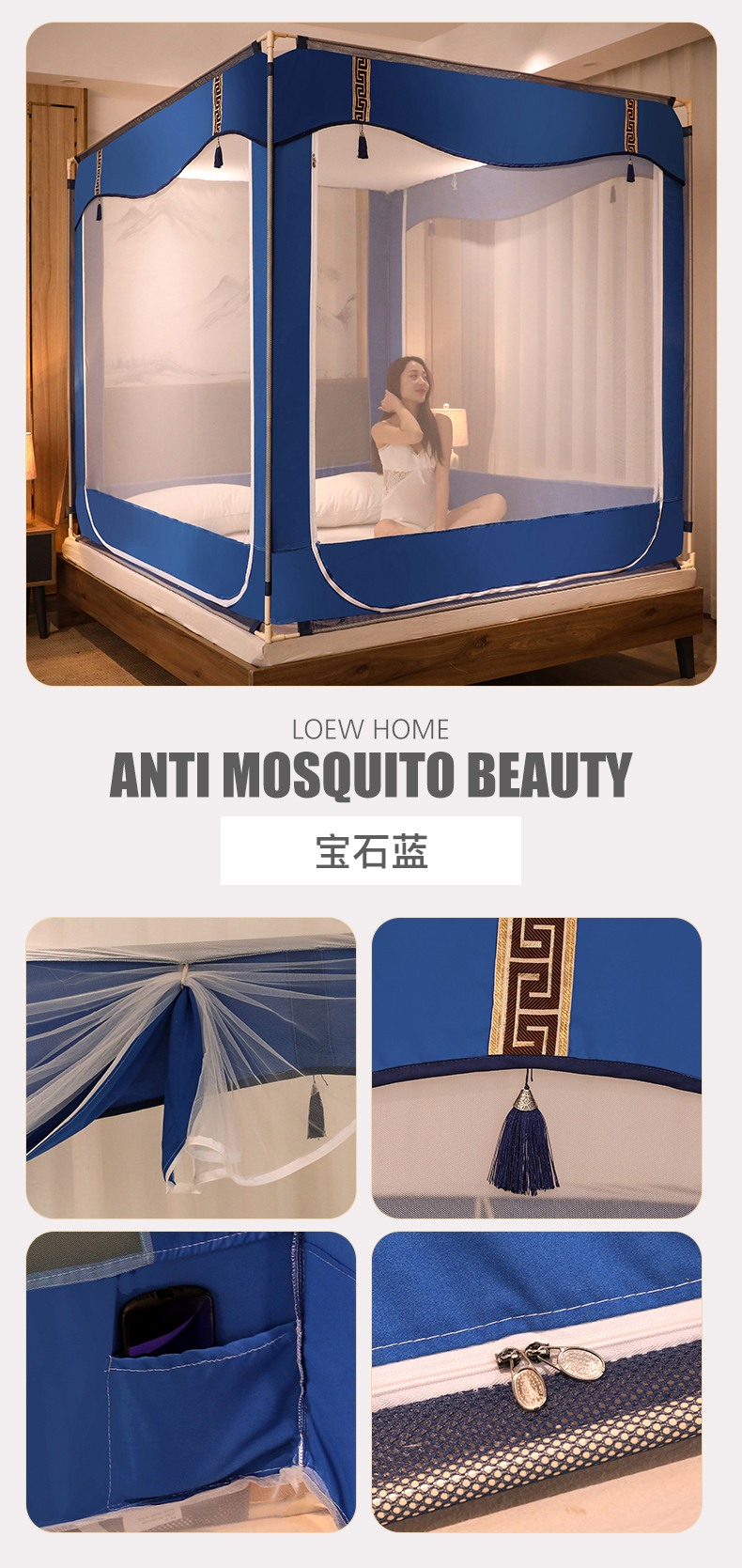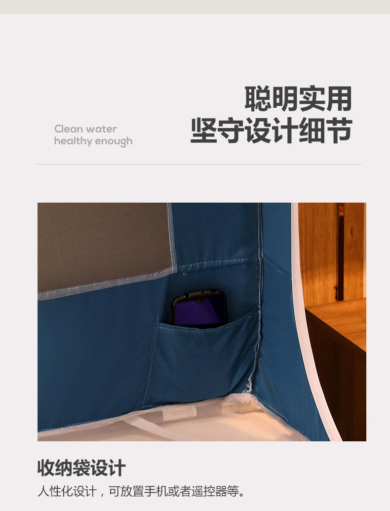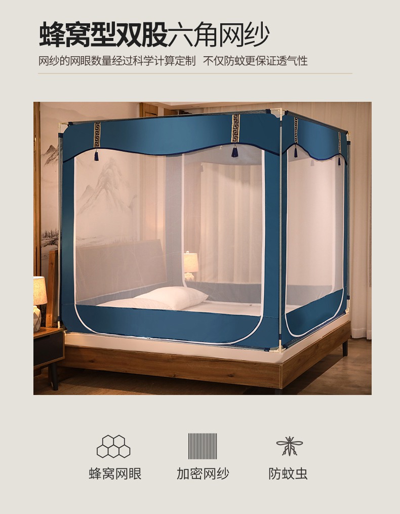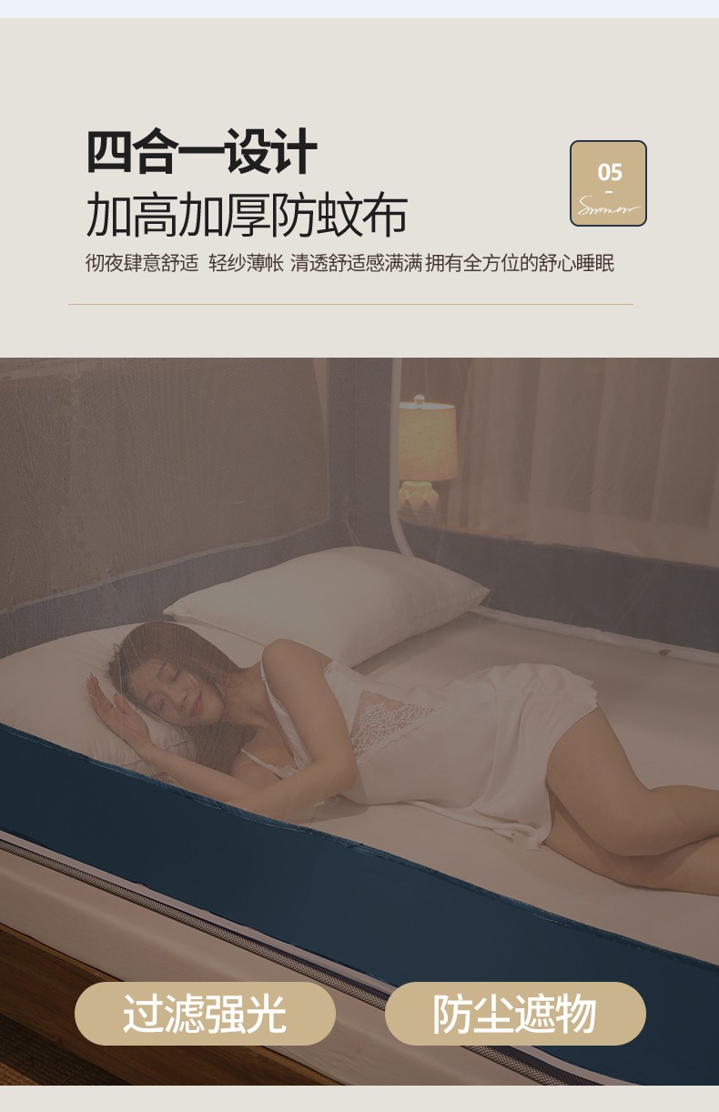 商品名称:青竹苑 2025新款外穿中式坐床全底防摔蚊帐 卡其色