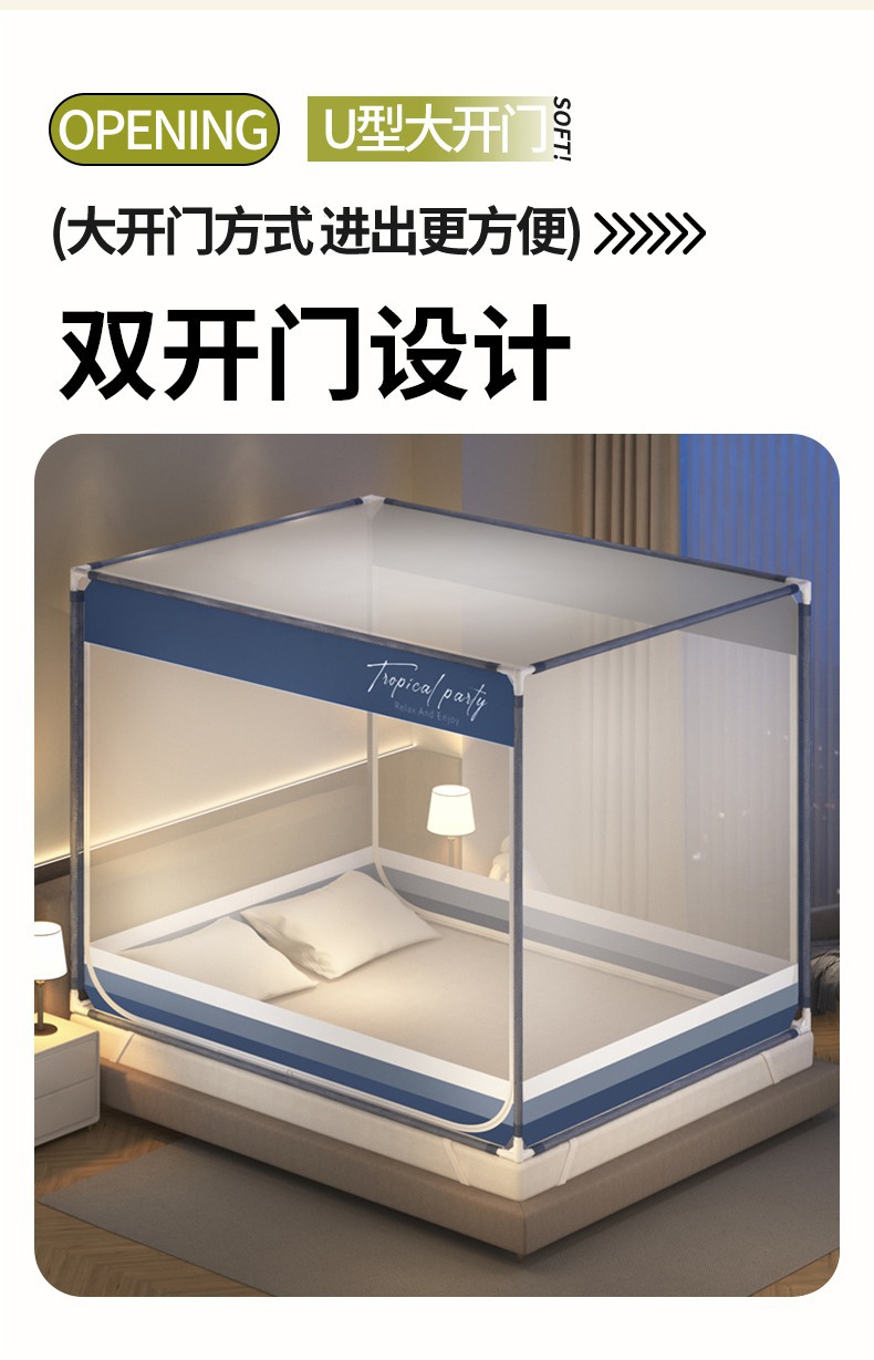 商品名称:青竹苑 2025新款双门全底外穿坐床式蚊帐儿童防摔防蚊拉链方帐 卡通-太空漫步