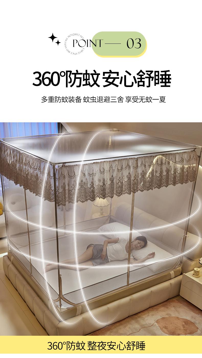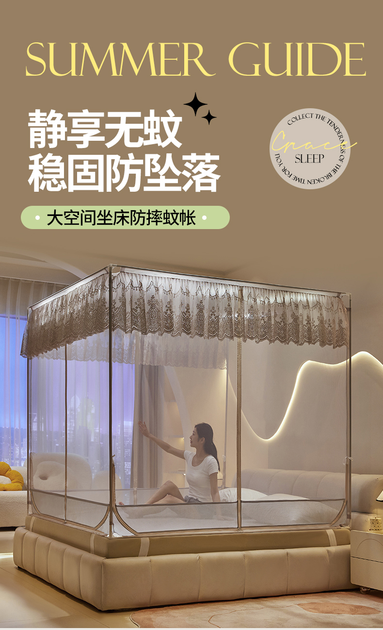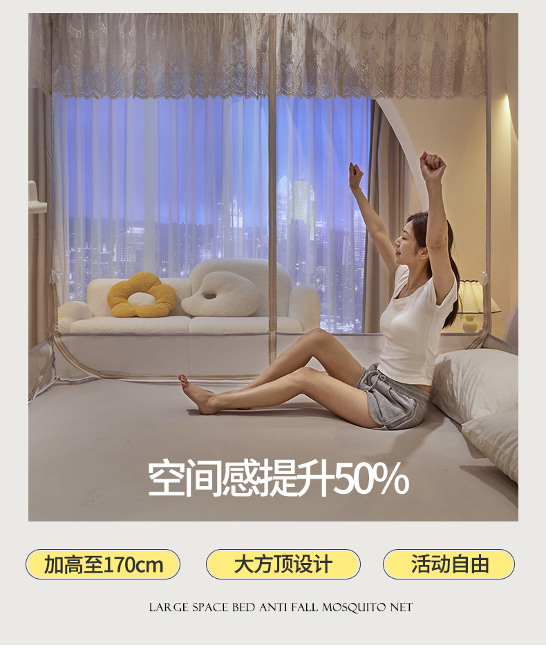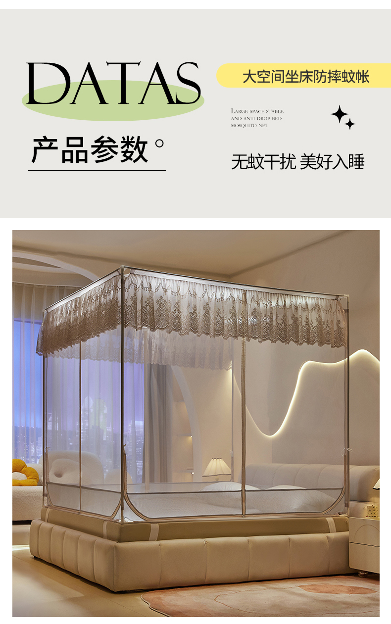 当前位置: 91家纺网 > 商品网购 > 床上用品 > 蚊帐 > 坐床式蚊帐 > 青竹苑 2025新款花边TU拉链外穿全底坐床蚊帐 月光灰