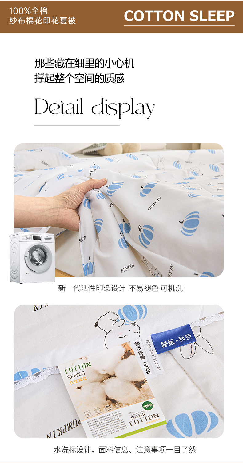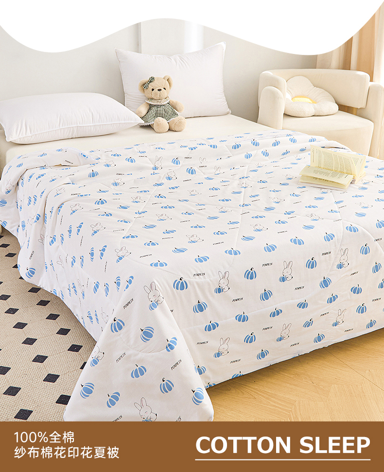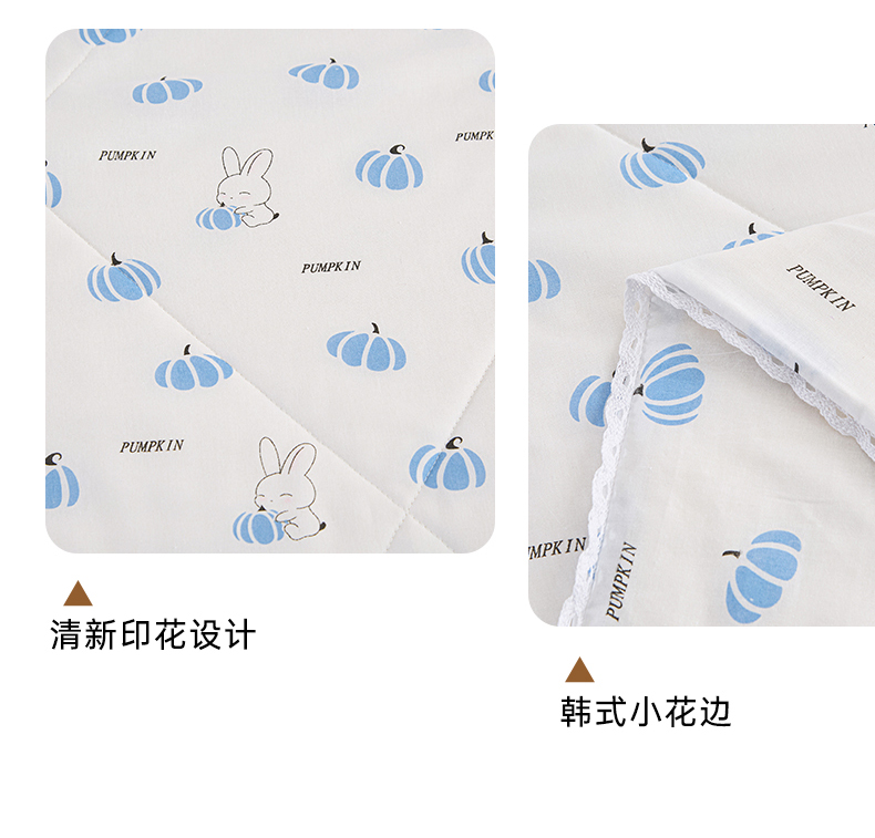 首爱小清新印花里外全棉夏被纱布夏被纯棉夏被棉花被夏凉被空调被子儿童夏被 蓝小兔