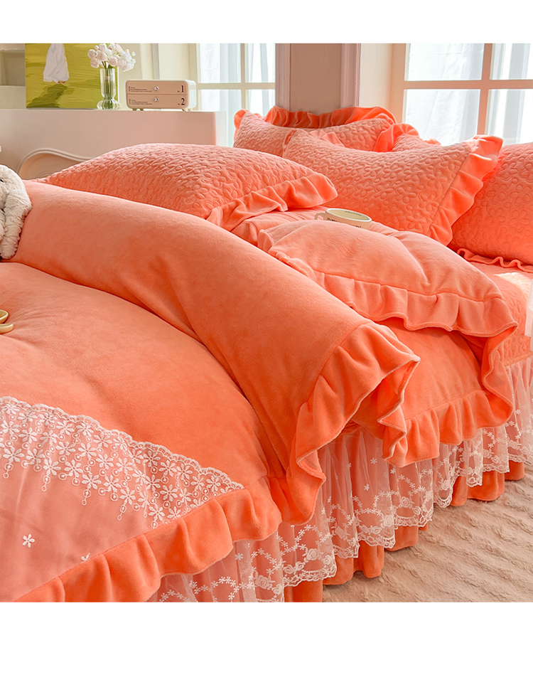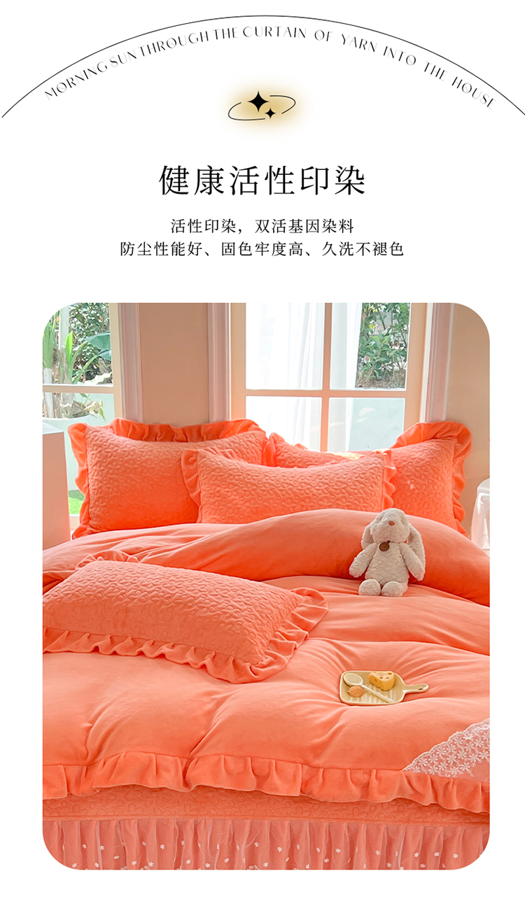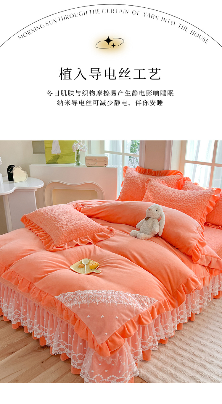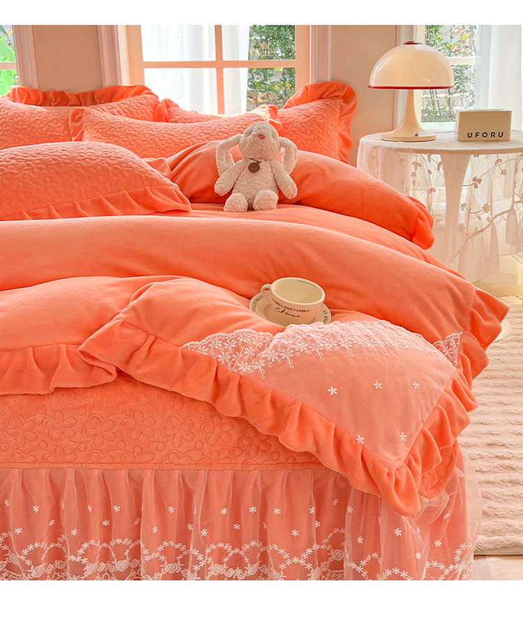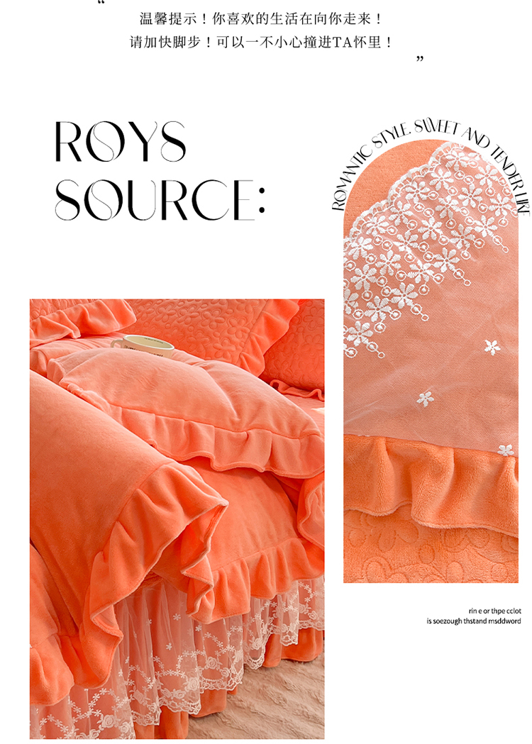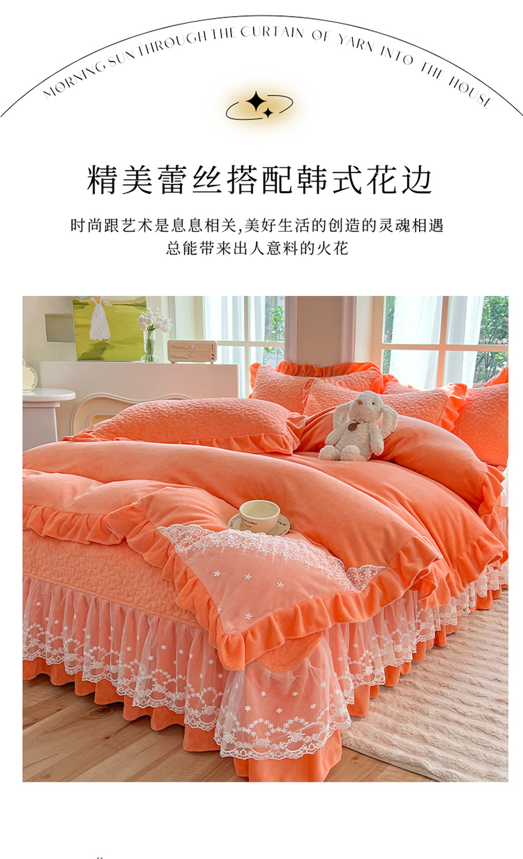 商品名称:2025秋冬新款220g全消光牛奶绒床盖四件套12斤重加厚婴儿绒法莱绒床裙款床盖款四件套 浪漫花语—艾玛橙