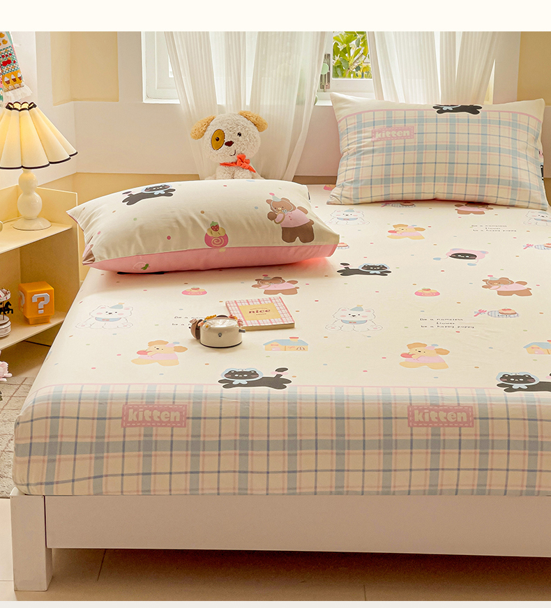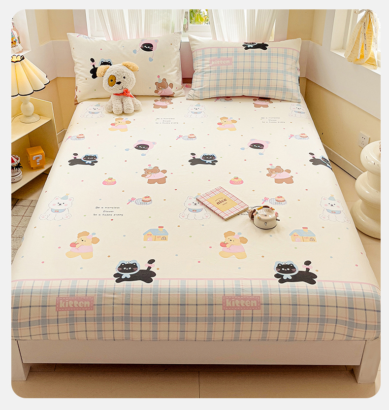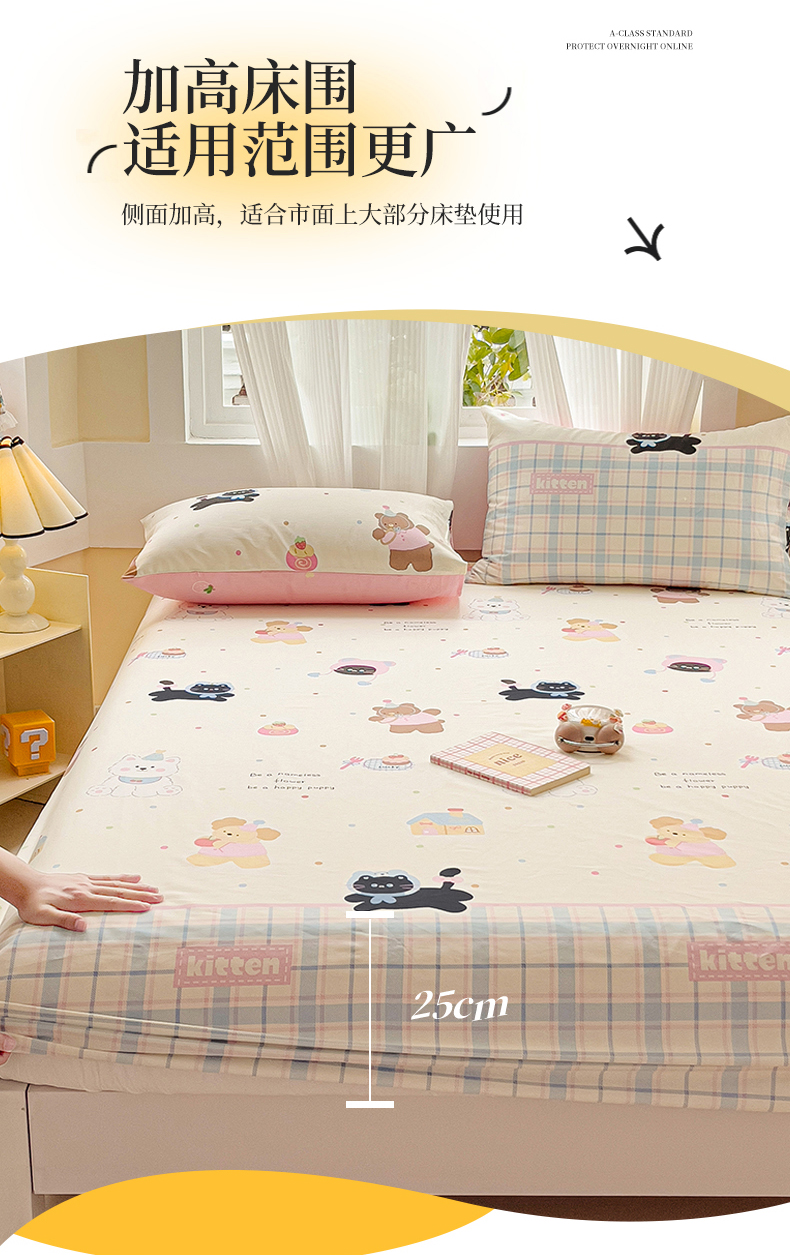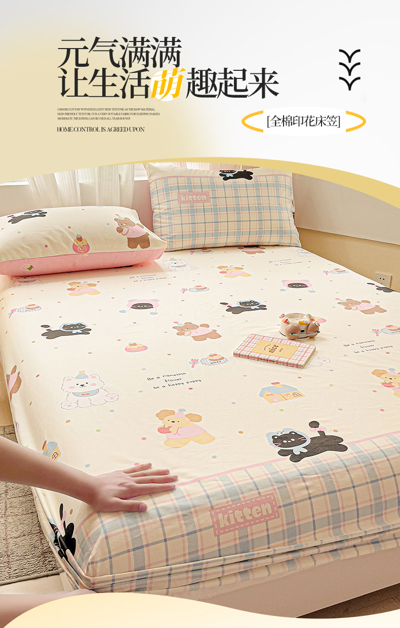 • 91家纺网 家纺一手货源 找家纺 名兮家居 2025新款13372全棉印花四件套单品系列-单床笠 可爱喵