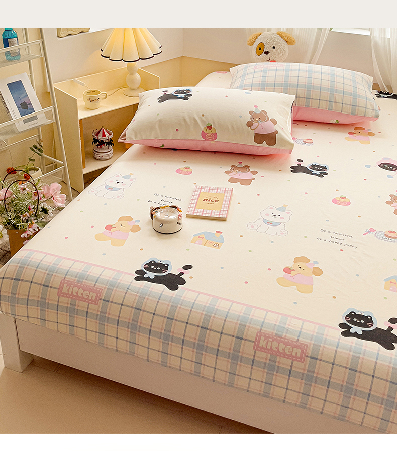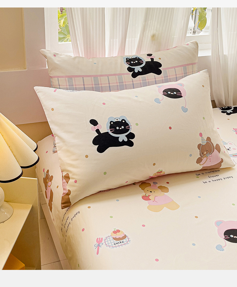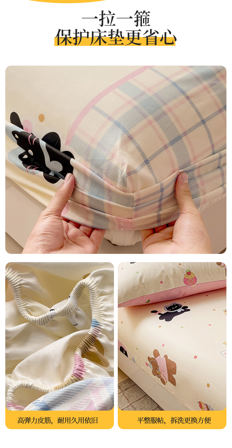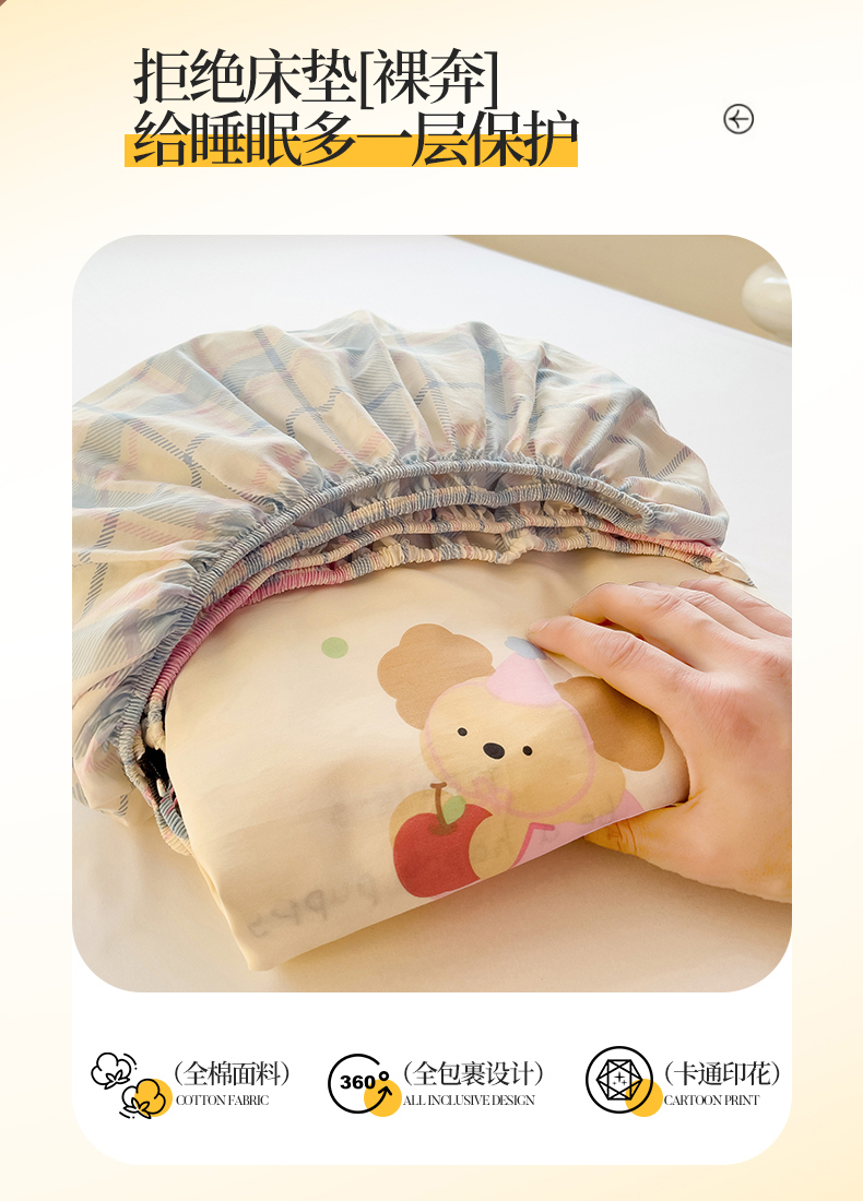 • 91家纺网 家纺一手货源 找家纺 名兮家居 2025新款13372全棉印花四件套单品系列-单床笠 可爱喵