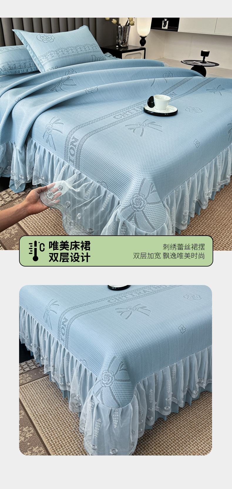 商品名称:阿牛席业 2025新款凉感床盖系列 i-蝴蝶结-蓝(床盖)