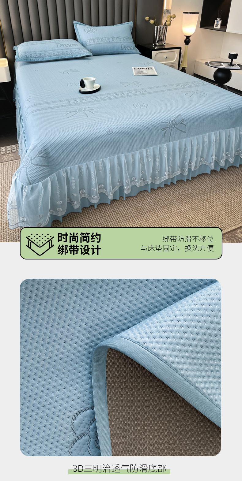 阿牛席业 2025新款凉感床盖系列 i-蝴蝶结-蓝(床盖)