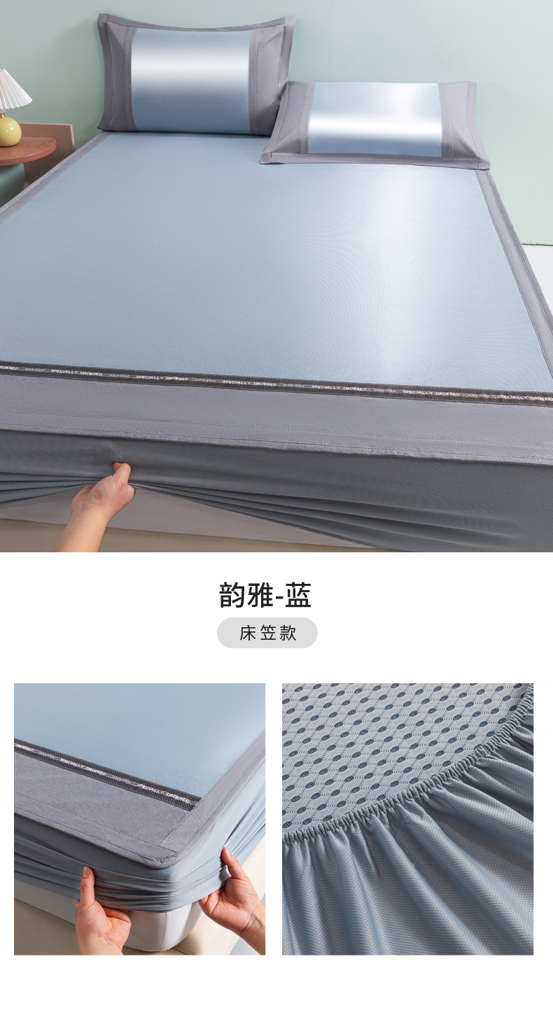 (总)阿牛席业2025新款冰藤凉席系列冰藤清爽床笠席,清爽-蓝【床笠款】,清爽-咖【床笠款】