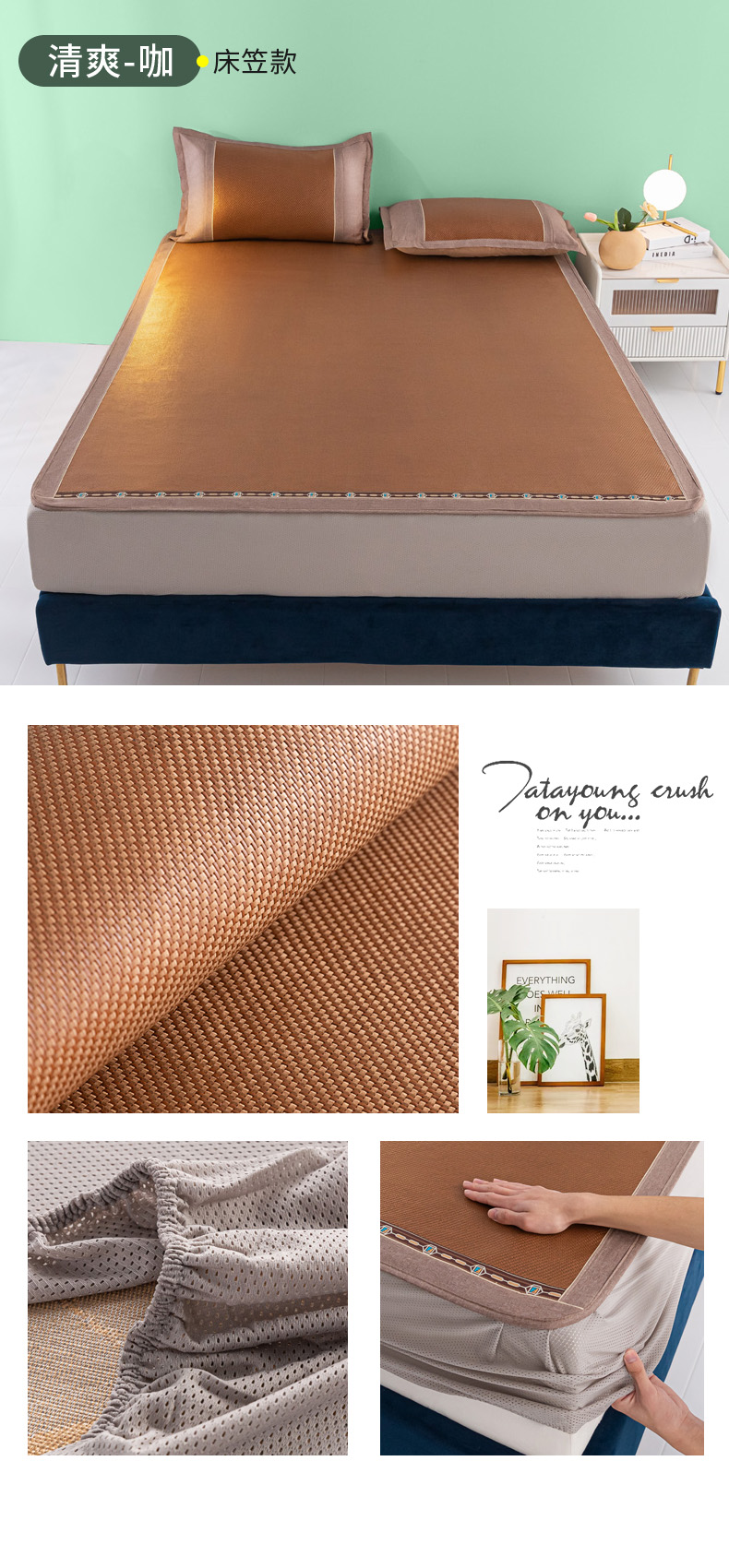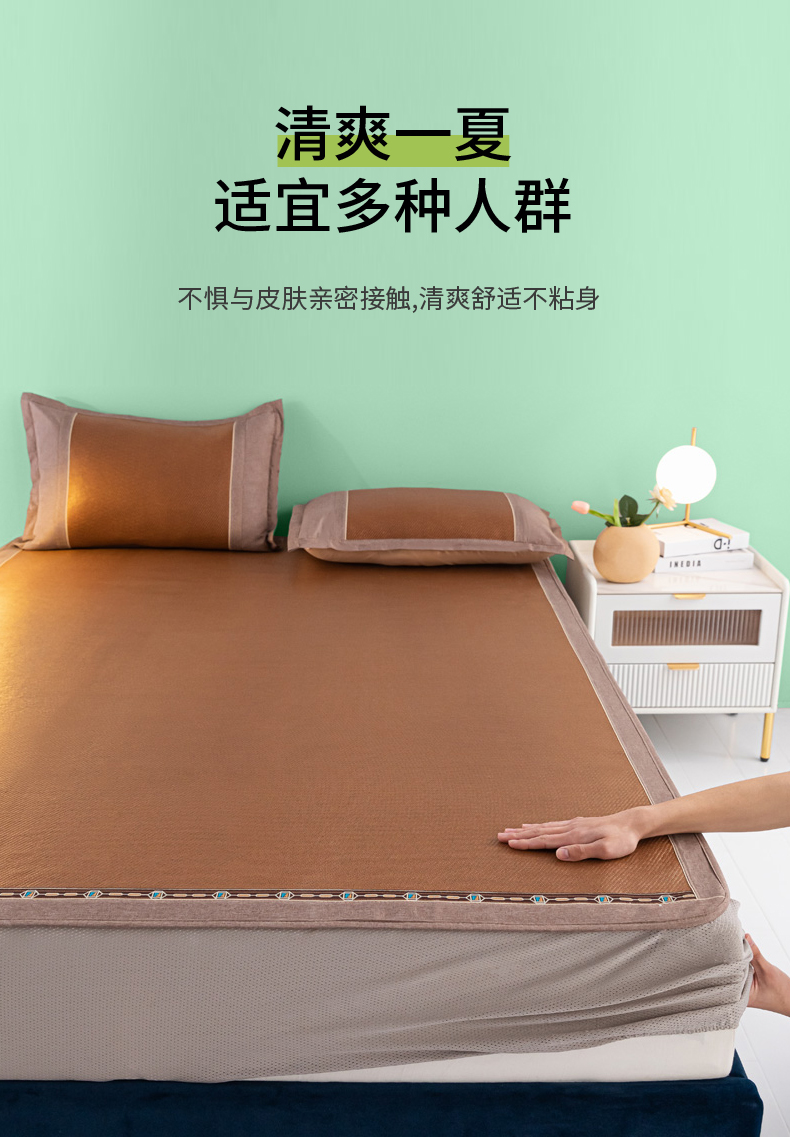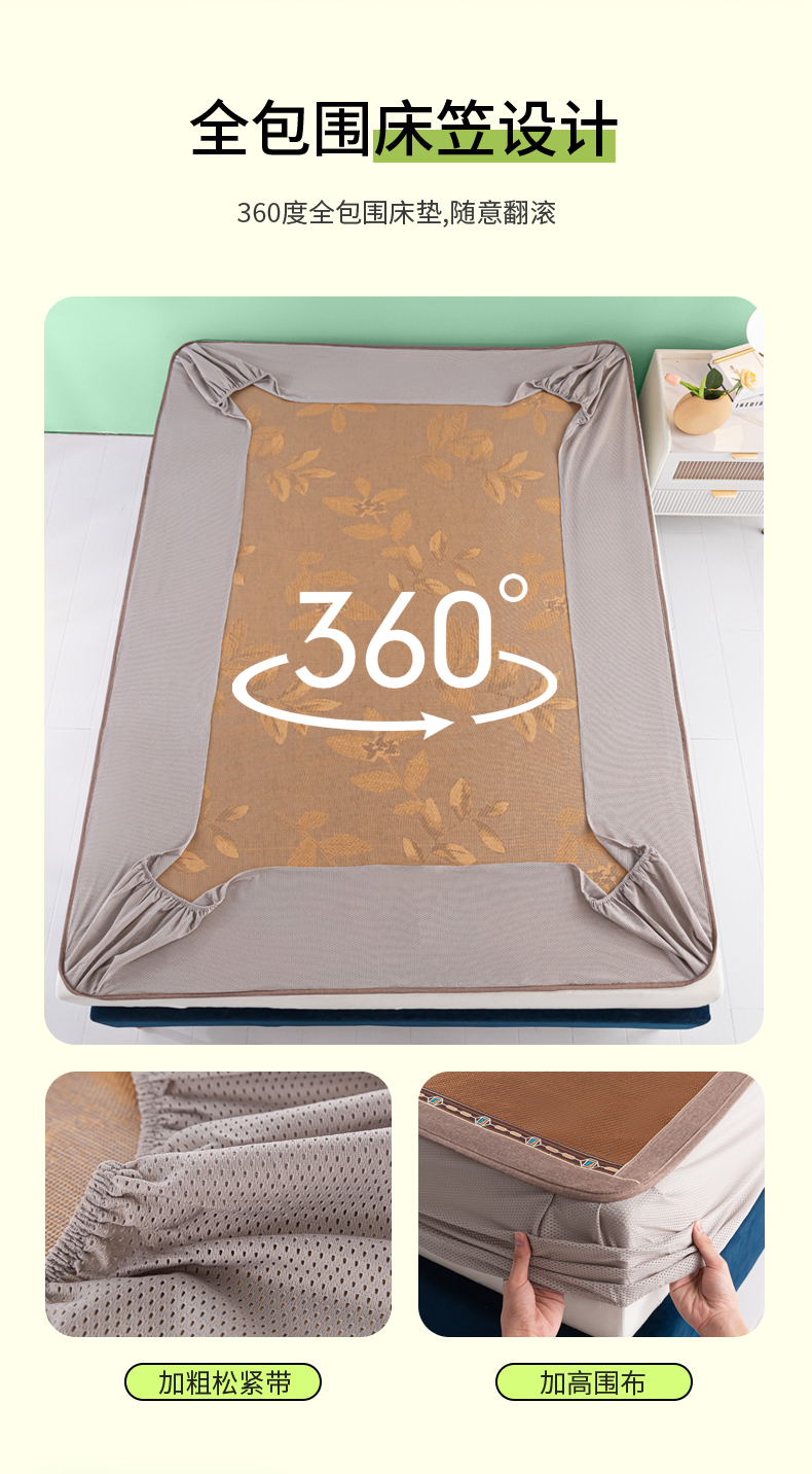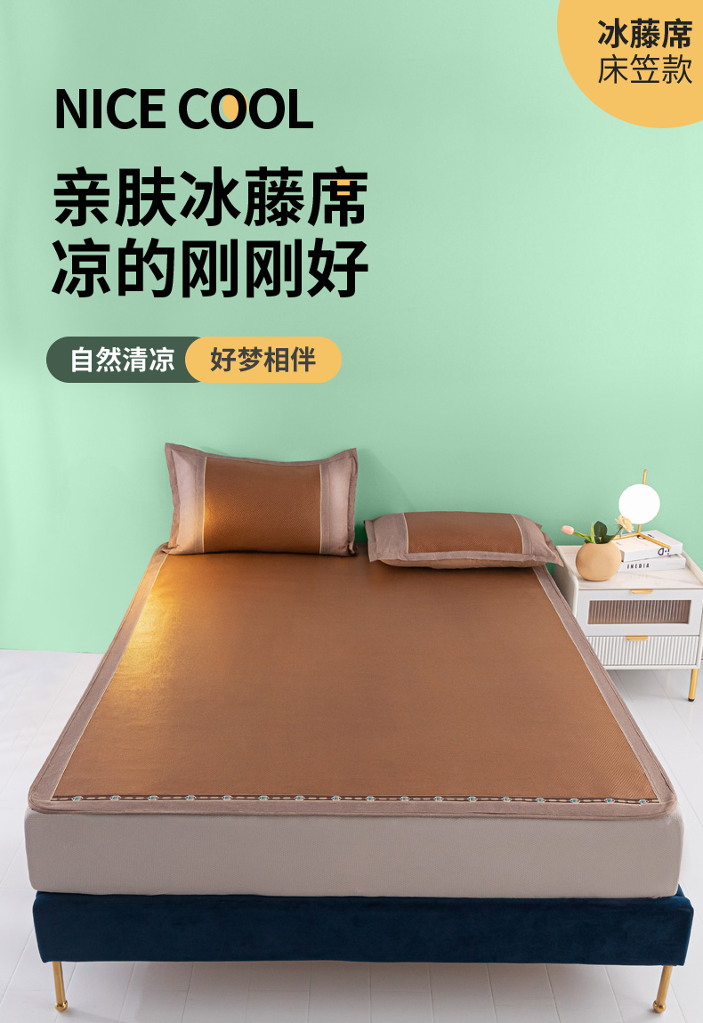 商品名称:阿牛席业2025新款冰藤凉席系列冰藤清爽床笠席 清爽-咖【床笠款】