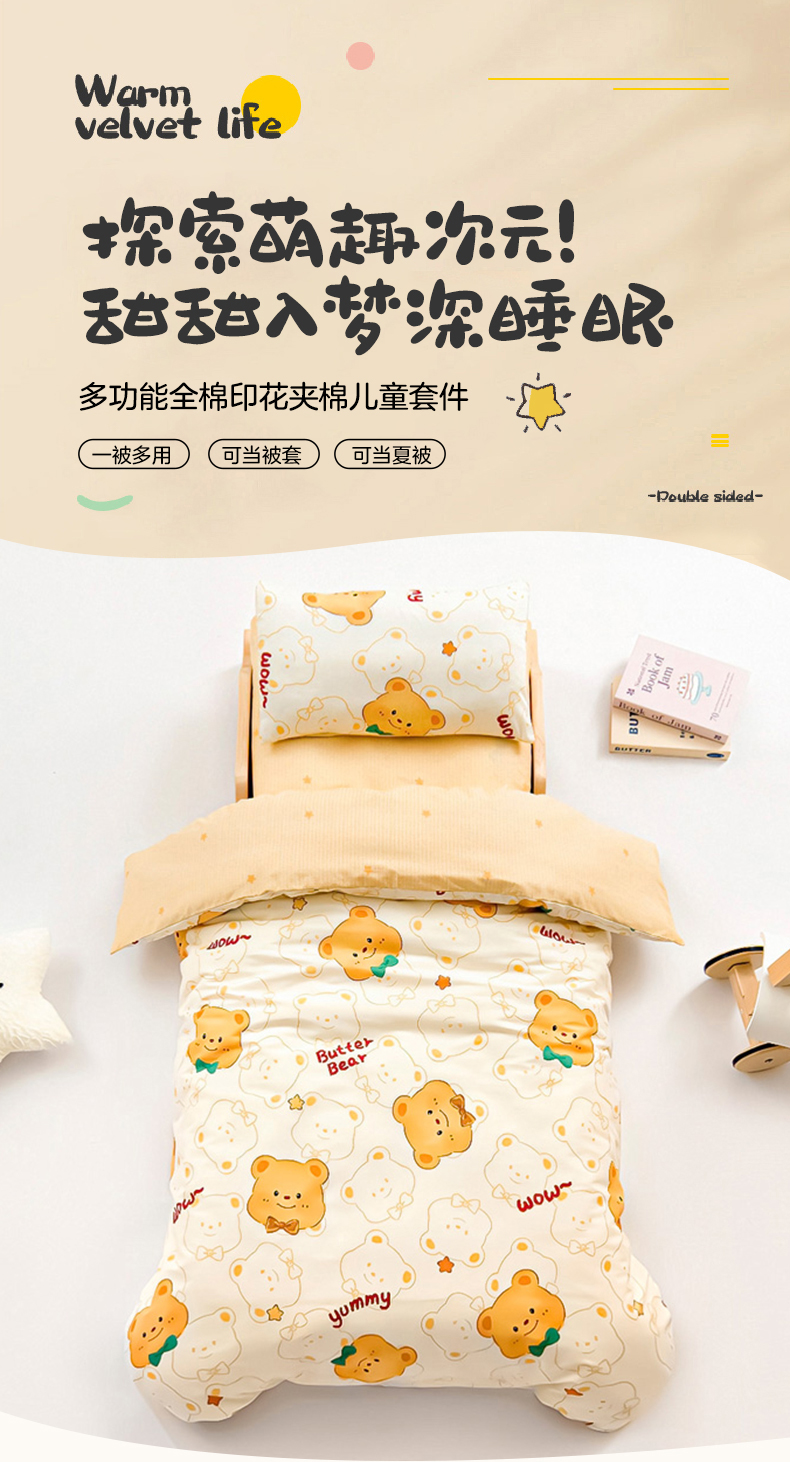 当前位置: 91家纺网 > 商品网购 > 床品套件 > 多件套 > 多件套 > 御棉坊 2025新款全棉印花幼儿园儿童套件 黄油小熊