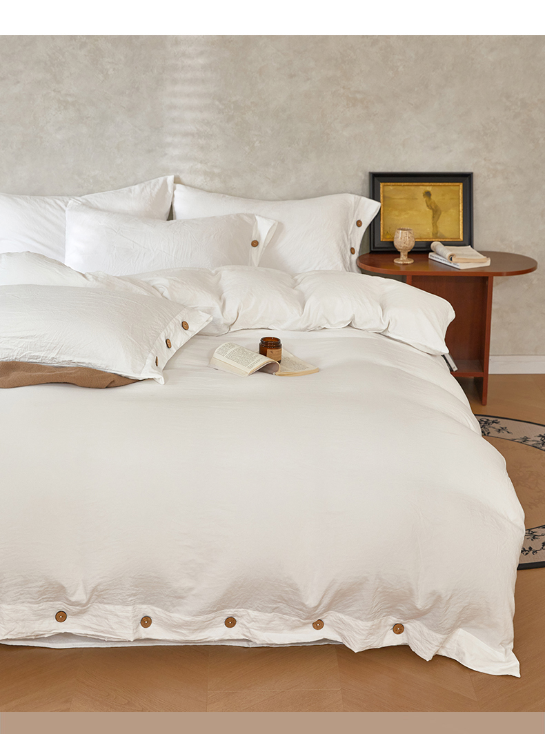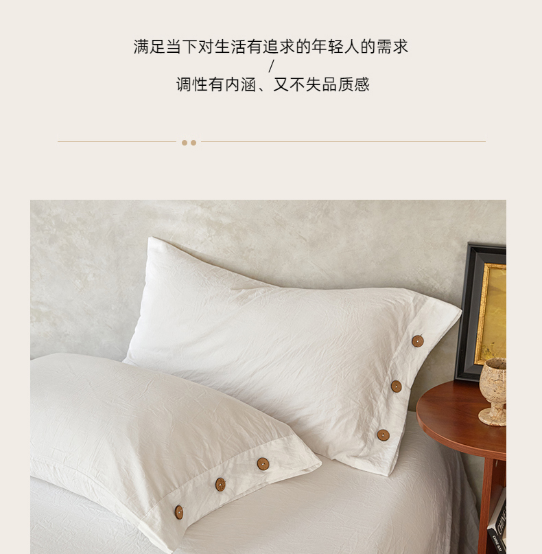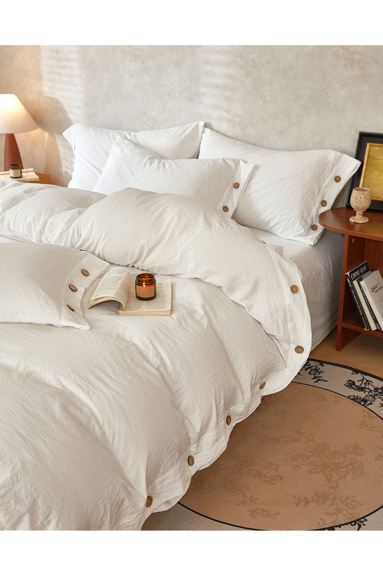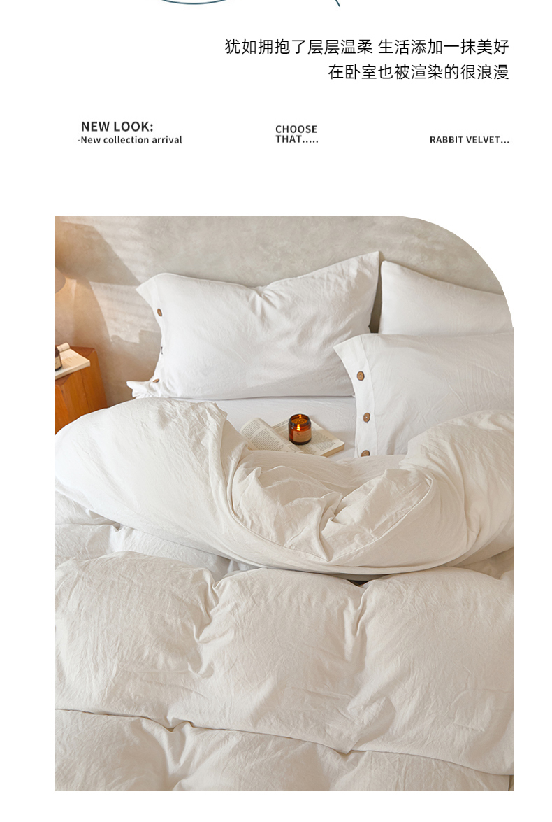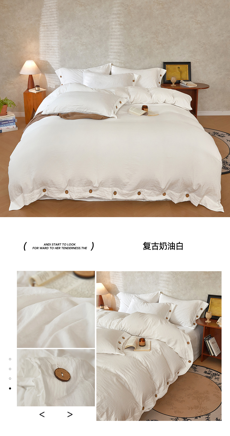 当前位置: 91家纺网 > 商品网购 > 床品套件 > 四件套 > 水洗棉四件套 > yyds网供 2025新款A类高克重侘寂风纽扣款四件套复古加厚非全棉纯棉日式水洗棉三件套【有买家秀,会员-5】 月光白-侘寂风复古纽扣款