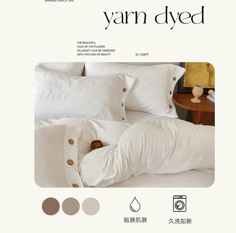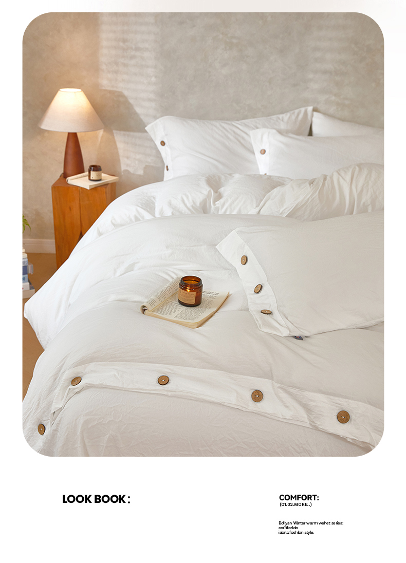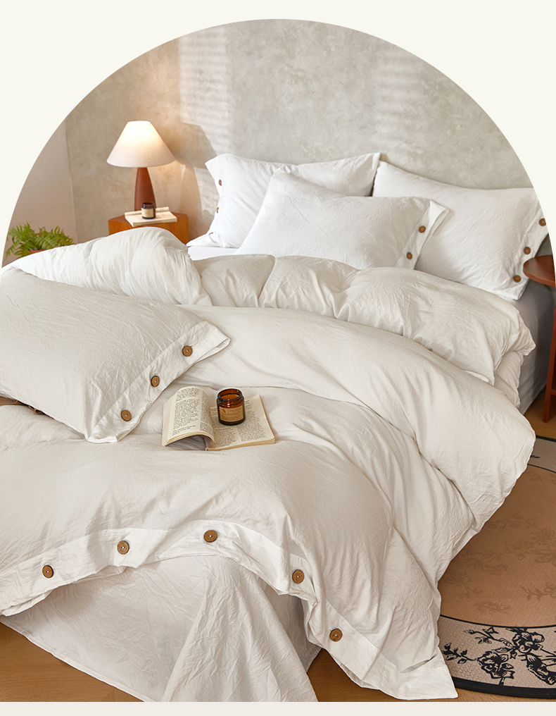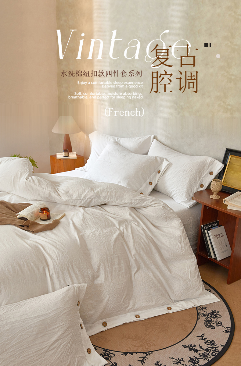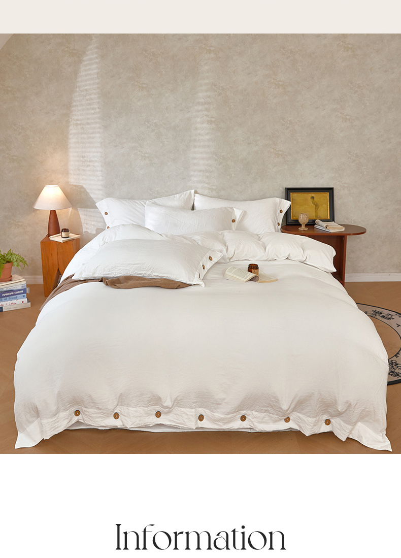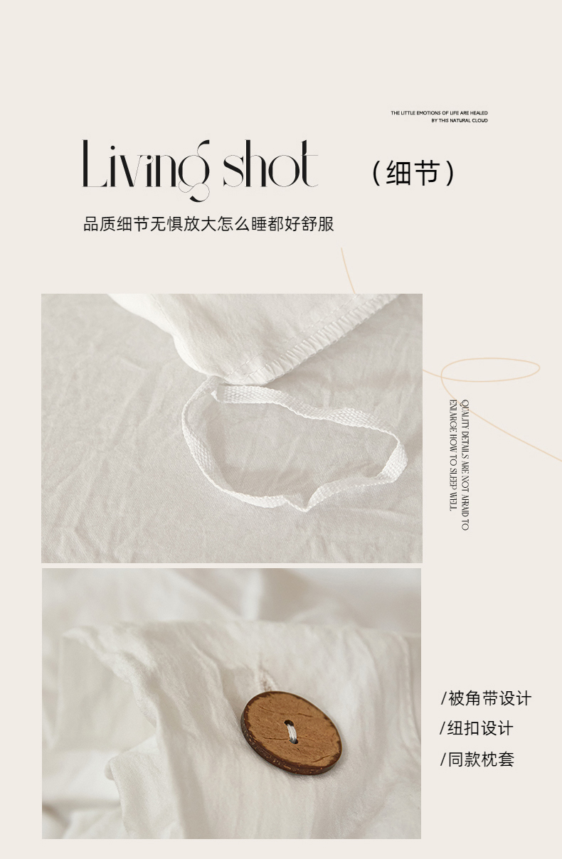 当前位置: 91家纺网 > 商品网购 > 床品套件 > 四件套 > 水洗棉四件套 > yyds网供 2025新款A类高克重侘寂风纽扣款四件套复古加厚非全棉纯棉日式水洗棉三件套【有买家秀,会员-5】 月光白-侘寂风复古纽扣款