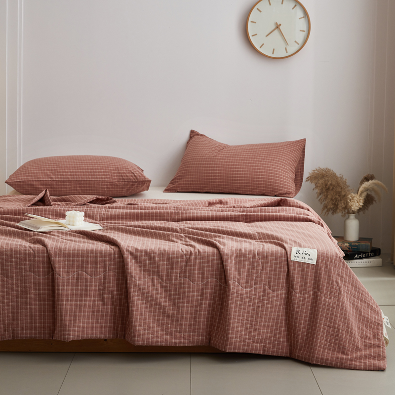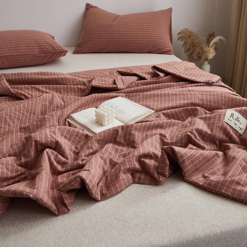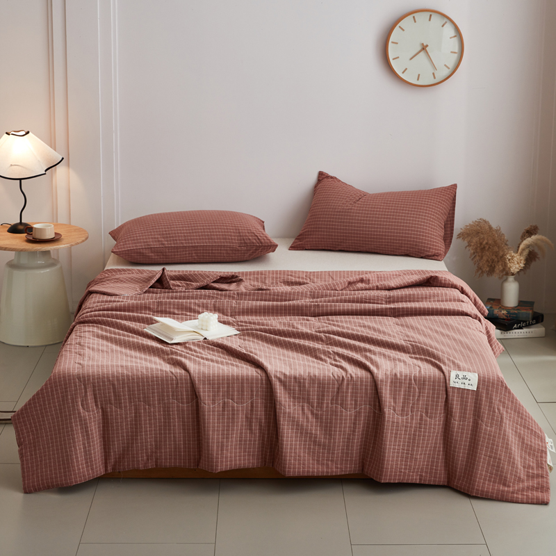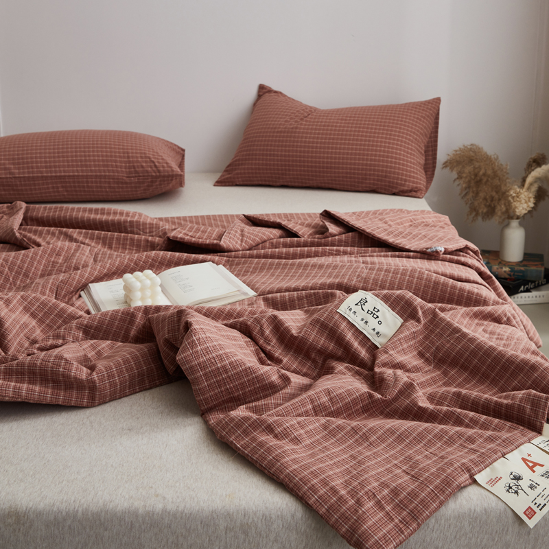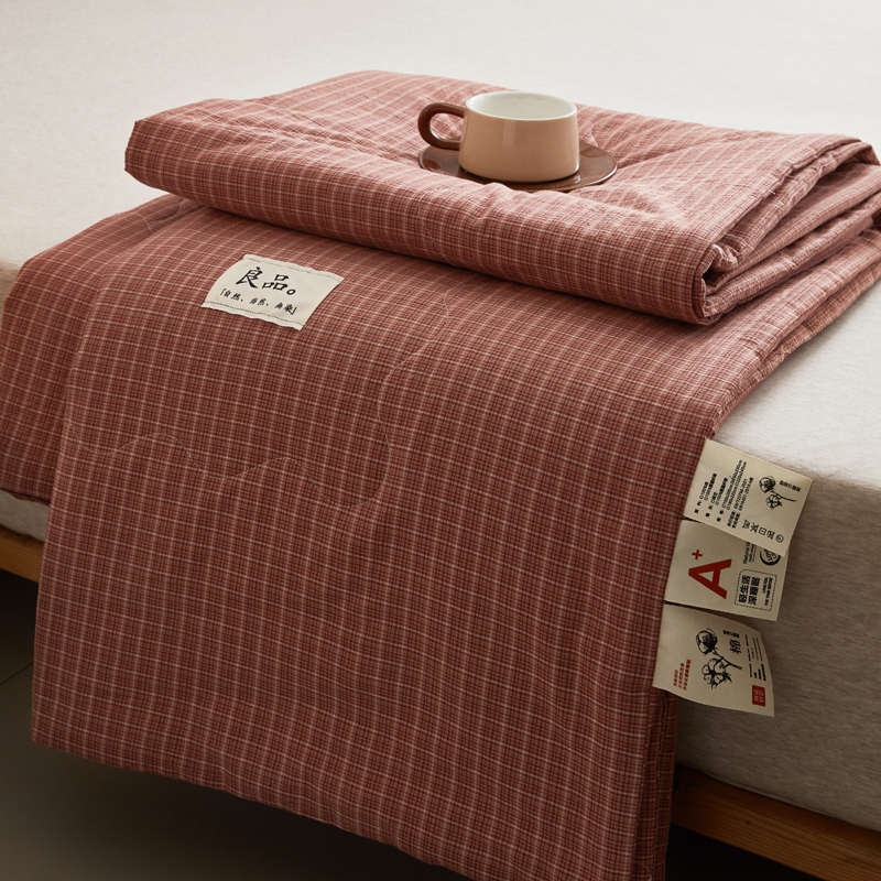 • 91家纺网 家纺一手货源 找家纺 尊妙被业 2025新款全棉色织水洗棉夏被 晚晴-红