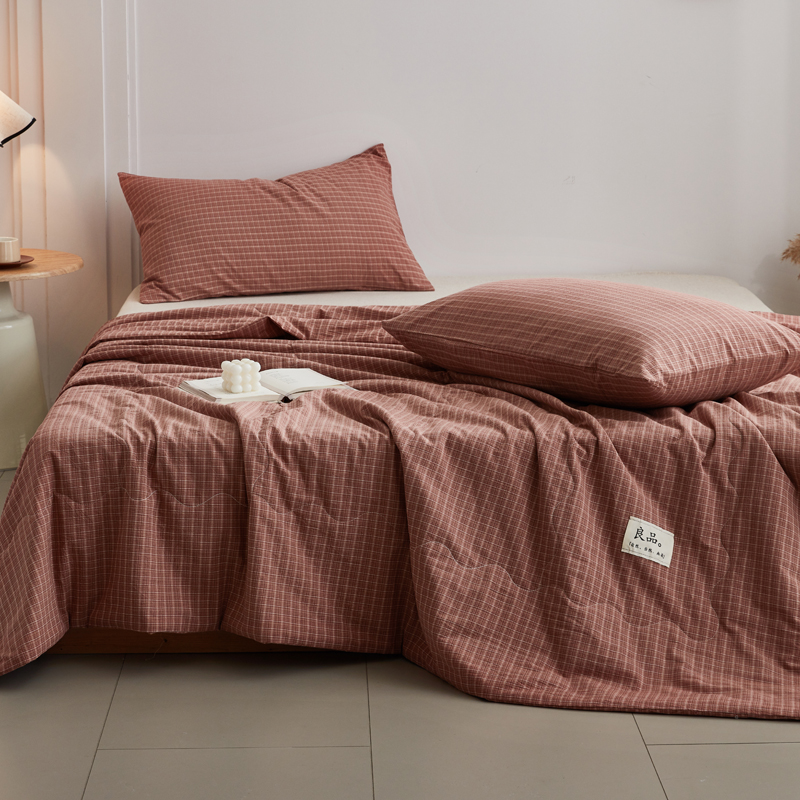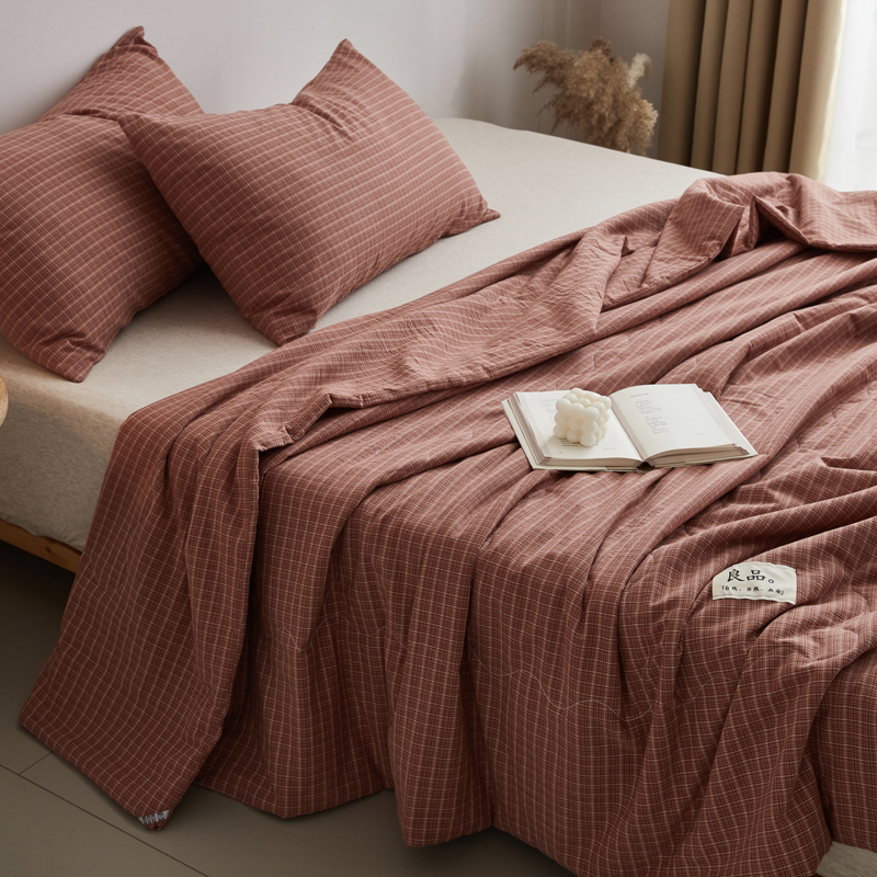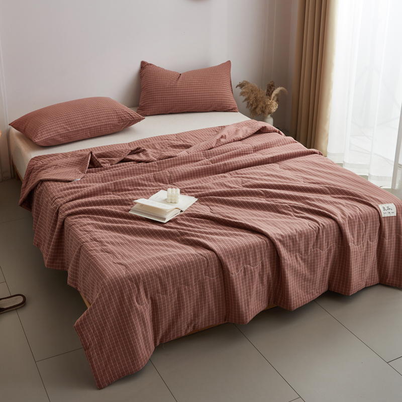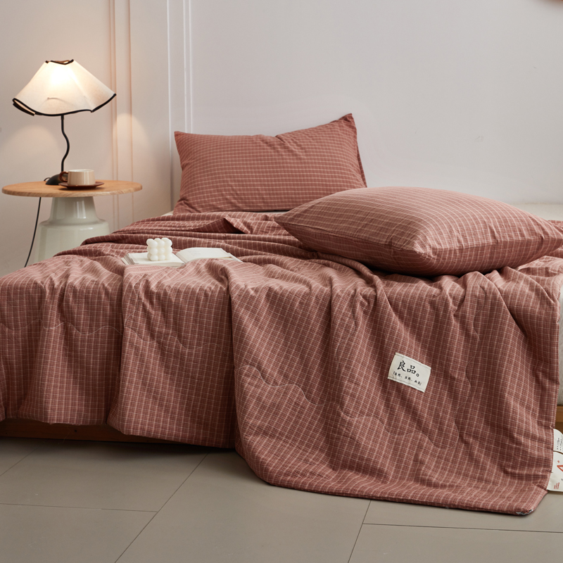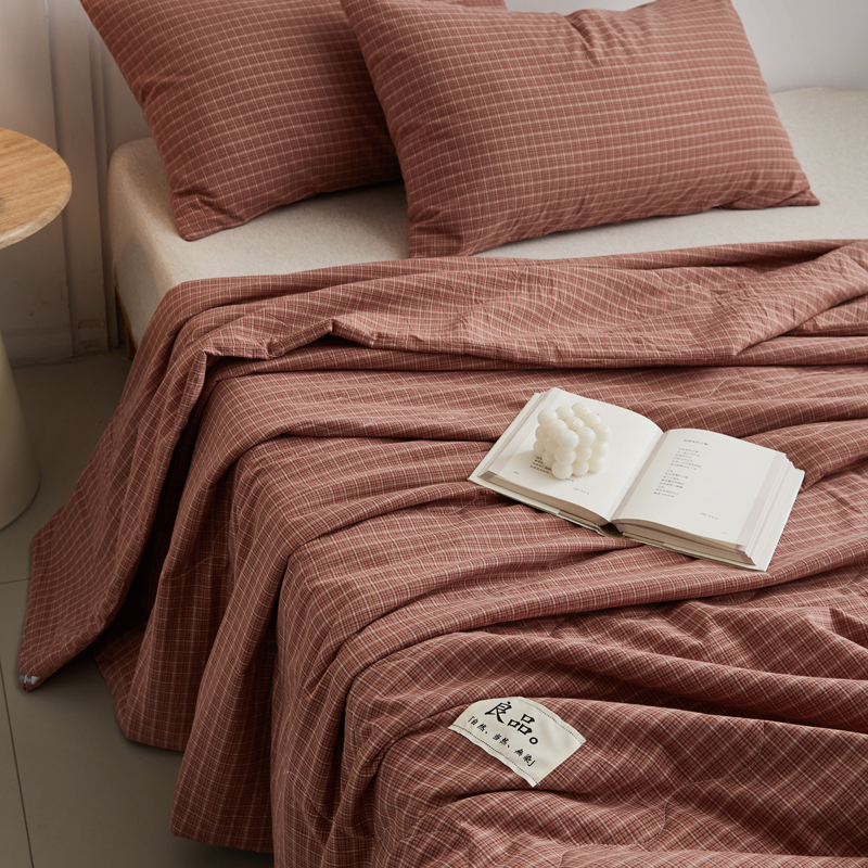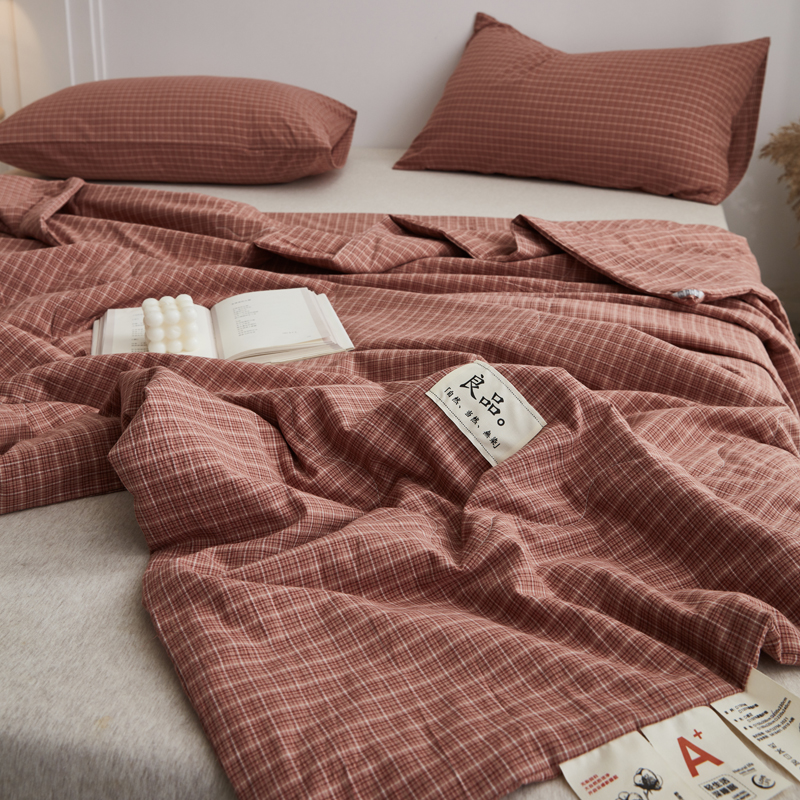 • 91家纺网 家纺一手货源 找家纺 尊妙被业 2025新款全棉色织水洗棉夏被 晚晴-红