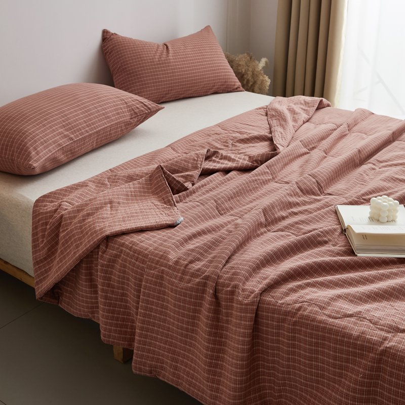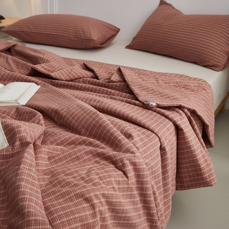 尊妙被业 2025新款全棉色织水洗棉夏被 晚晴-红