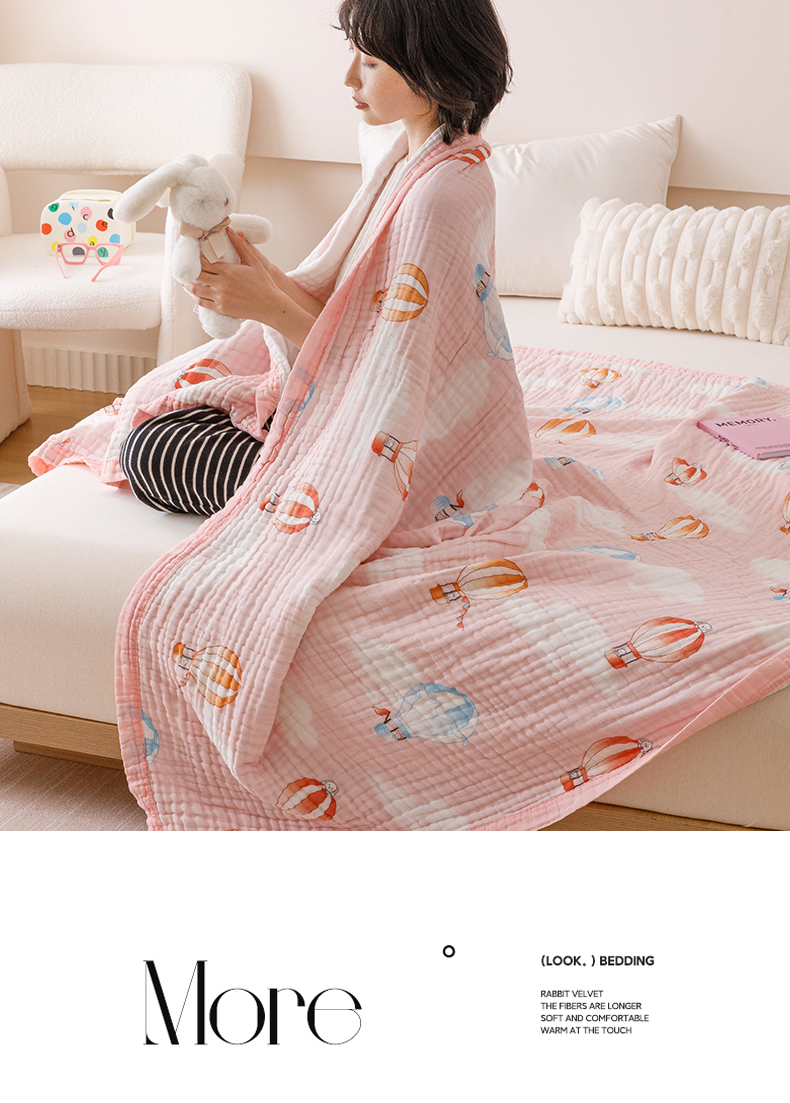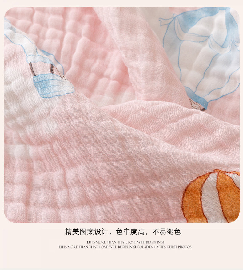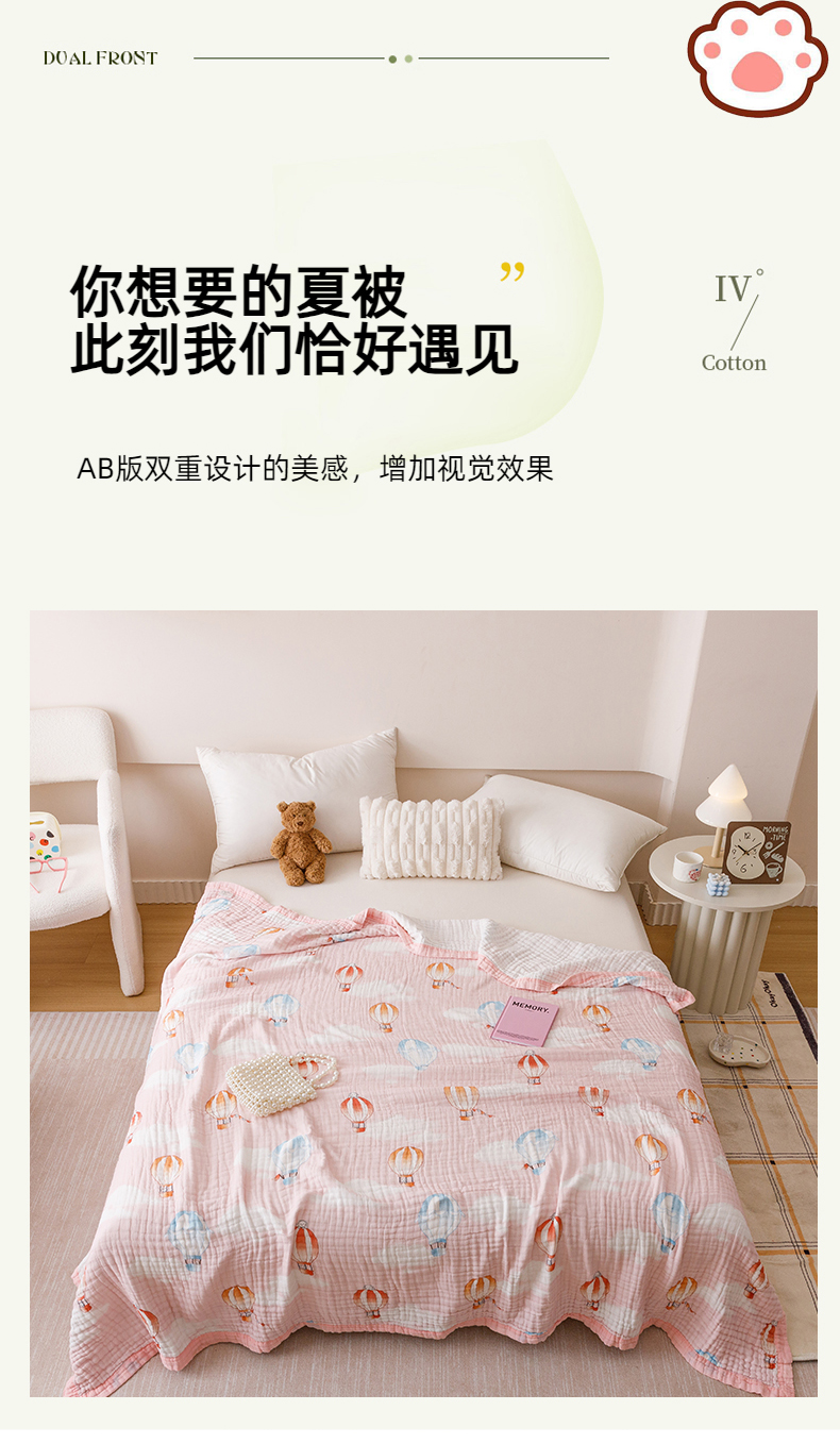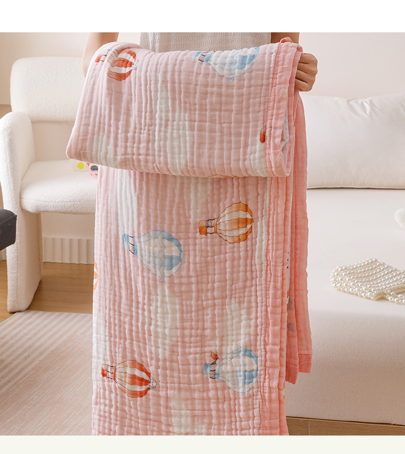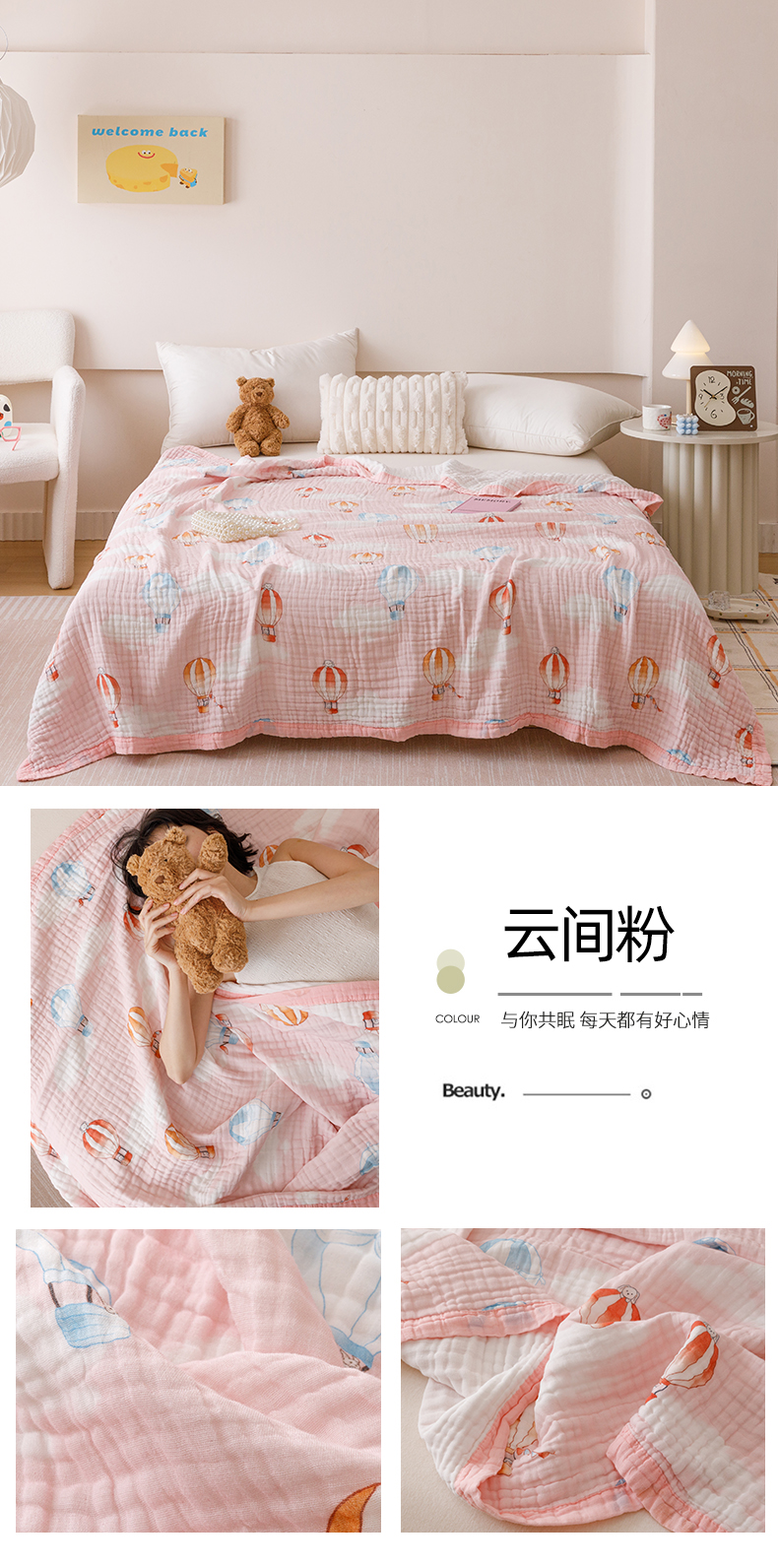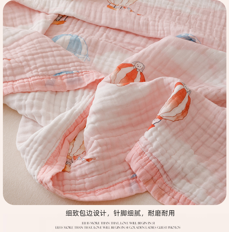 悦然毛巾被 2025新款全棉泡泡纱6层纱儿童夏被 云间粉