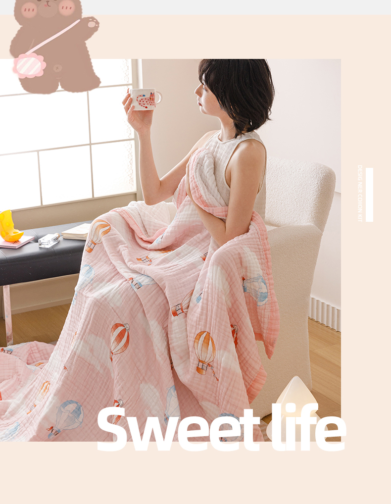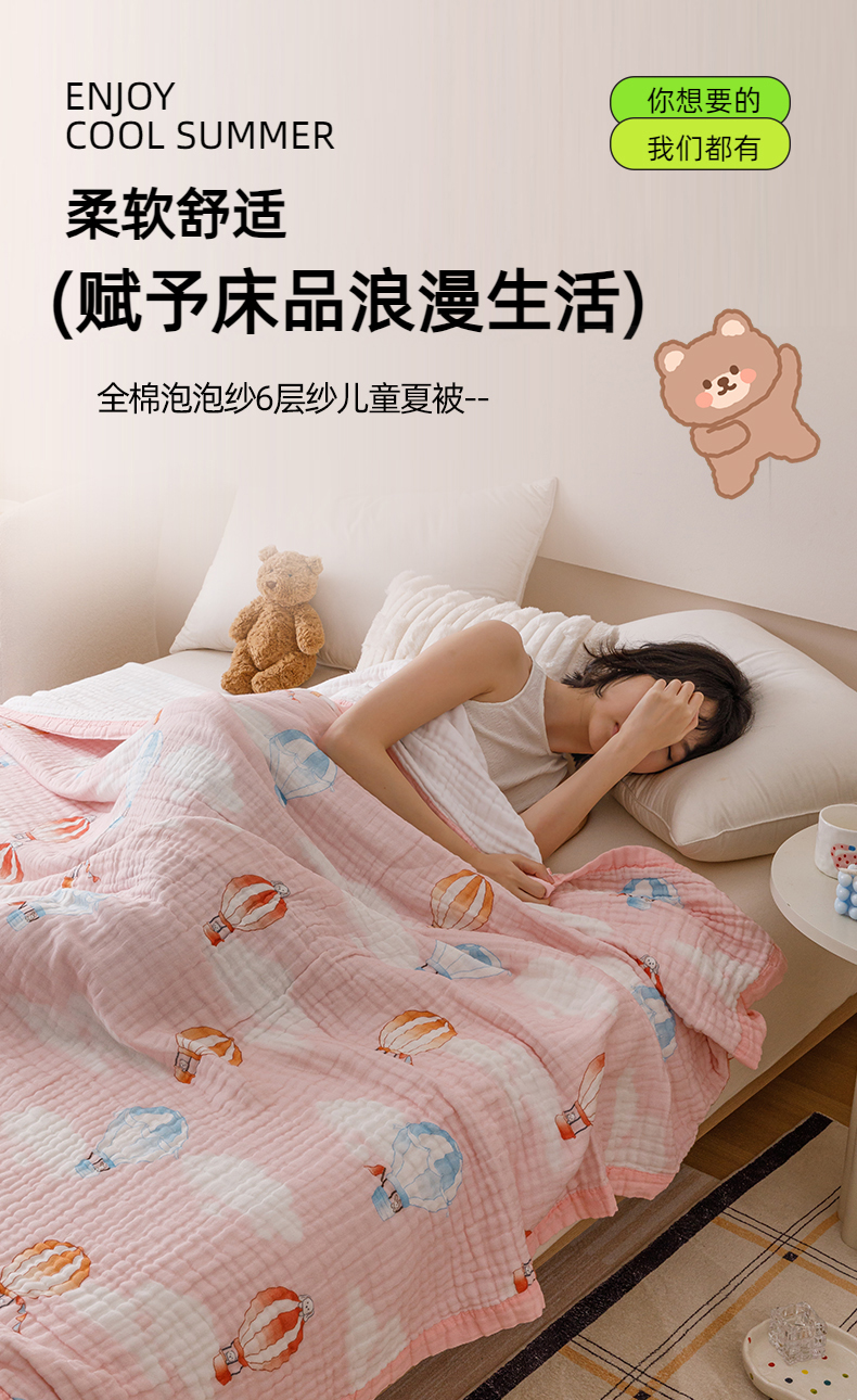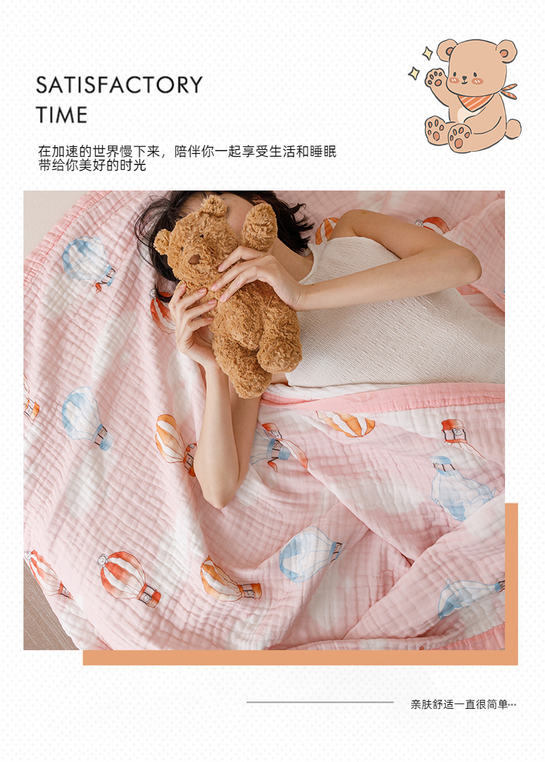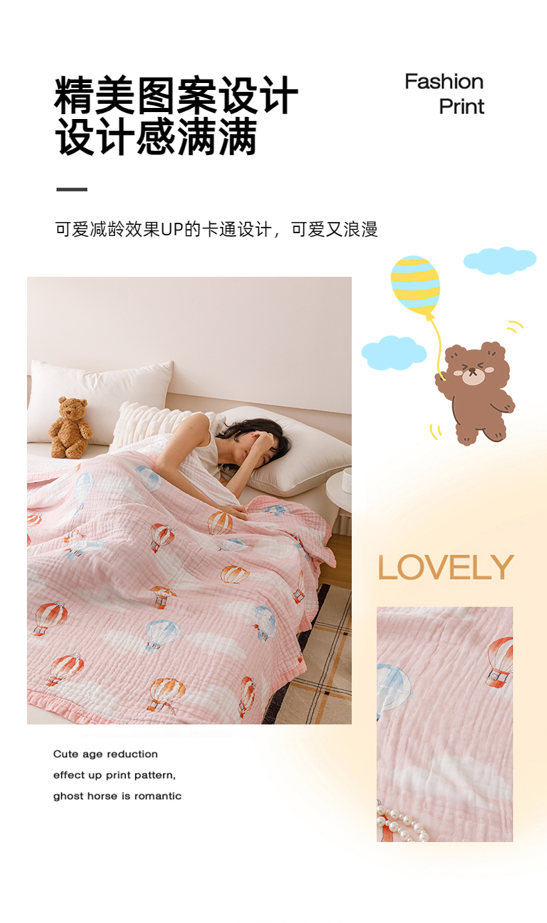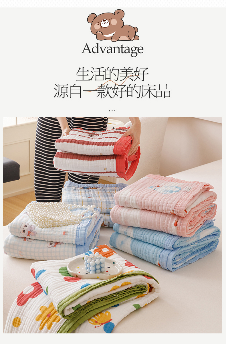 悦然毛巾被 2025新款全棉泡泡纱6层纱儿童夏被 云间粉