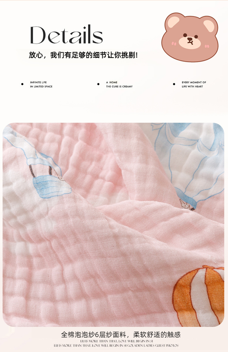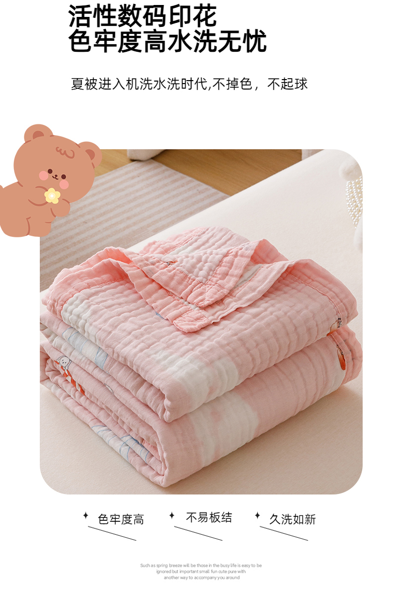 商品名称:悦然毛巾被 2025新款全棉泡泡纱6层纱儿童夏被 云间粉