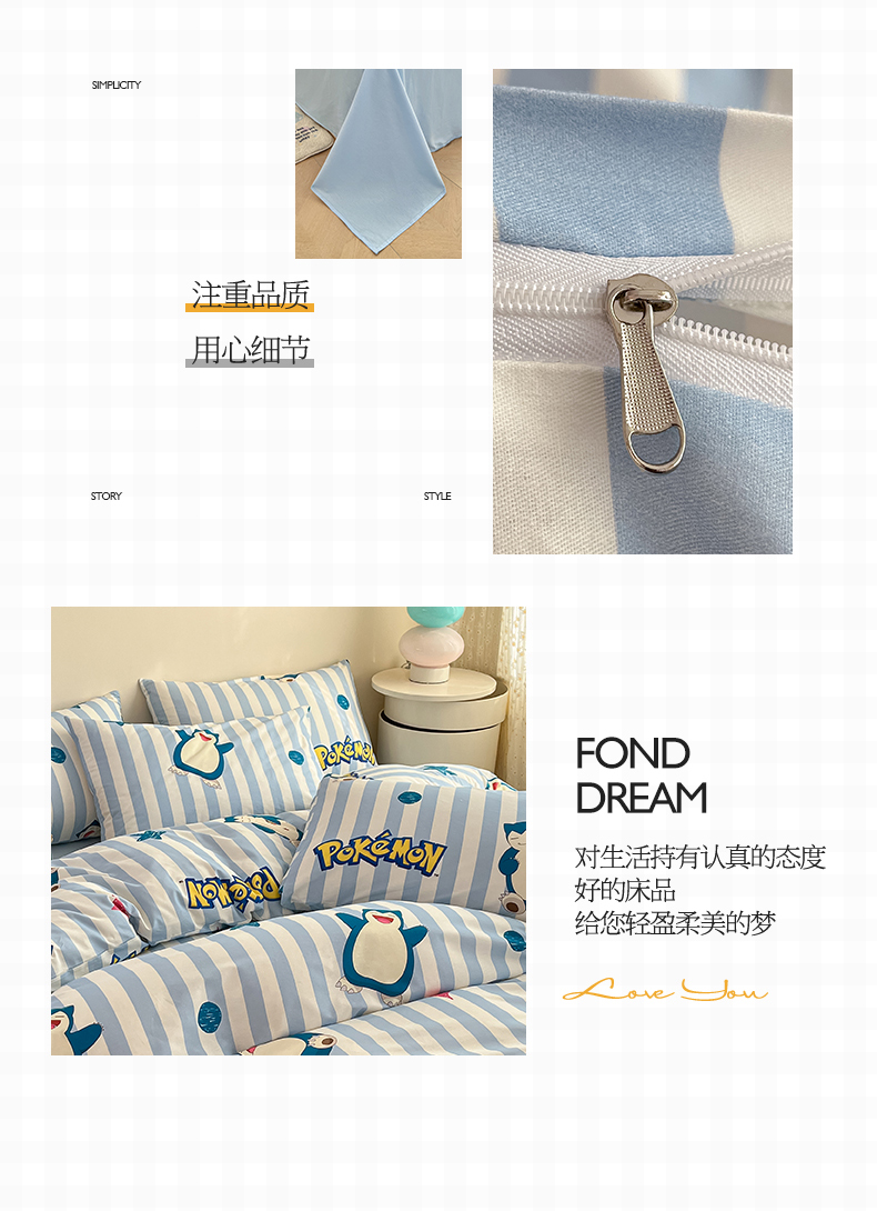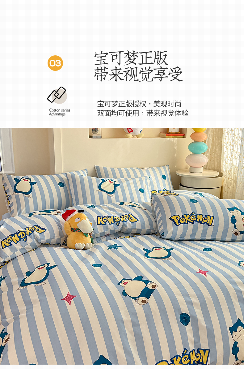 当前位置: 91家纺网 > 商品网购 > 床品套件 > 四件套 > 全棉普通四件套 > 金爱家 2025新款宝可梦正版授权皮卡丘纯棉印花系列四件套 棉宝可梦-蓝条卡比兽