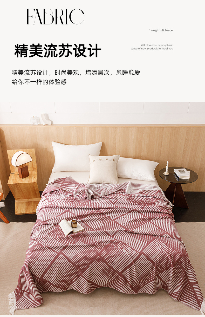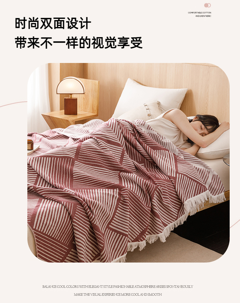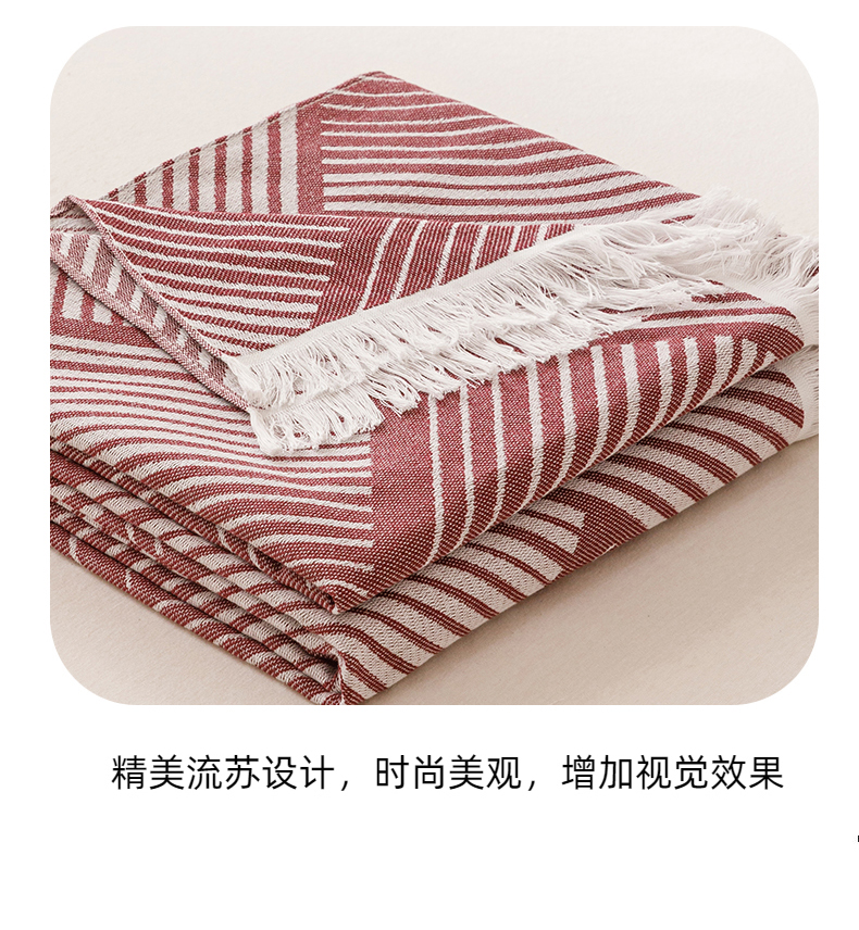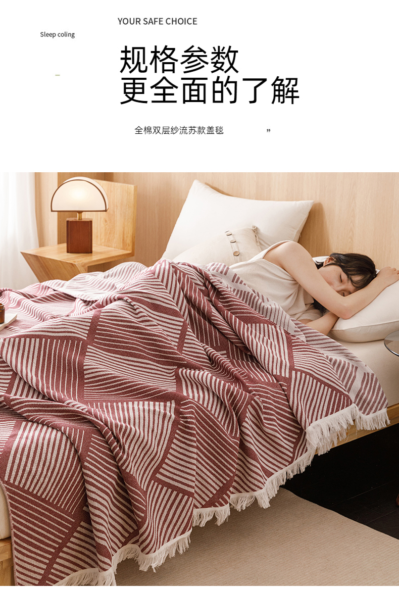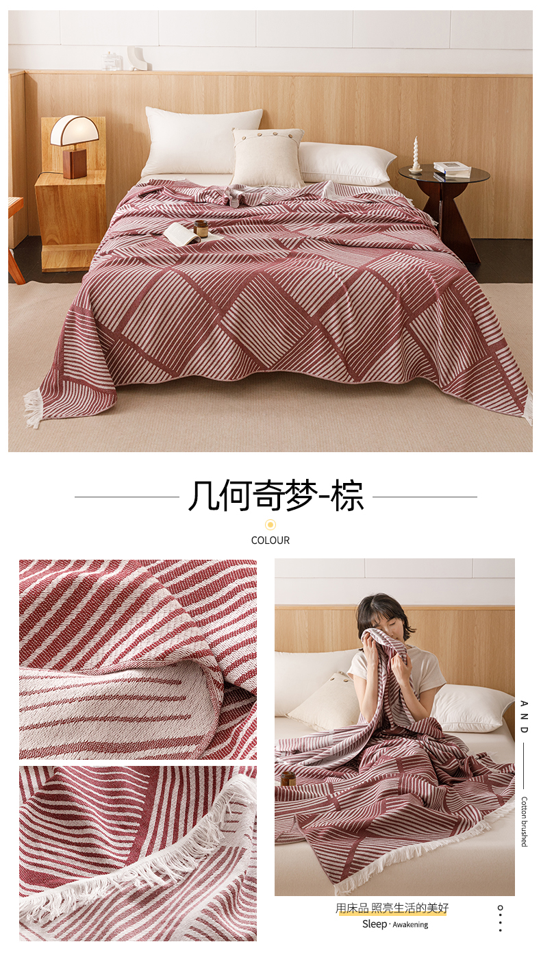 商品名称:悦然毛巾被 2025新款全棉双层纱流苏款盖毯 几何奇梦棕