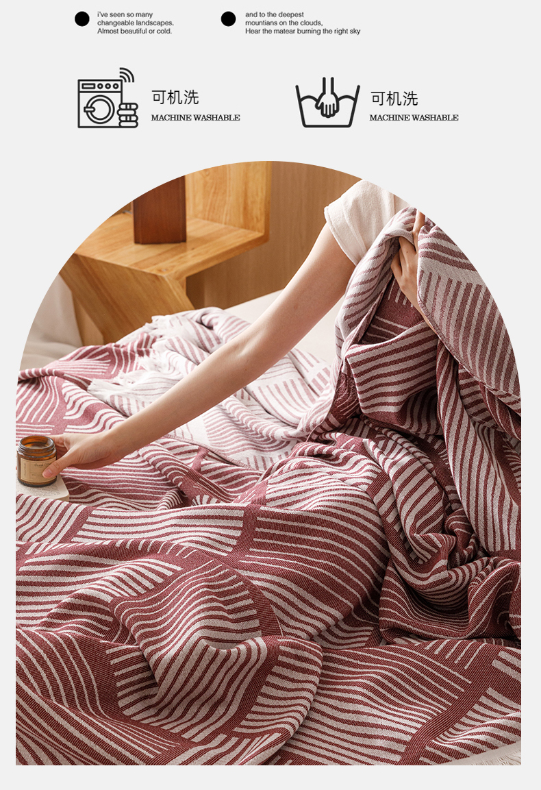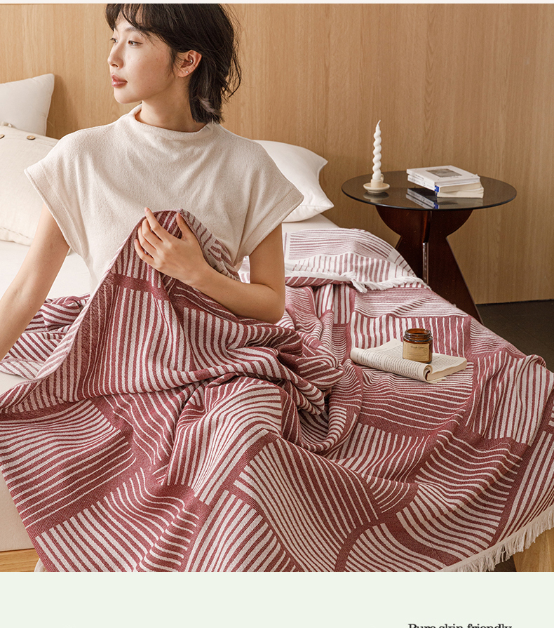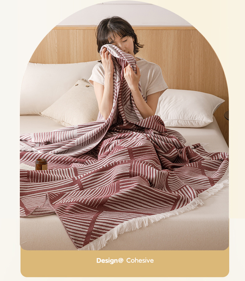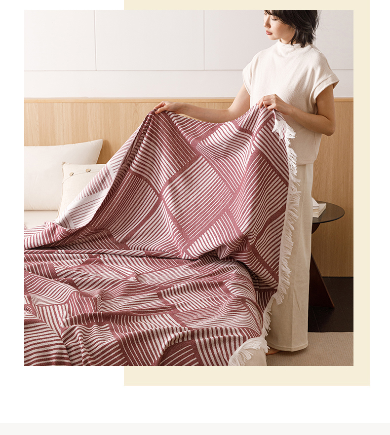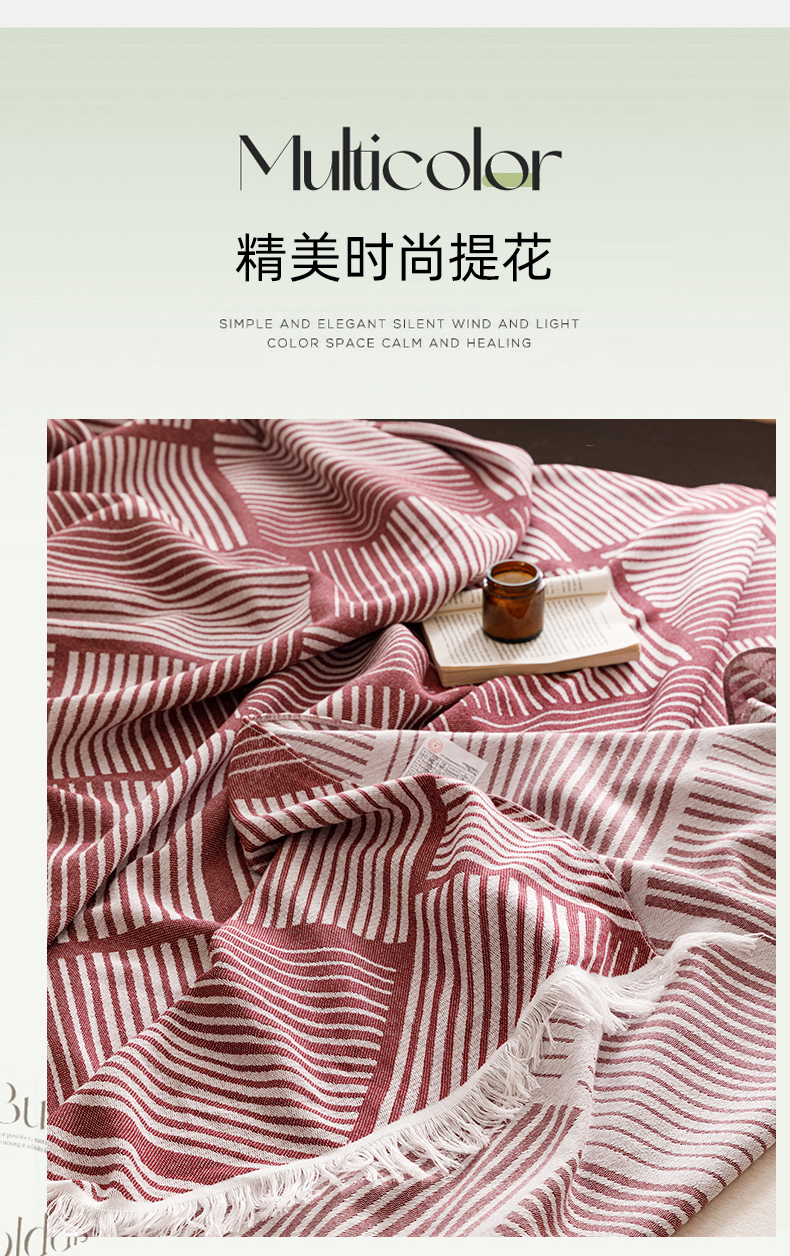 商品名称:悦然毛巾被 2025新款全棉双层纱流苏款盖毯 几何奇梦棕