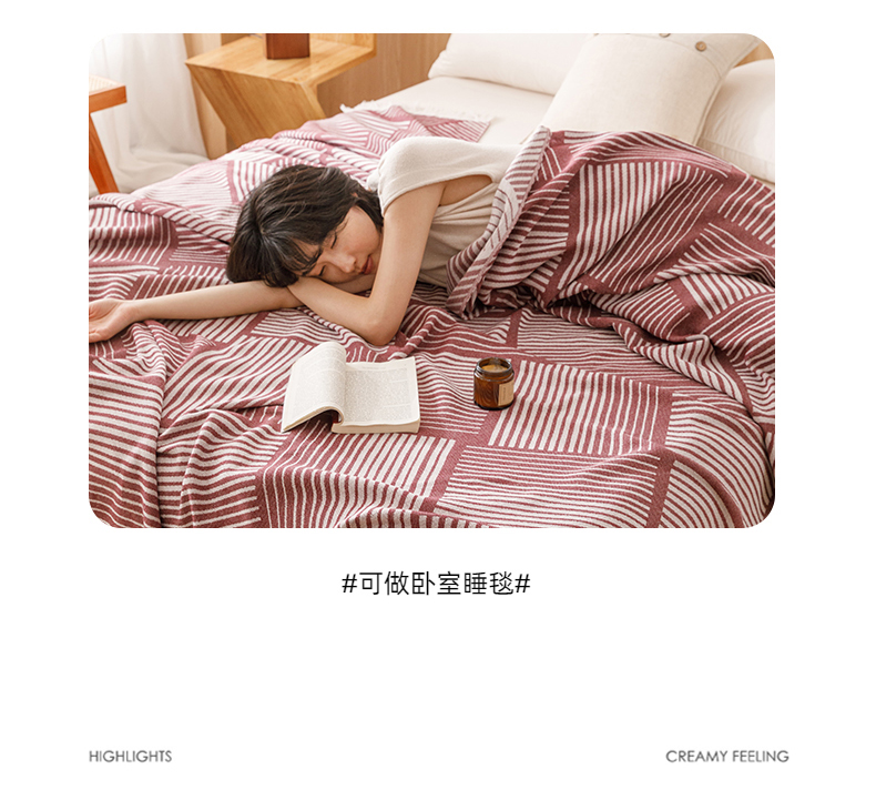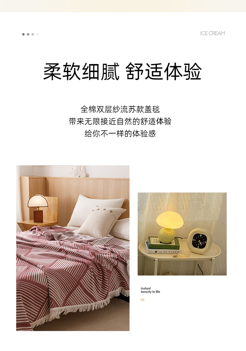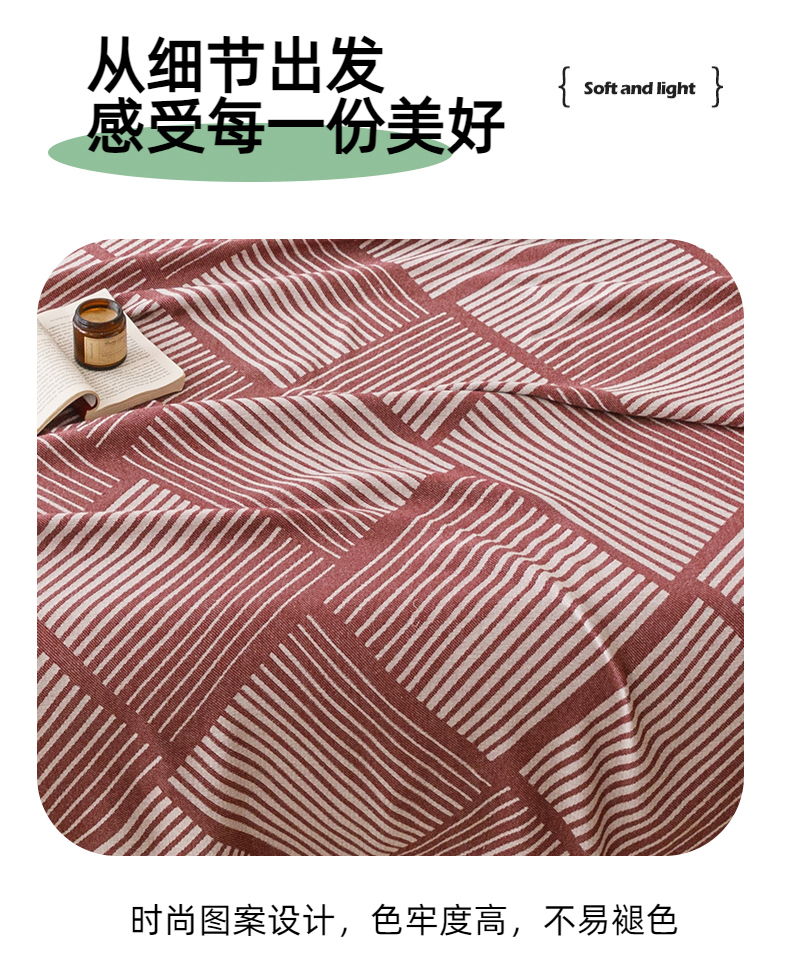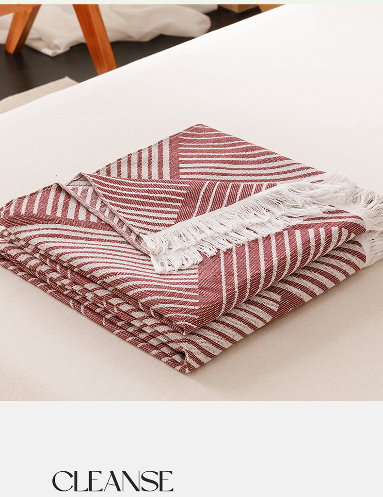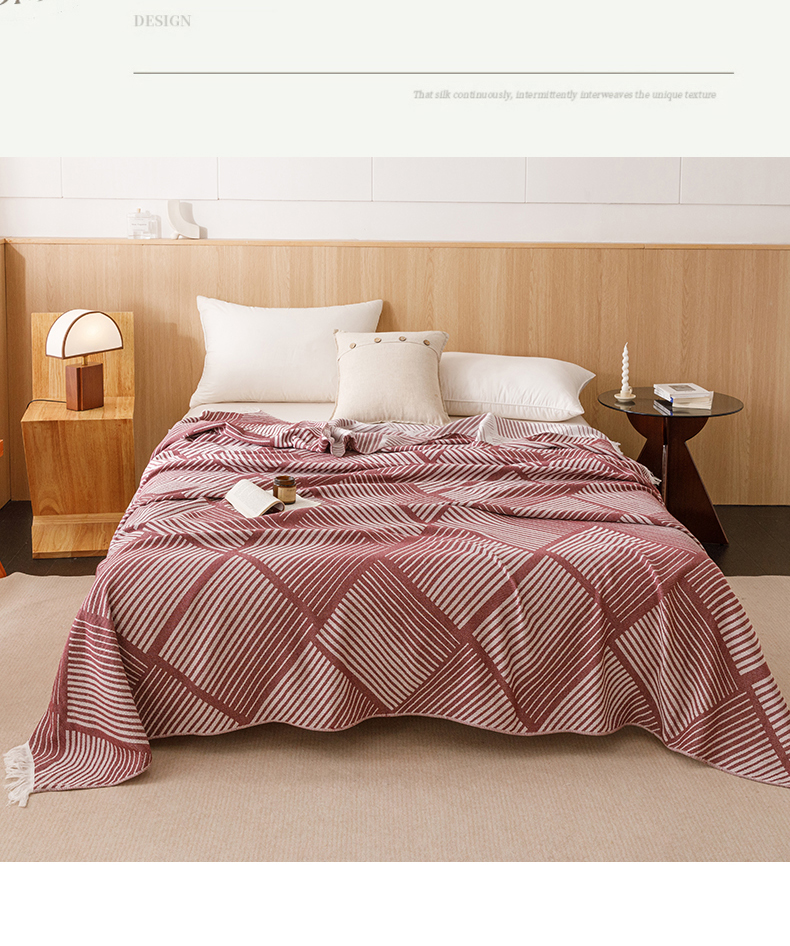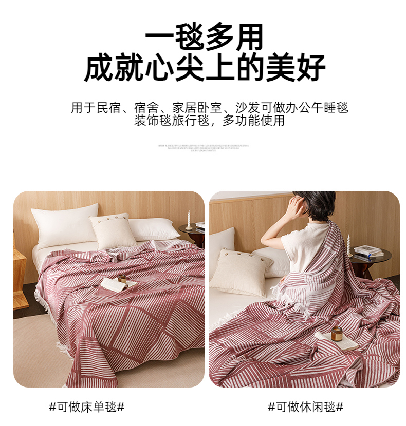 商品名称:悦然毛巾被 2025新款全棉双层纱流苏款盖毯 几何奇梦棕